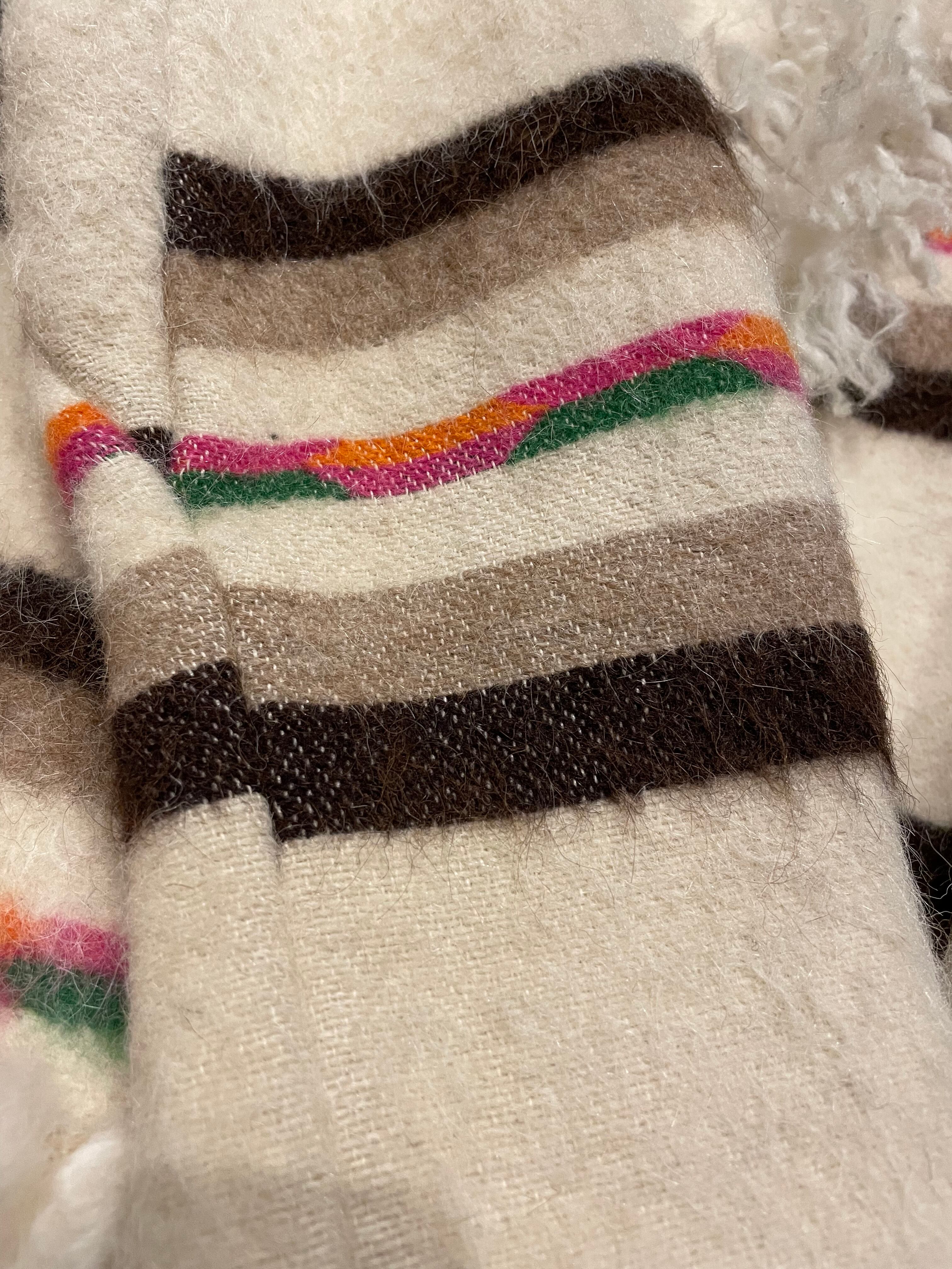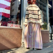 やはり袖口や裾などに縁取りされた長いファーがとてもかわいいですし、ボーダーの感じもボヘミアンな雰囲気たっぷりで素敵です。ロンTとデニムなどとシンプルに合わせてもかっこいいと思います!
