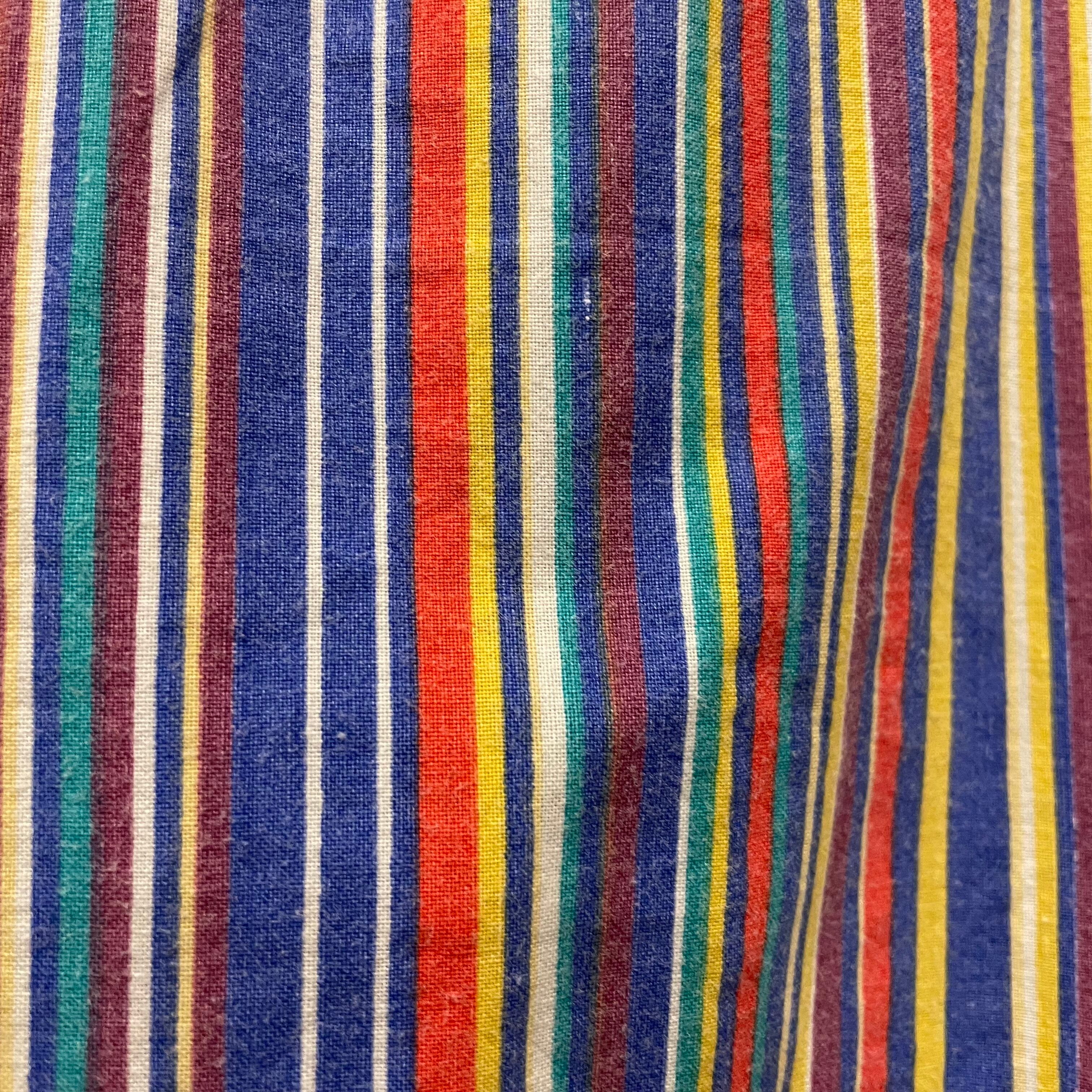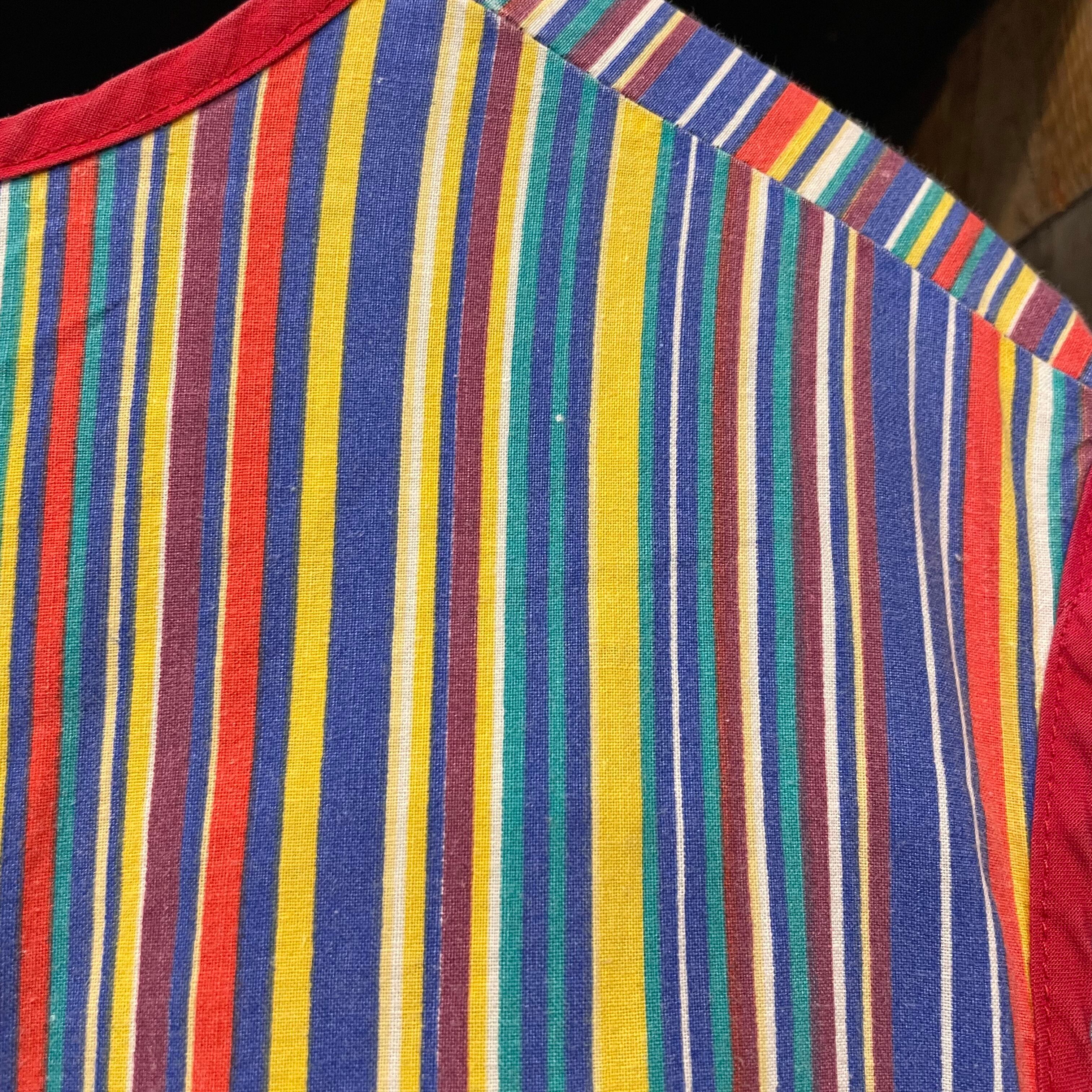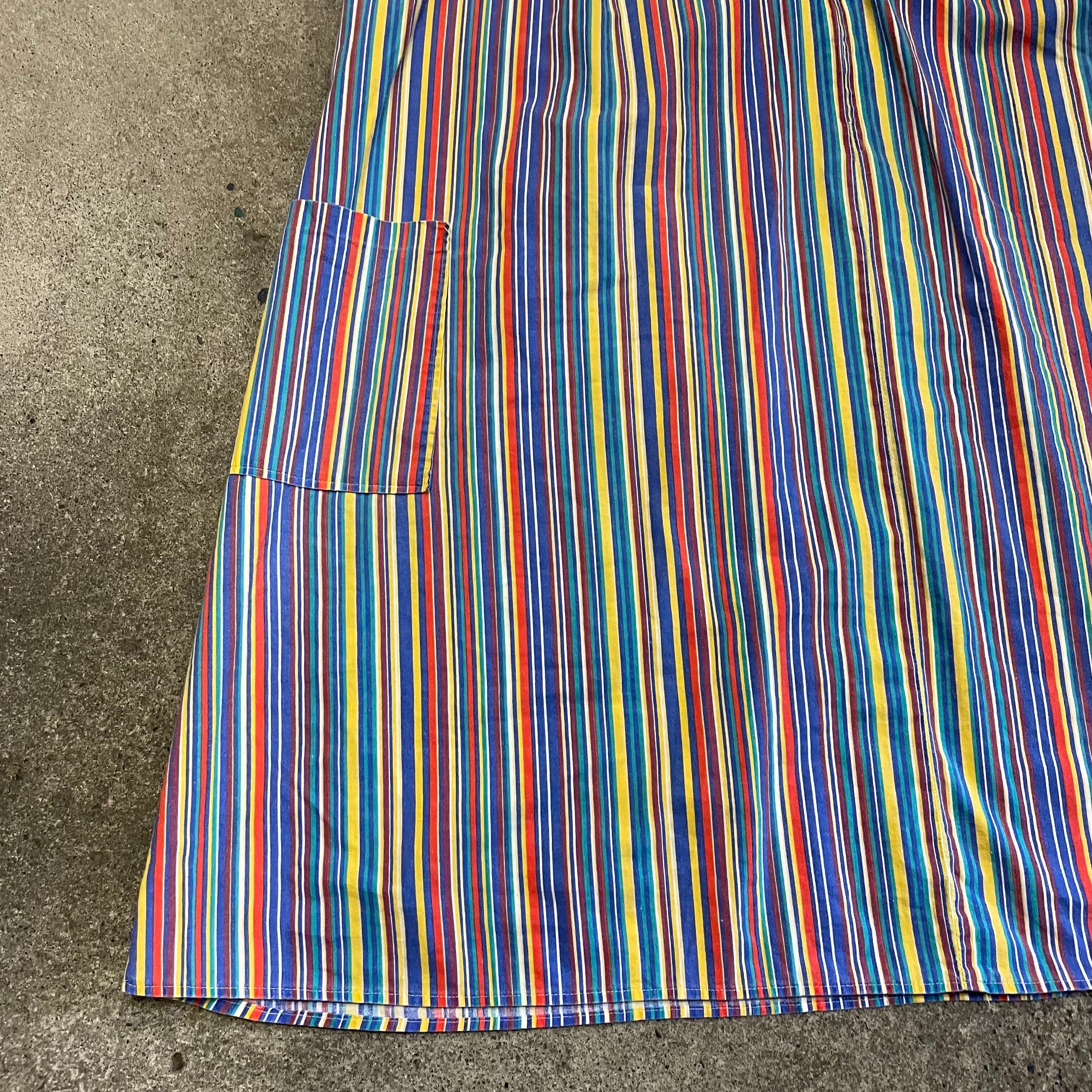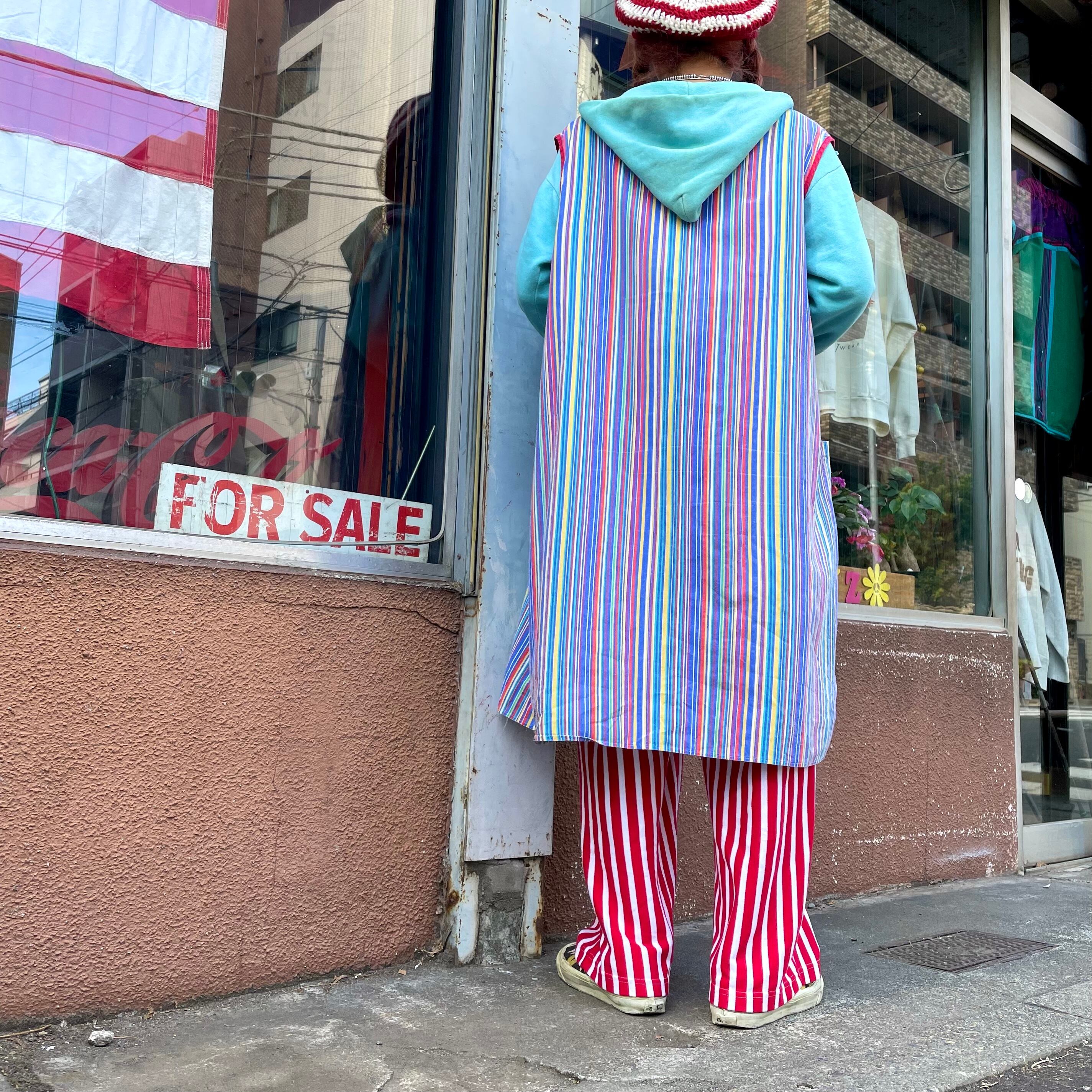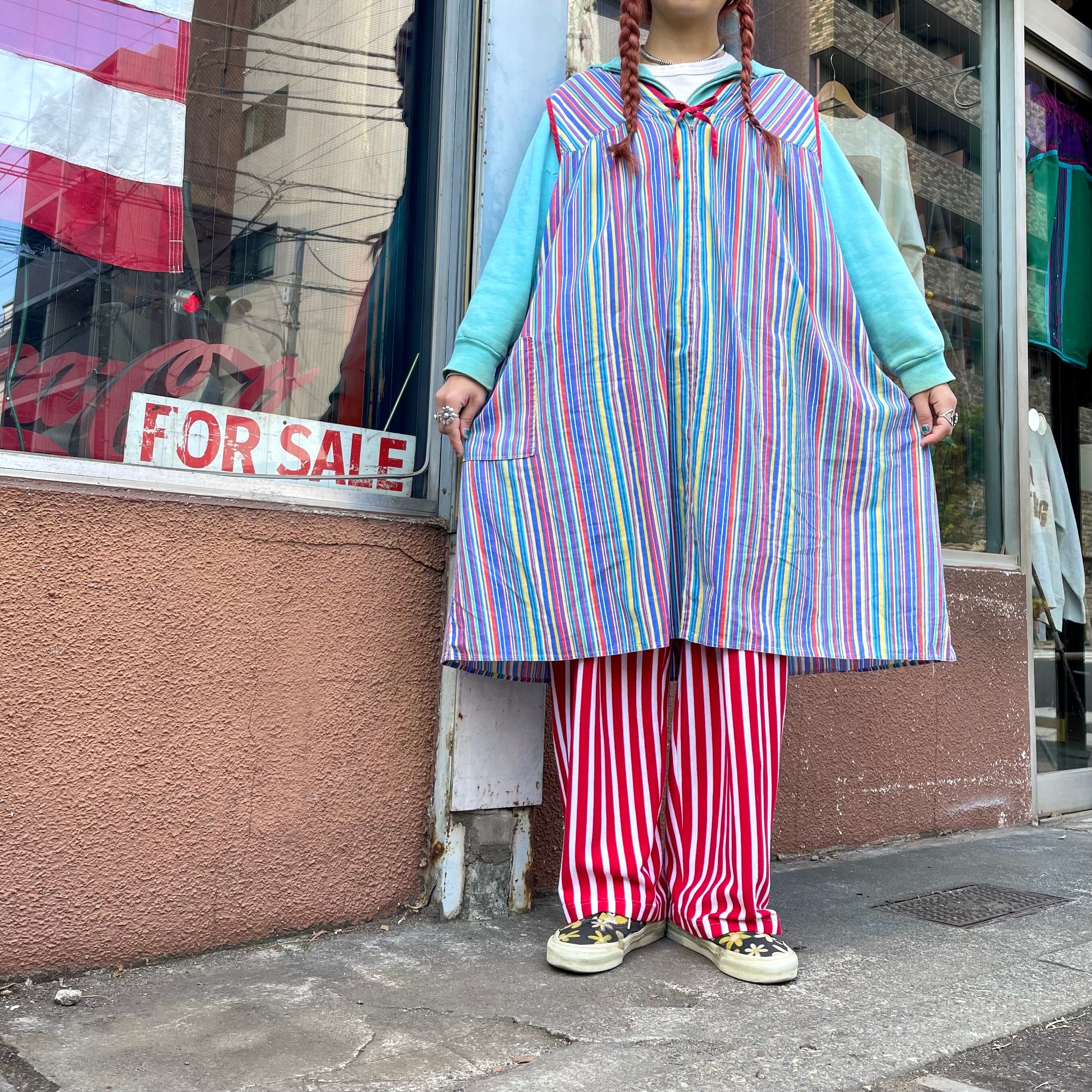 カラフルなストライプがかわいいワンピースです。薄手のコットン素材でサイズが3Xとかなりゆったり大きめですので中にいろいろ合わせられて楽しいアイテムです。