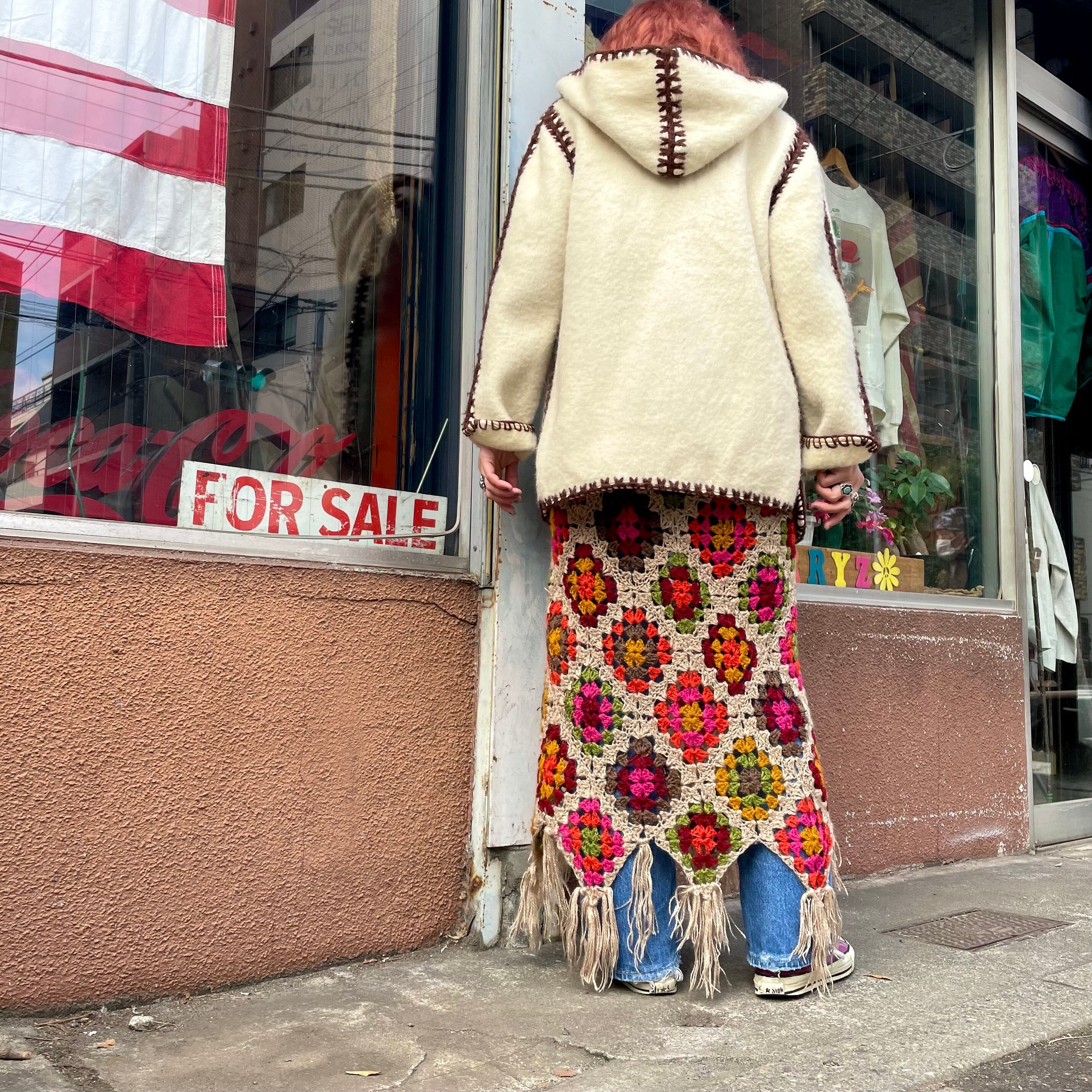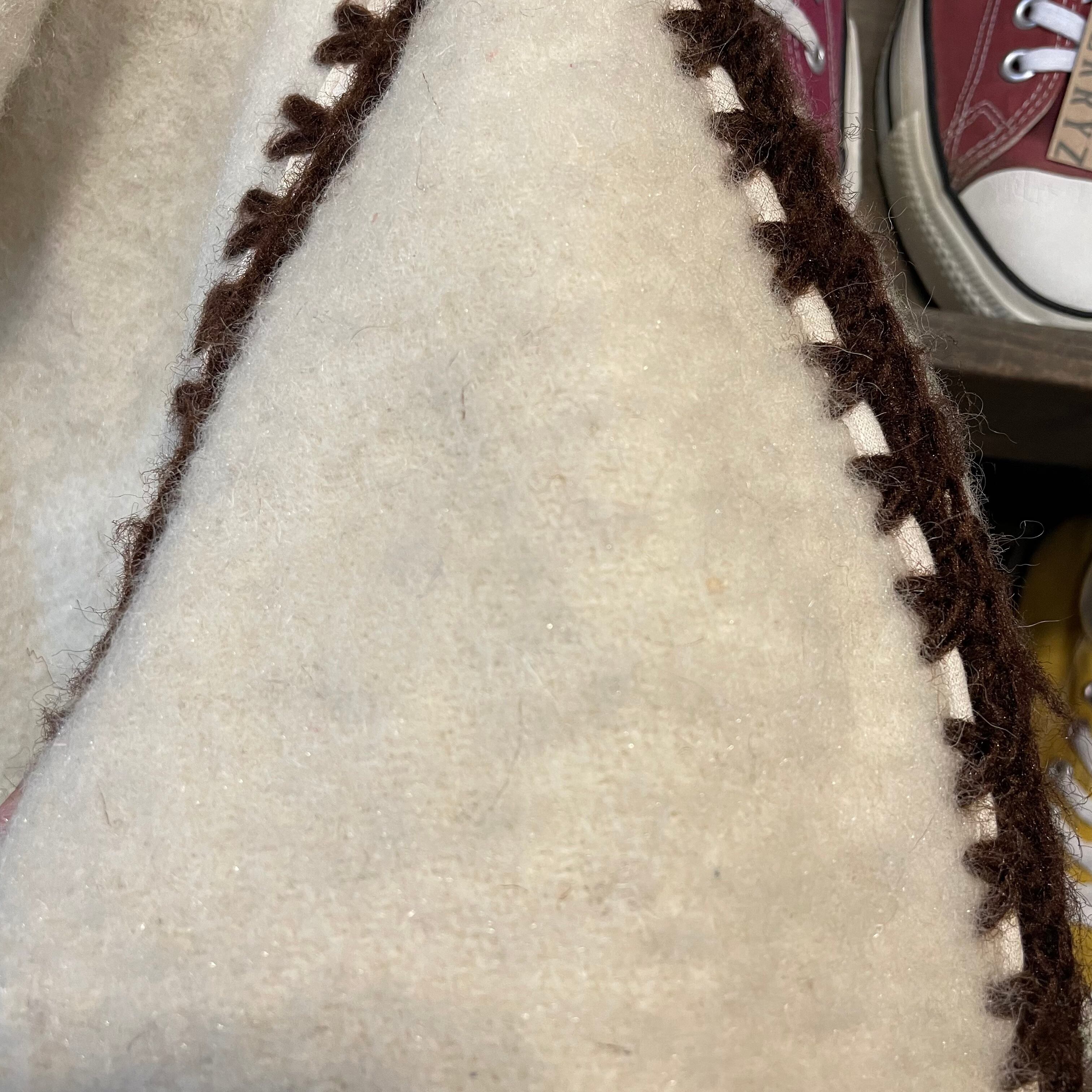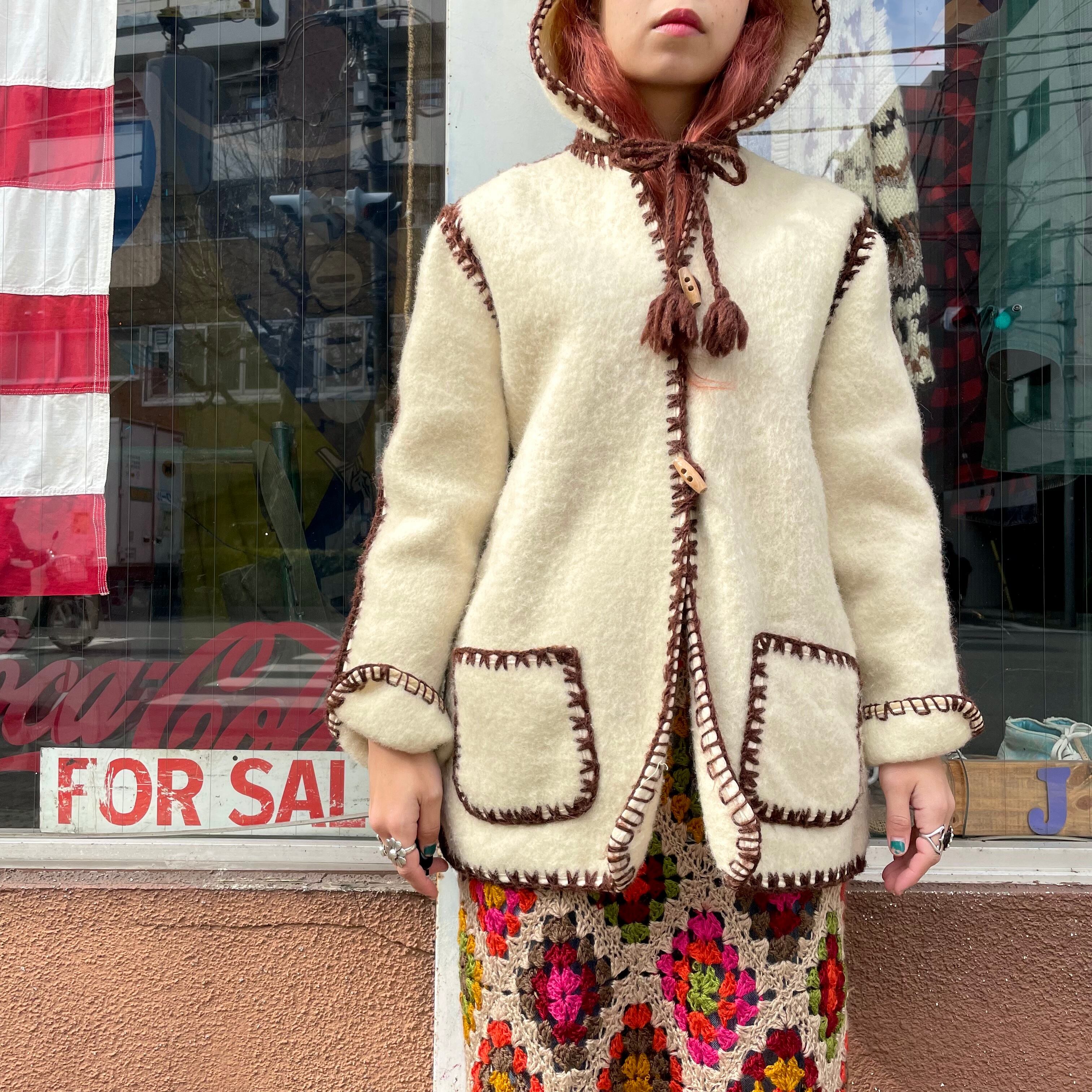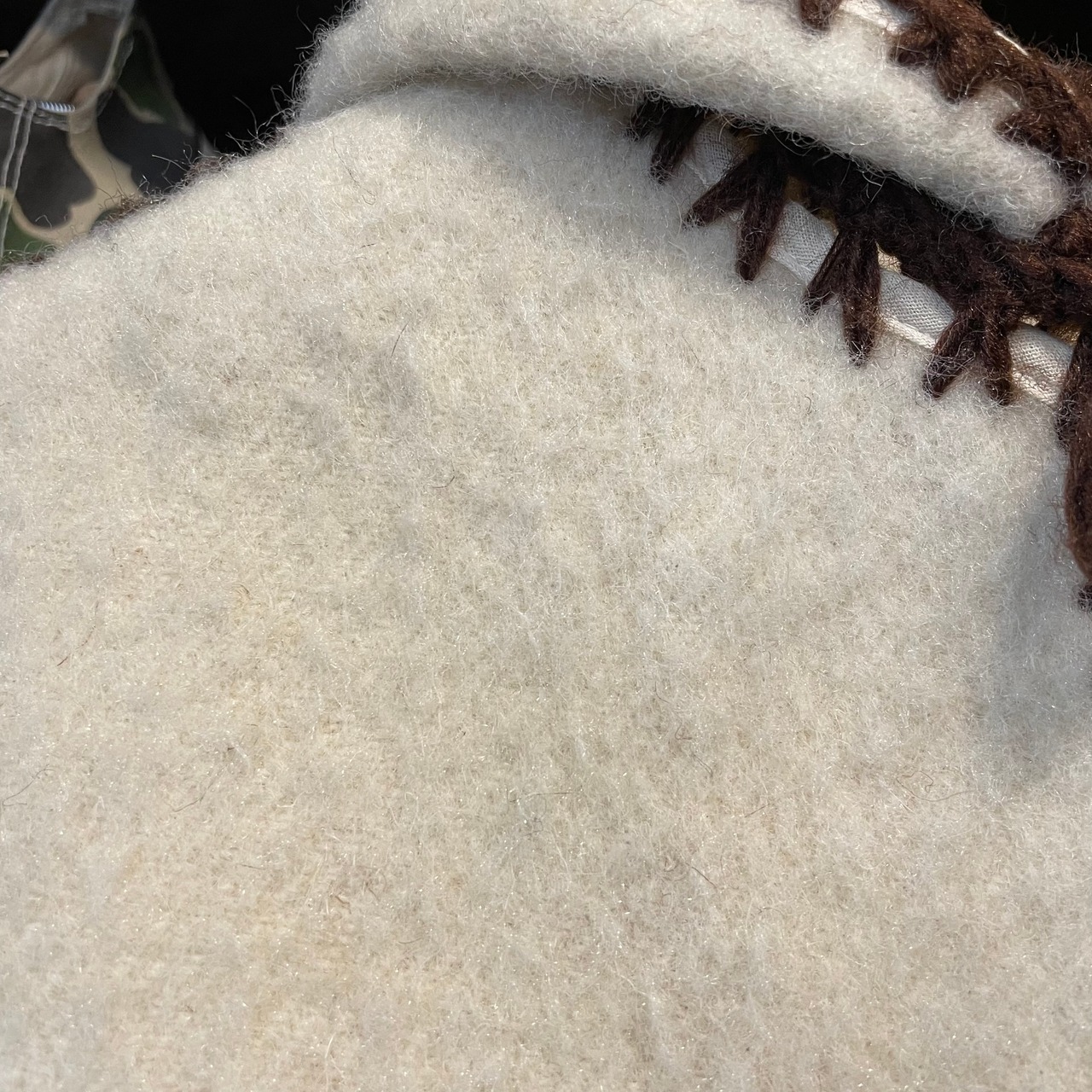 あまり目立ちませんが、毛の抜けている部分がところどころございます。内側首回りに黄ばみがあります。古着にご理解のある方のご購入をお願い致します。