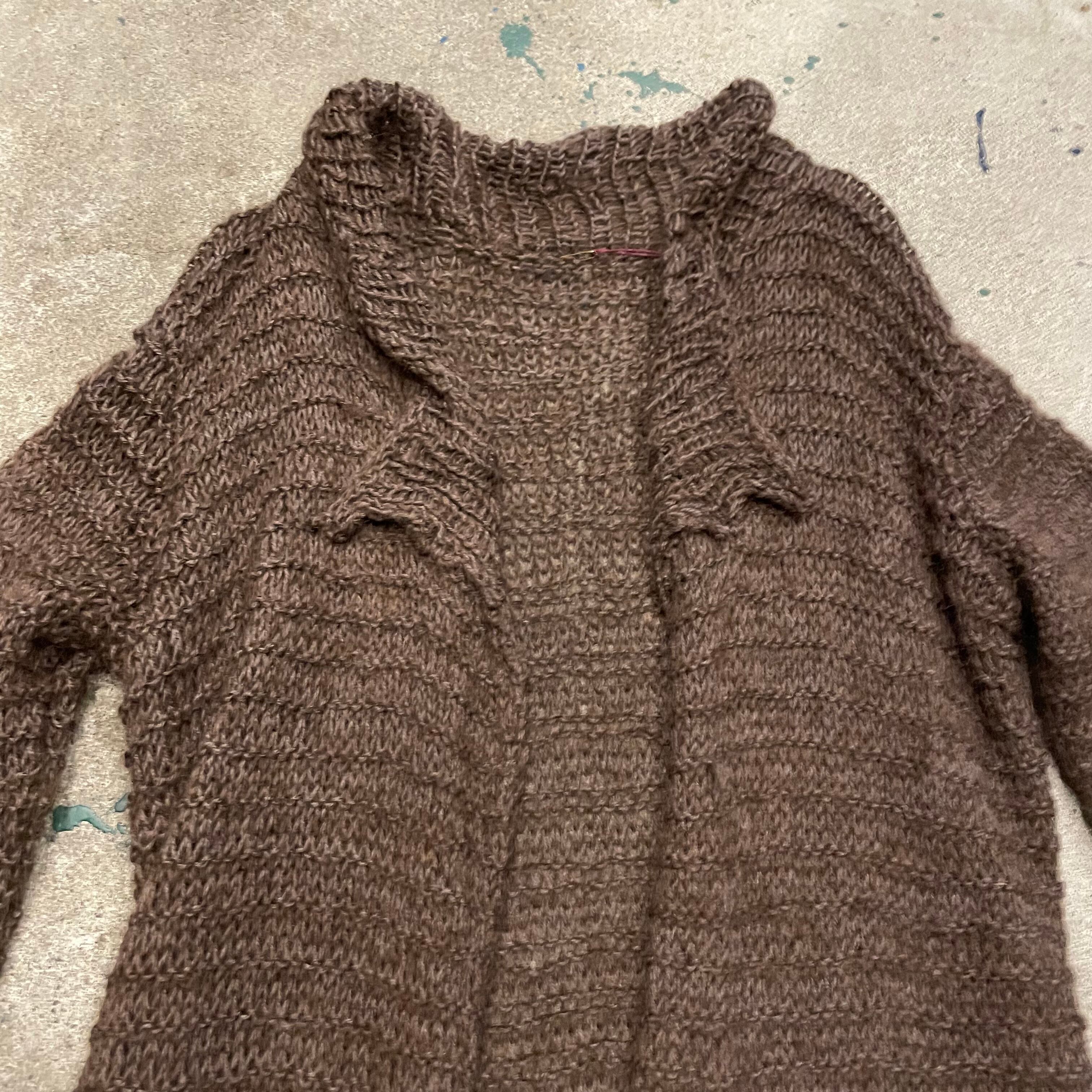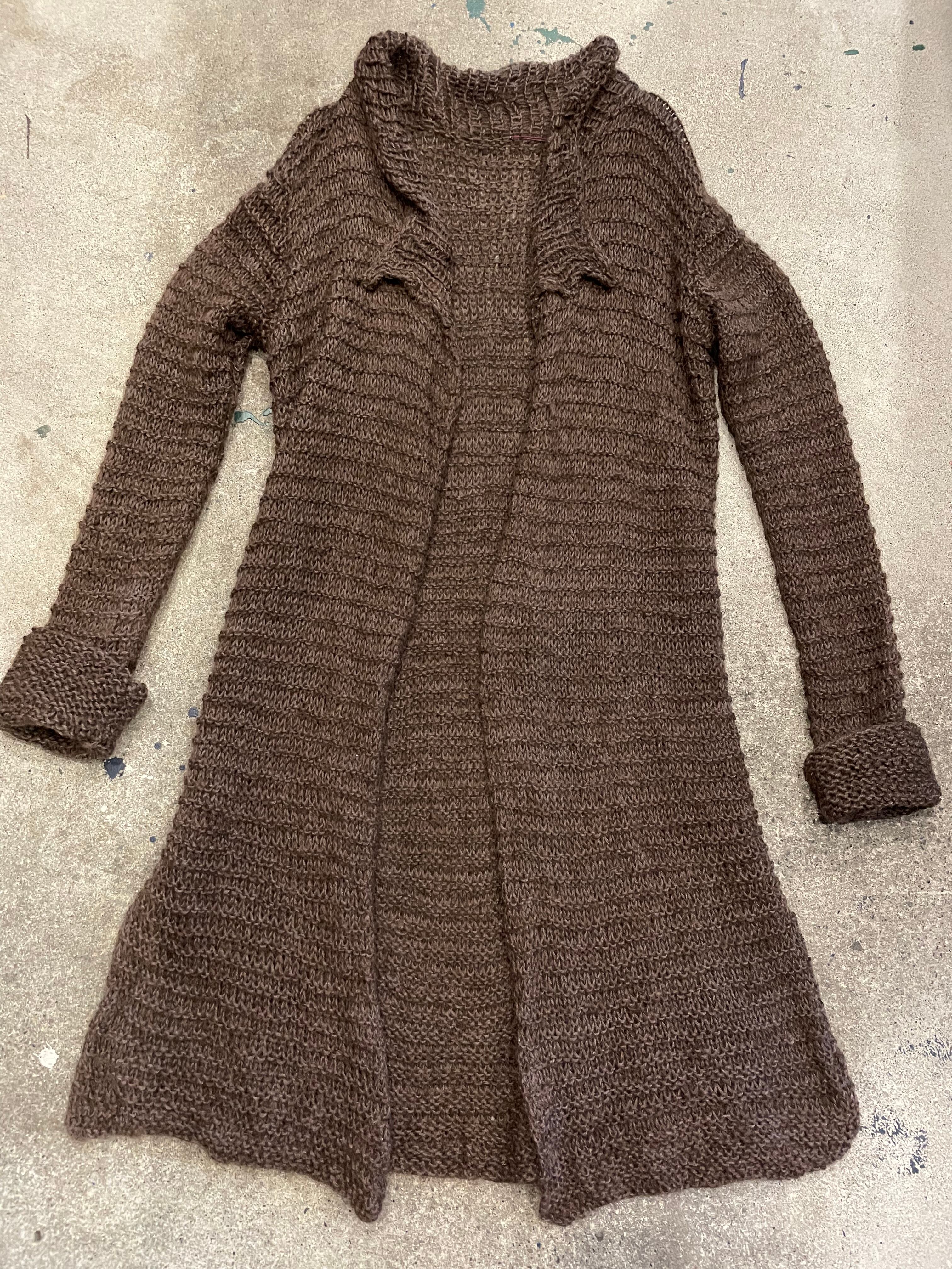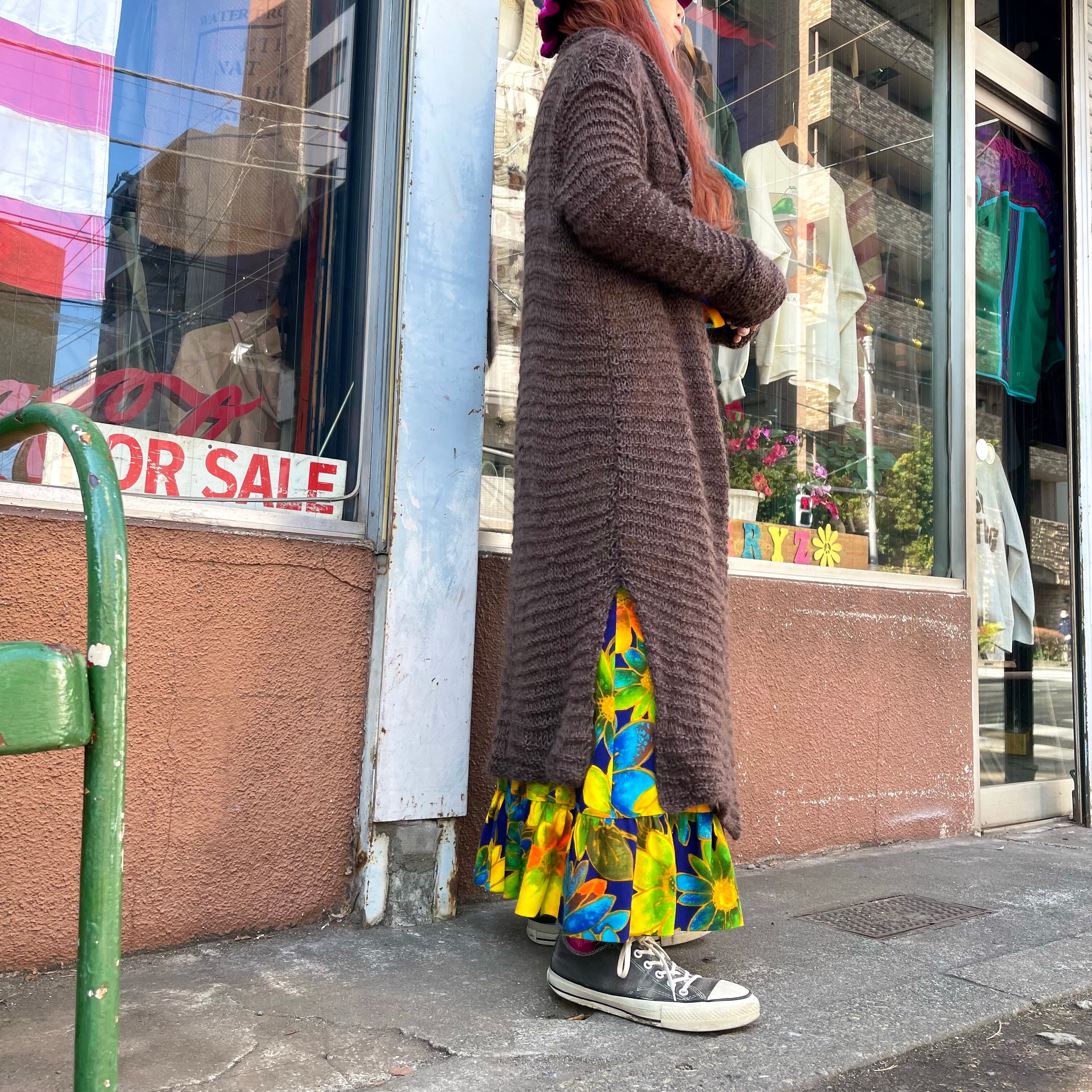 ざっくりスケスケに編まれている雰囲気がかわいいロングカーディガンです。
