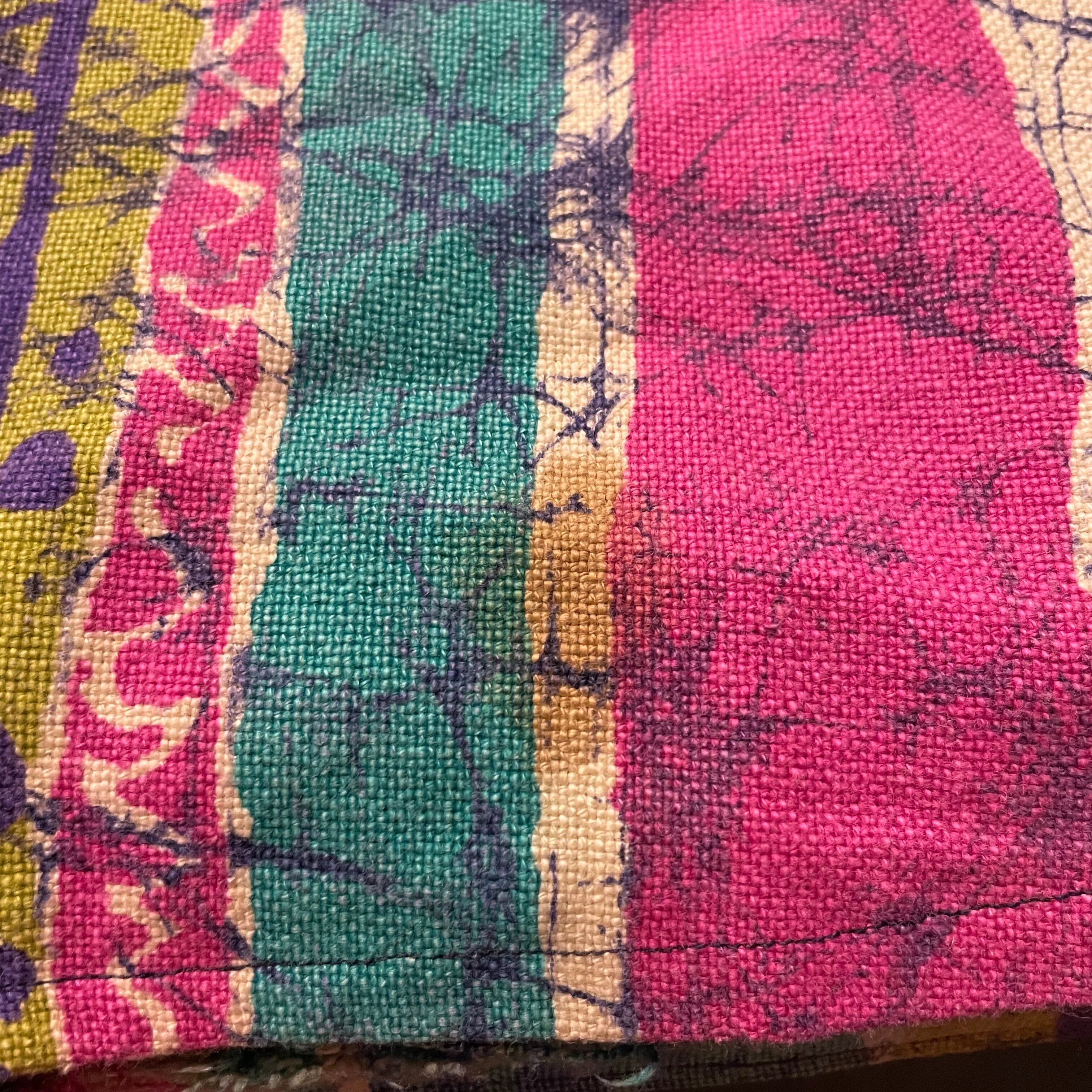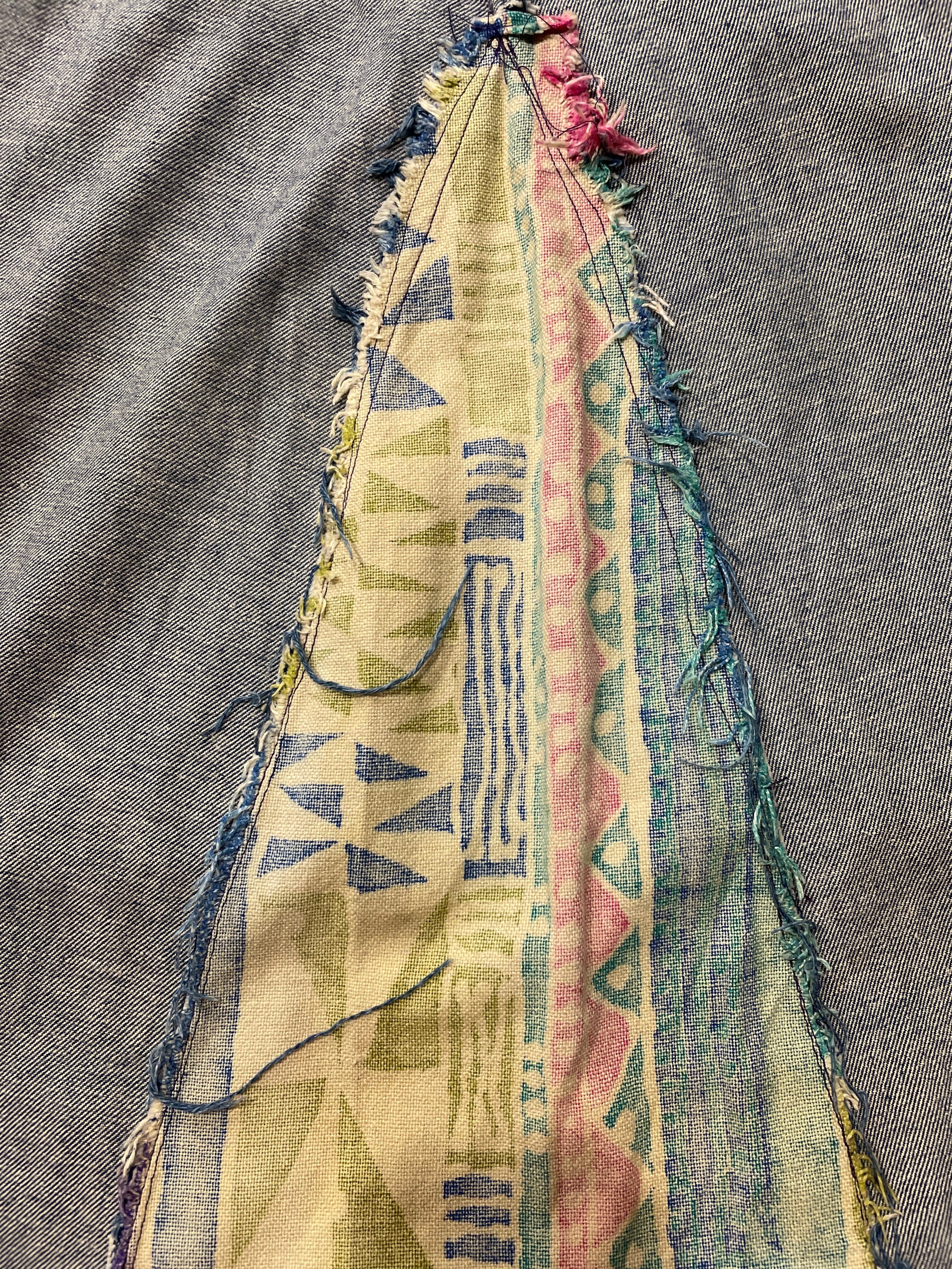 足された生地のカラフルで雰囲気のある模様がデニムの色と合っていてかわいいです。