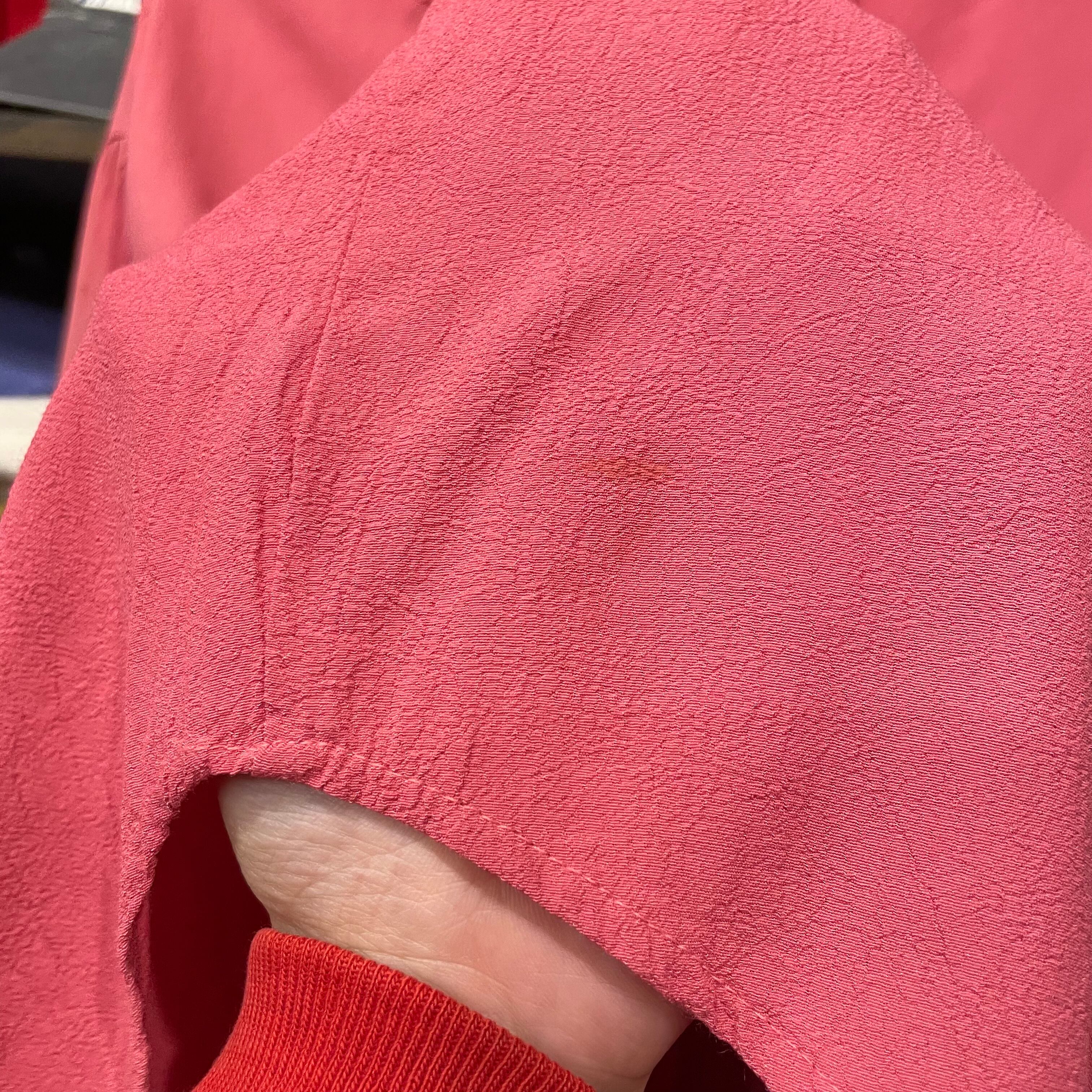 前身頃の全体的な日焼け、右袖の部分的な日焼けや小さい傷、左袖口の大きめなシミ等かなり使用感のある商品ですので古着にご理解のある方のご購入をお願い致します。