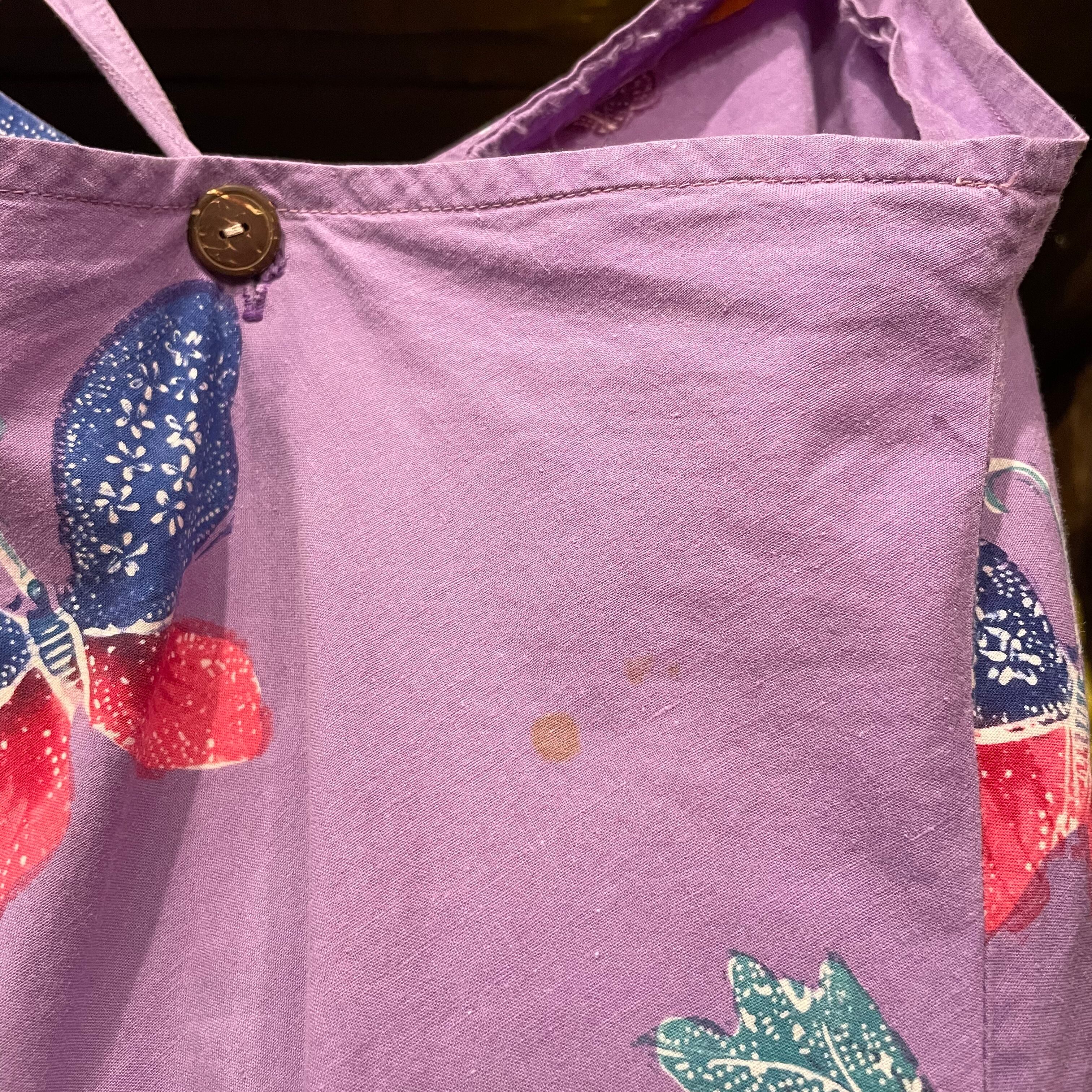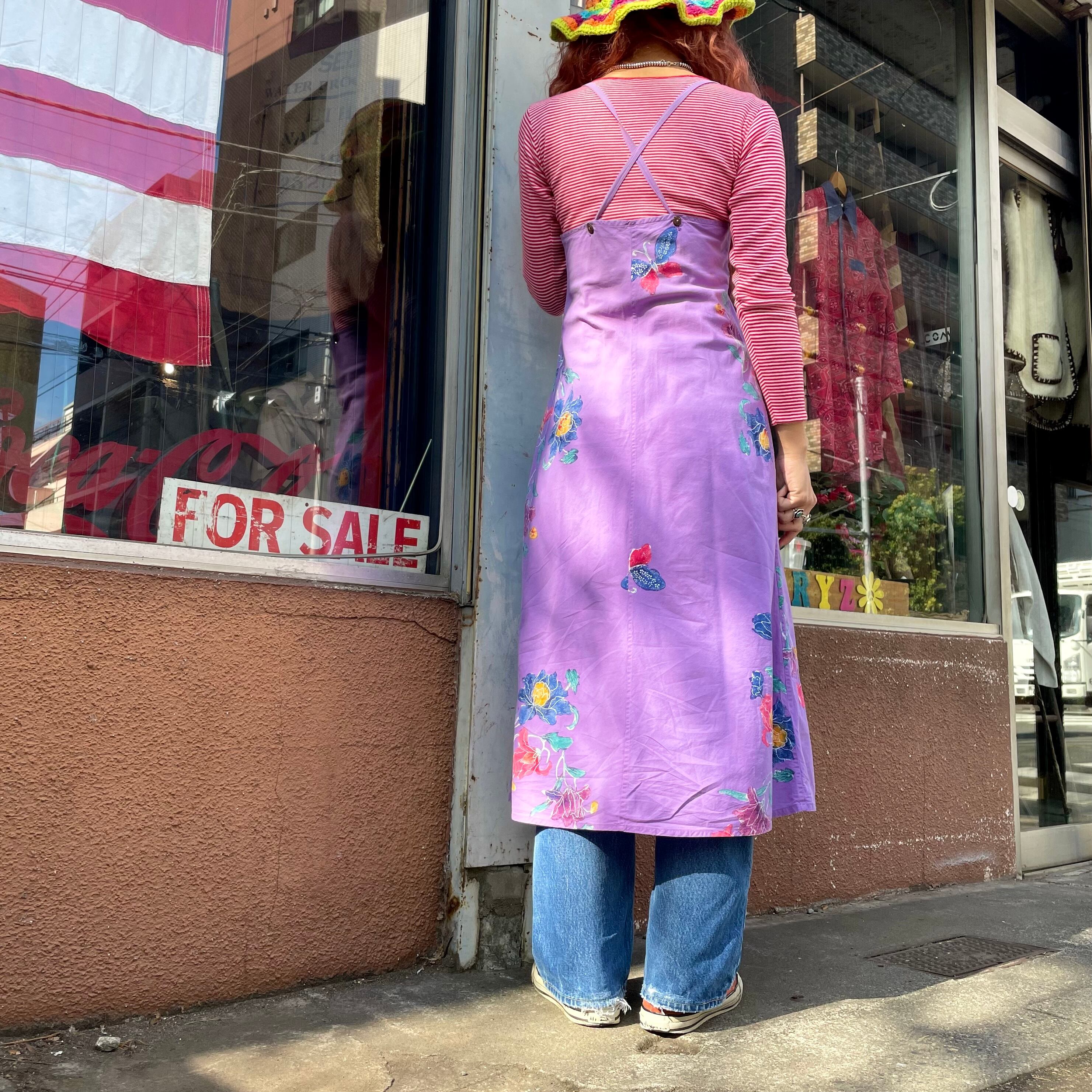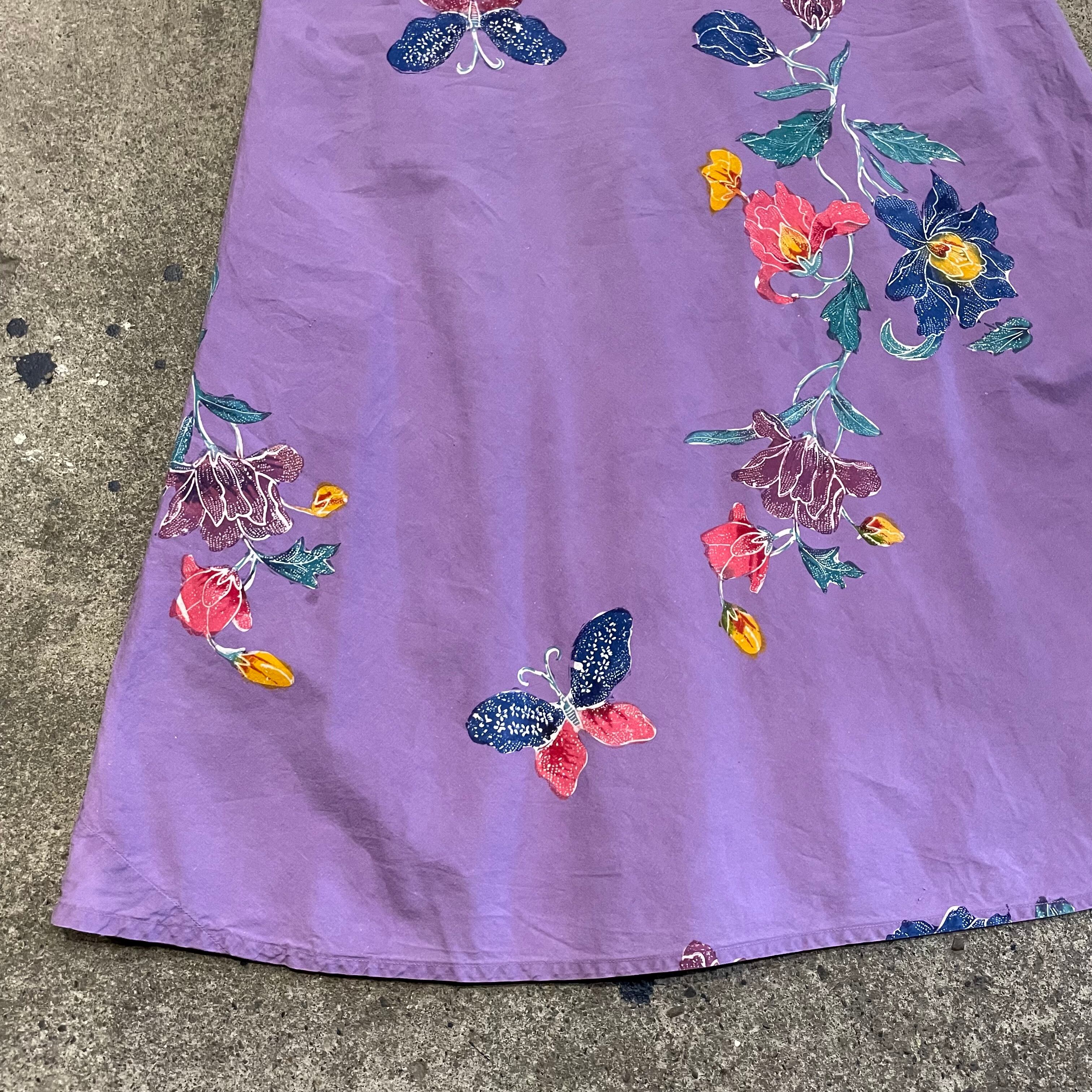 ラベンダー地に大人っぽい雰囲気のお花と蝶々の模様がとても素敵なワンピースです。