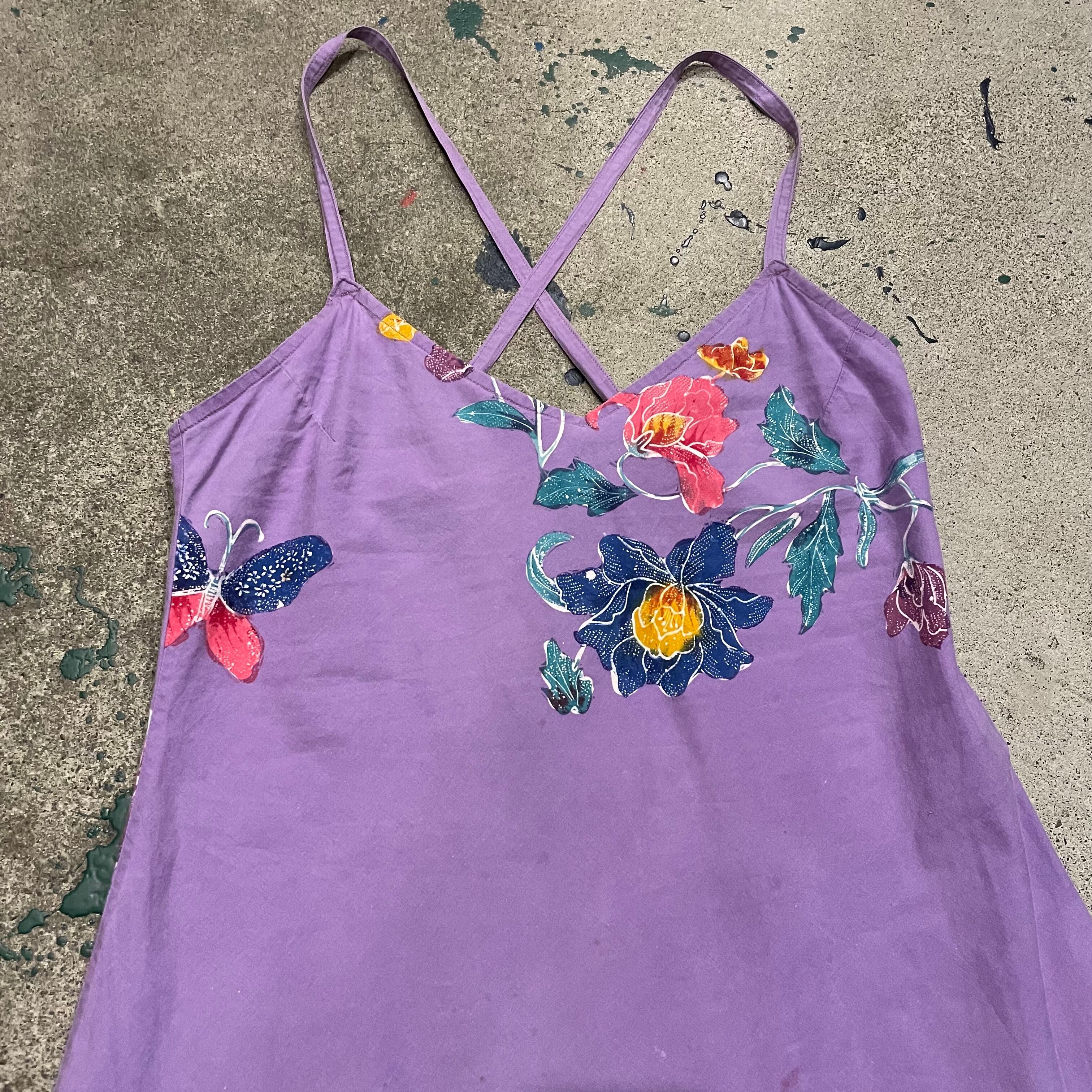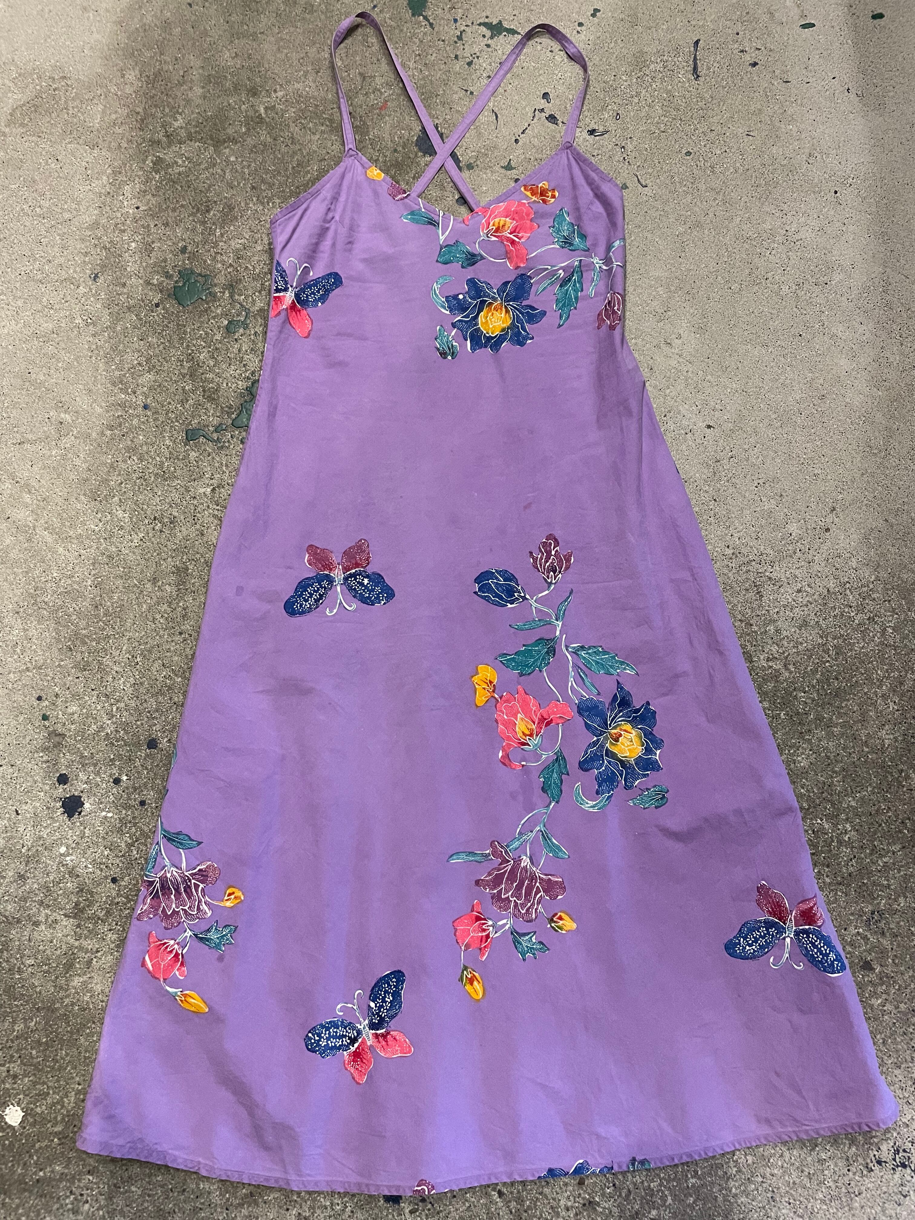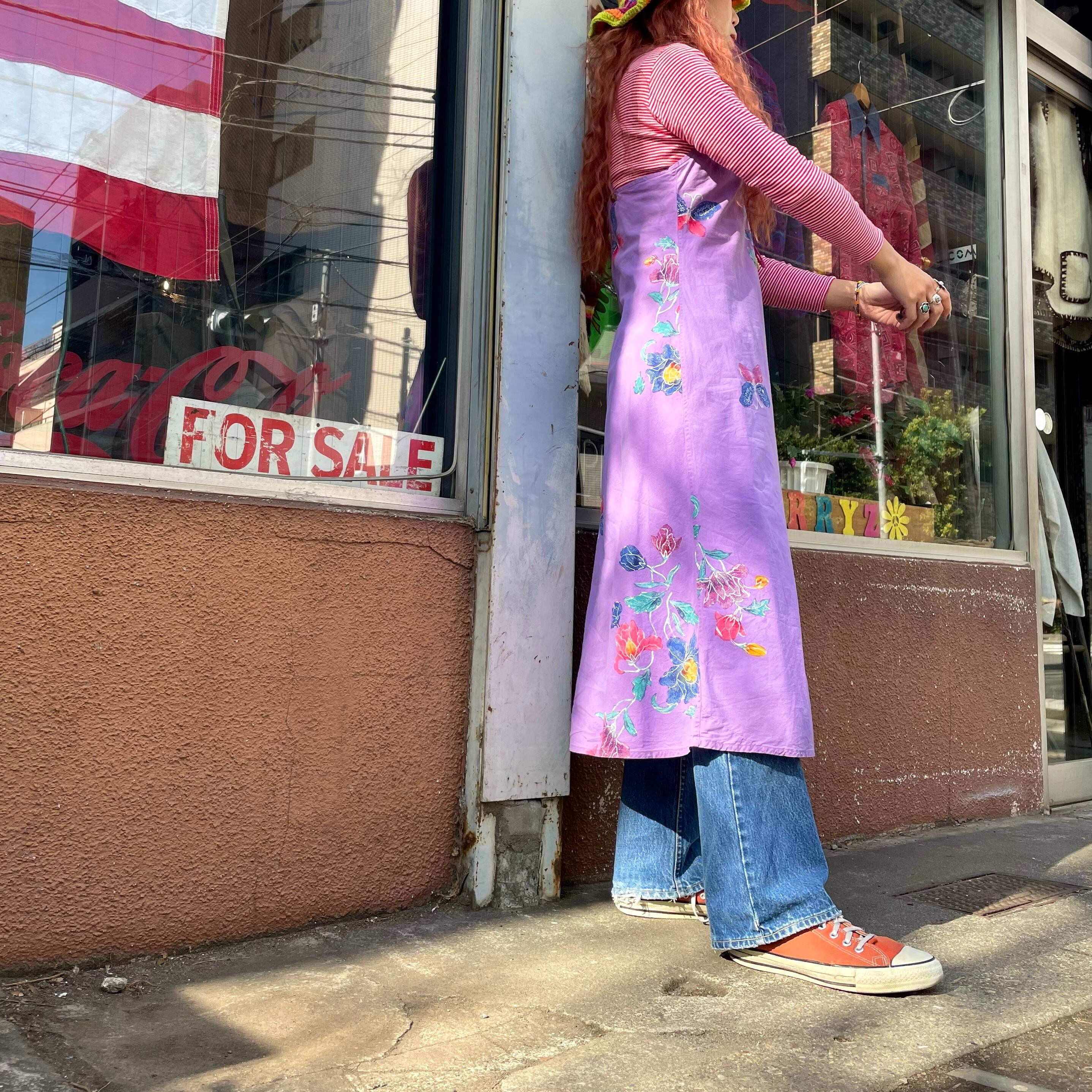 ラベンダー地に大人っぽい雰囲気のお花と蝶々の模様がとても素敵なワンピースです。