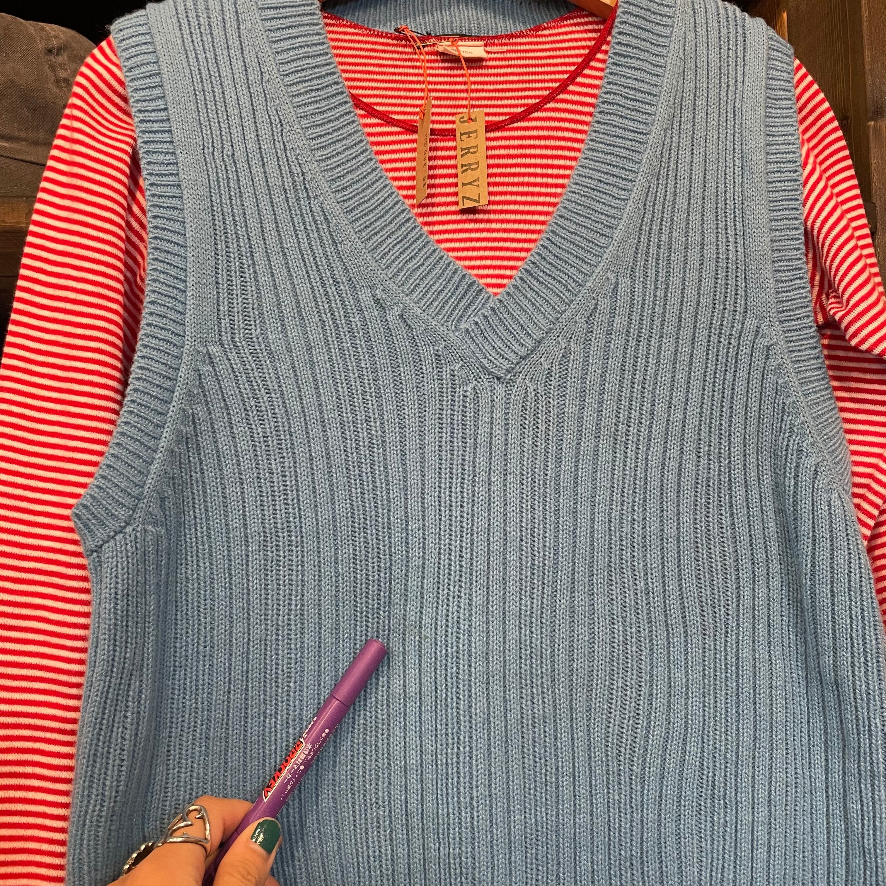 とてもシンプルですのでシャツやブラウス、ワンピースなど何にでも重ねてみると違った雰囲気で着られて楽しいと思います。