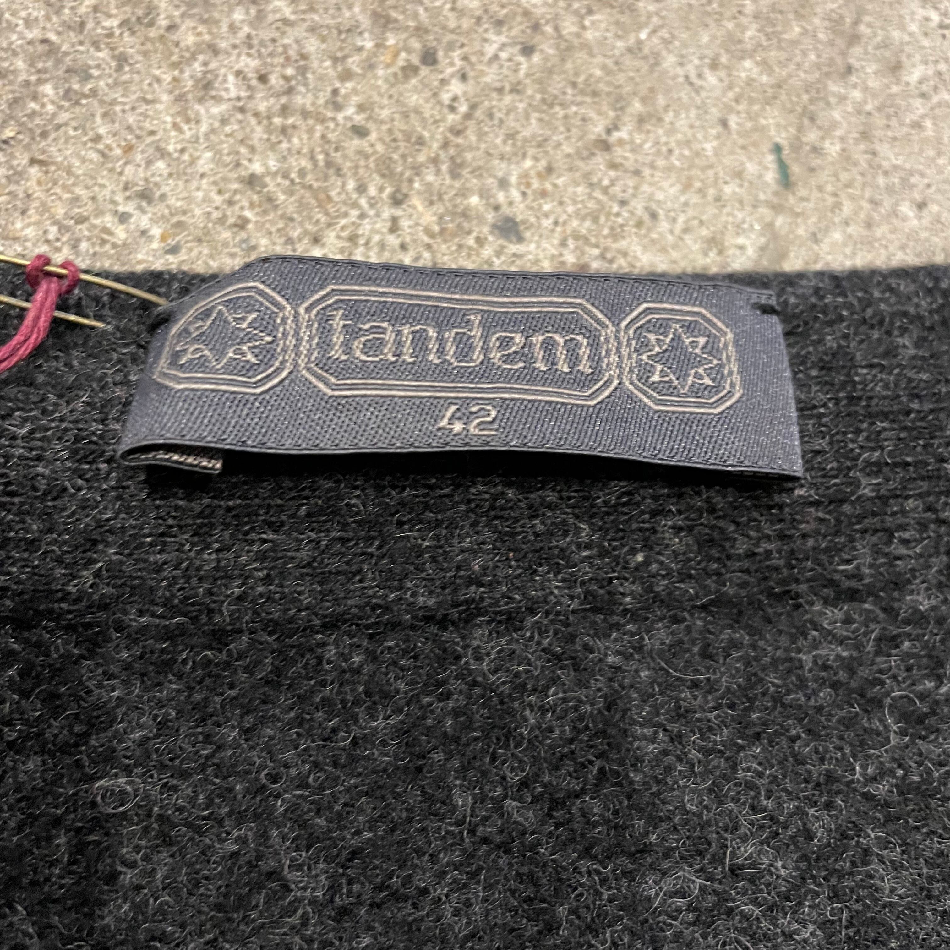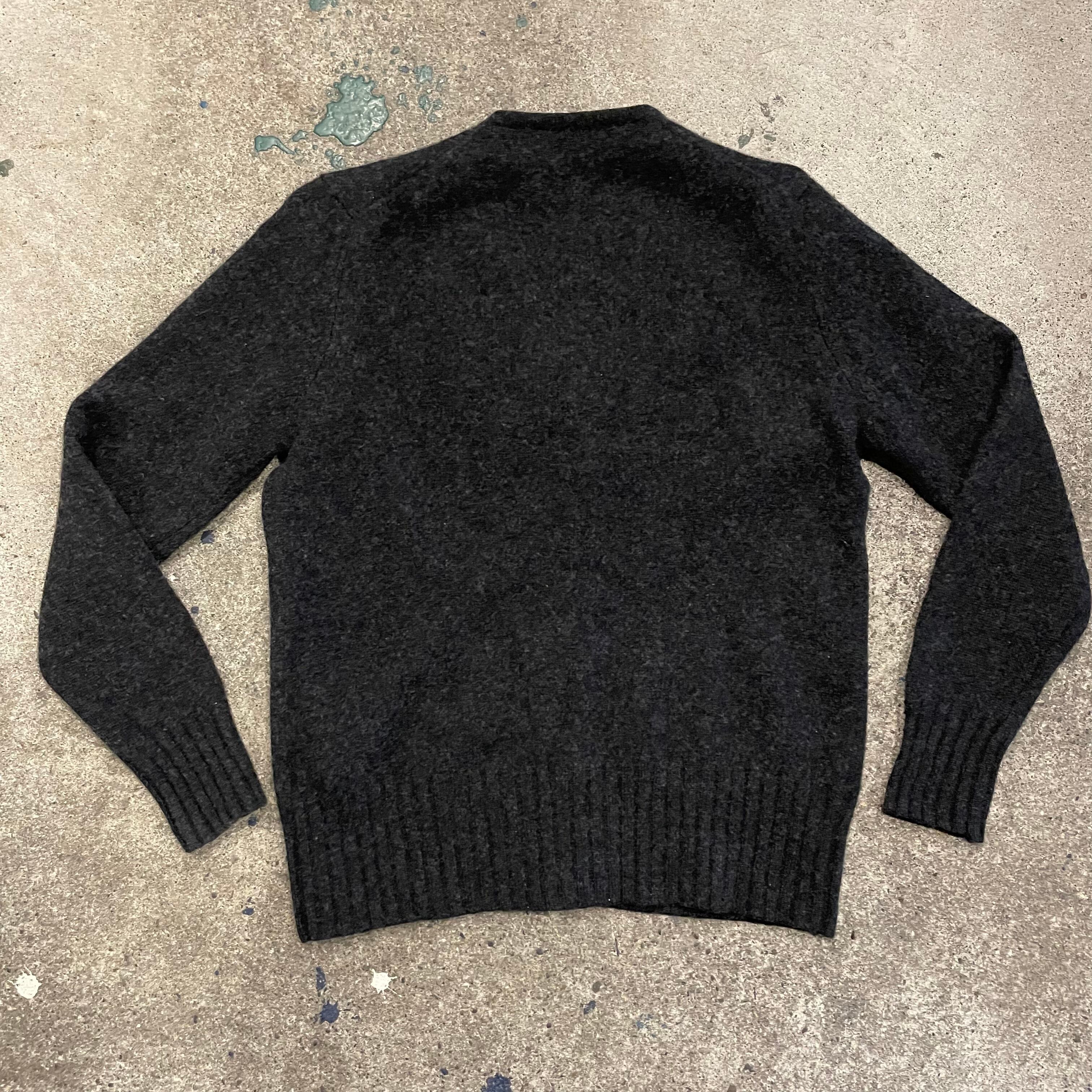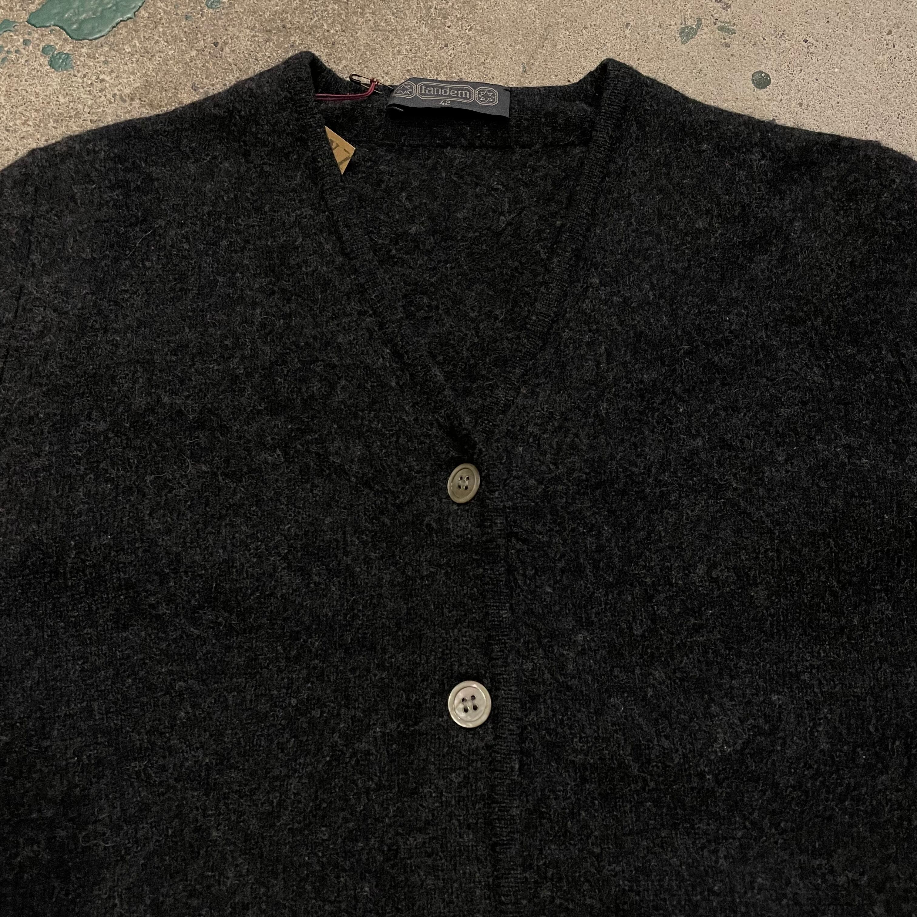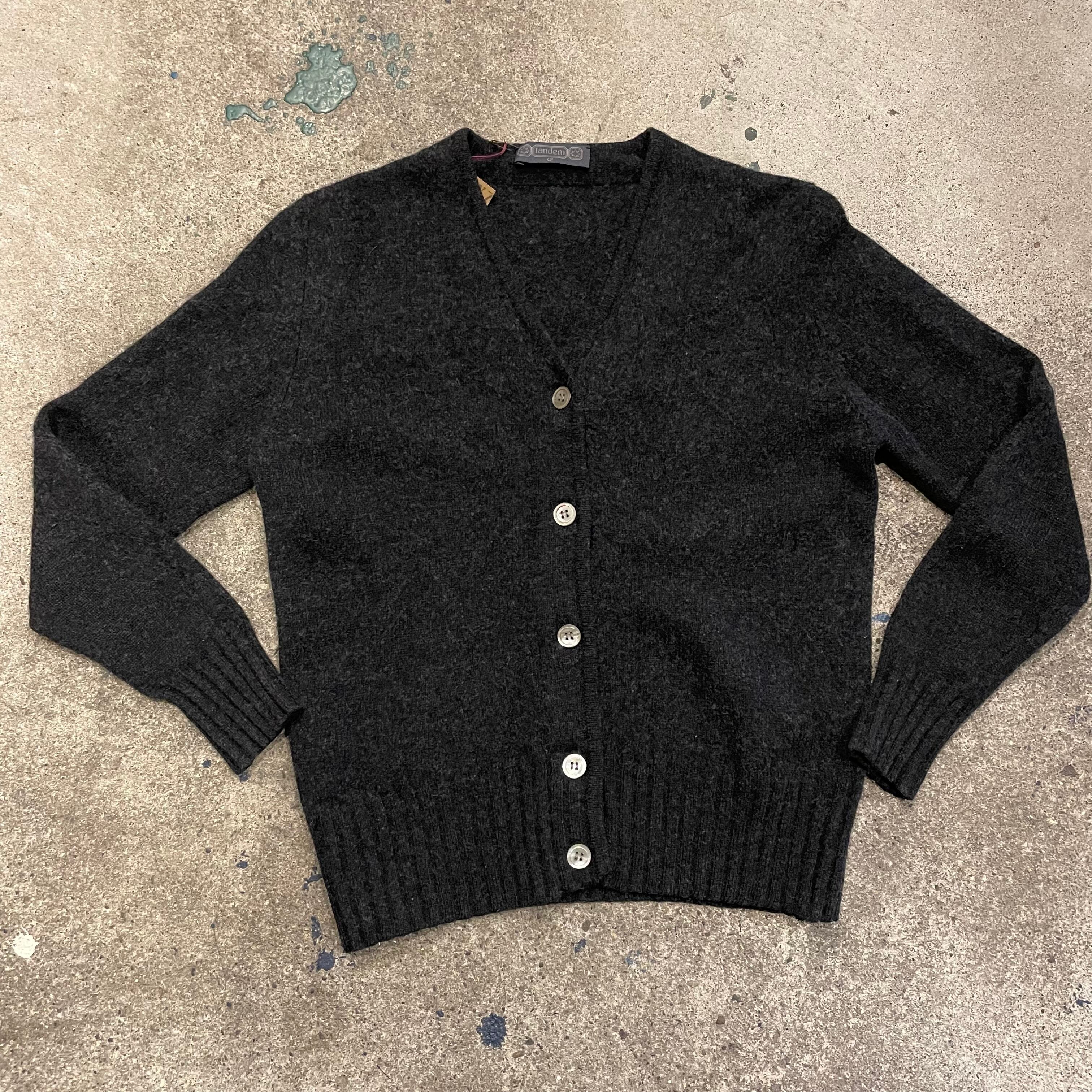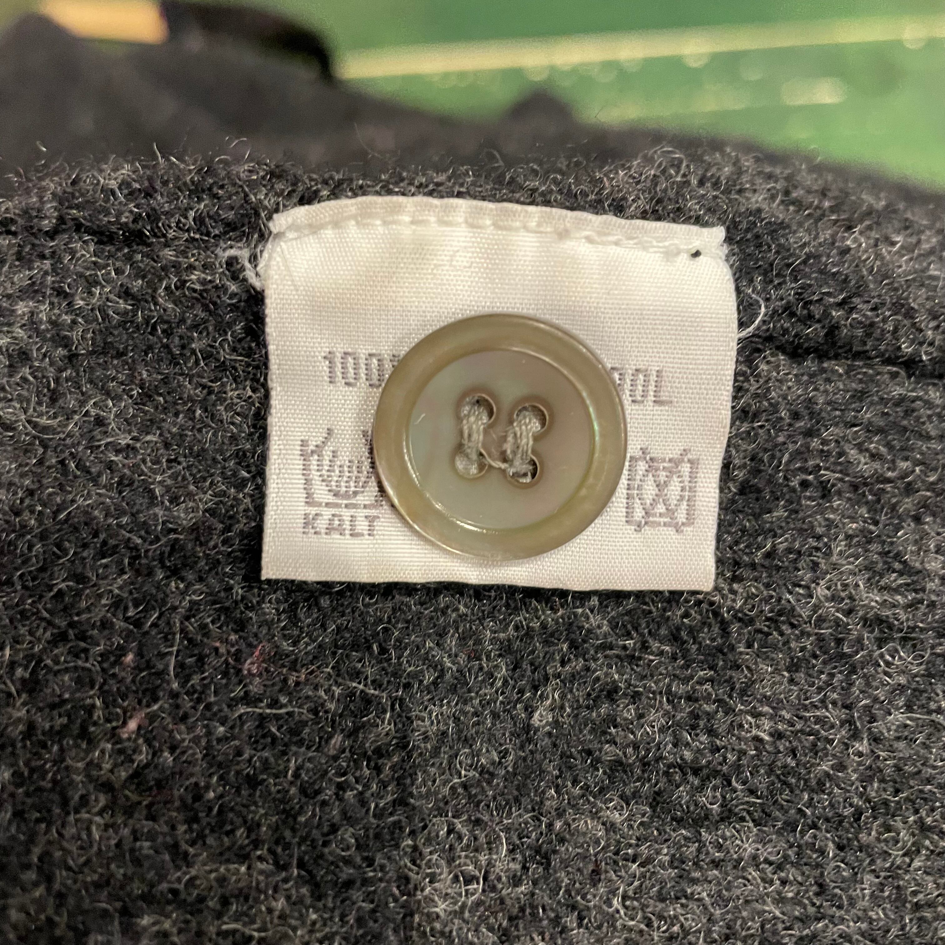 濃いグレーのコンパクトめなウールカーディガンです。