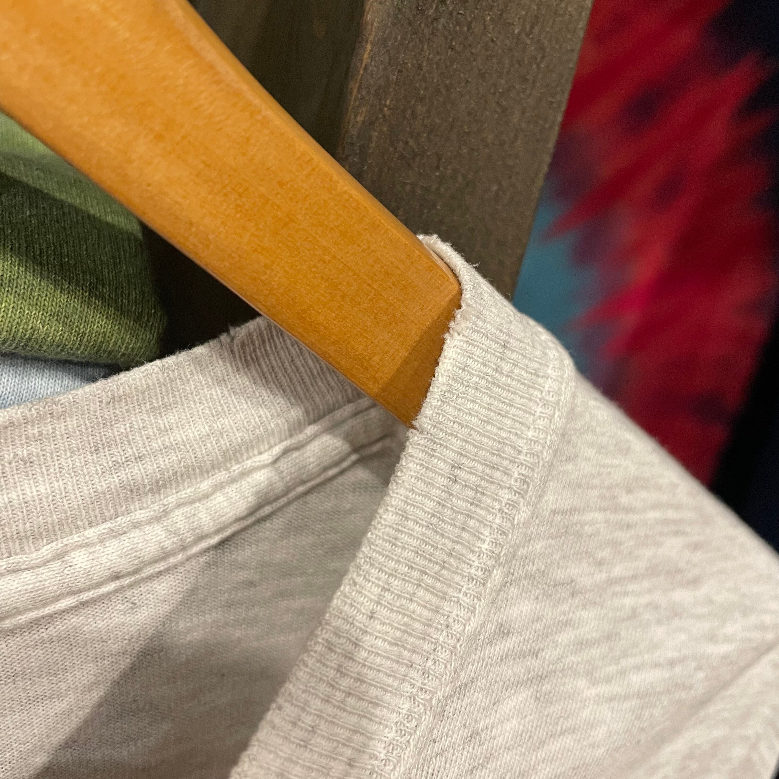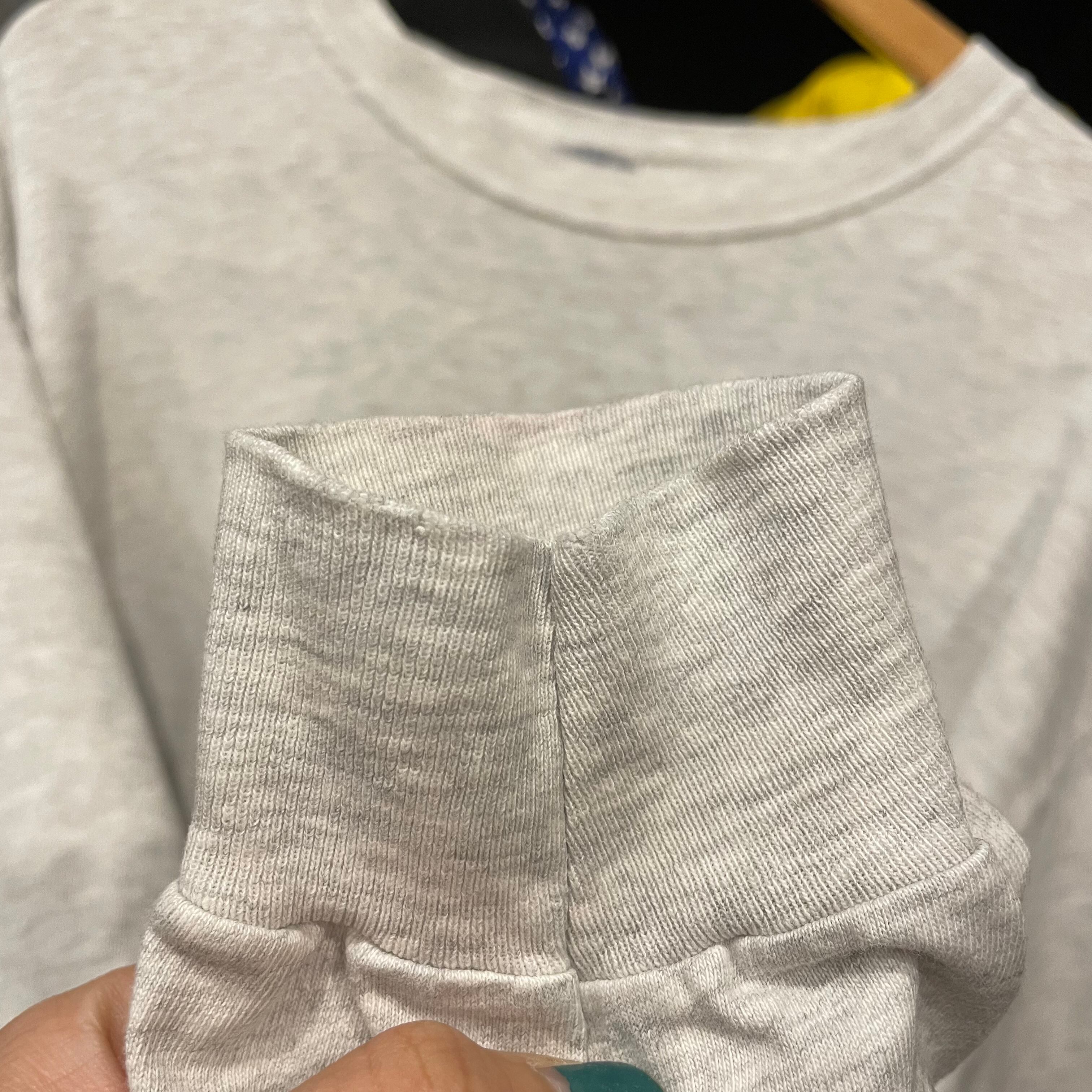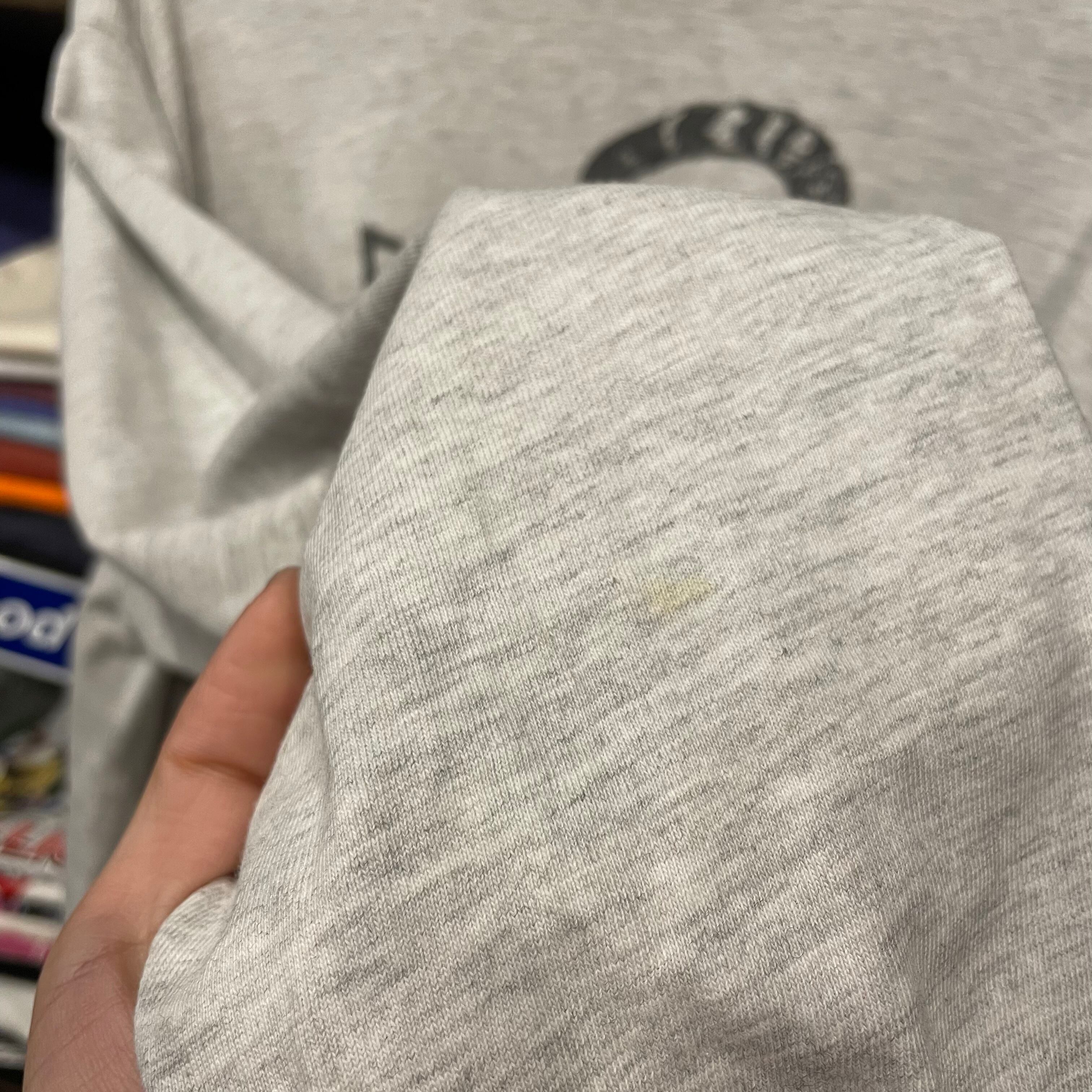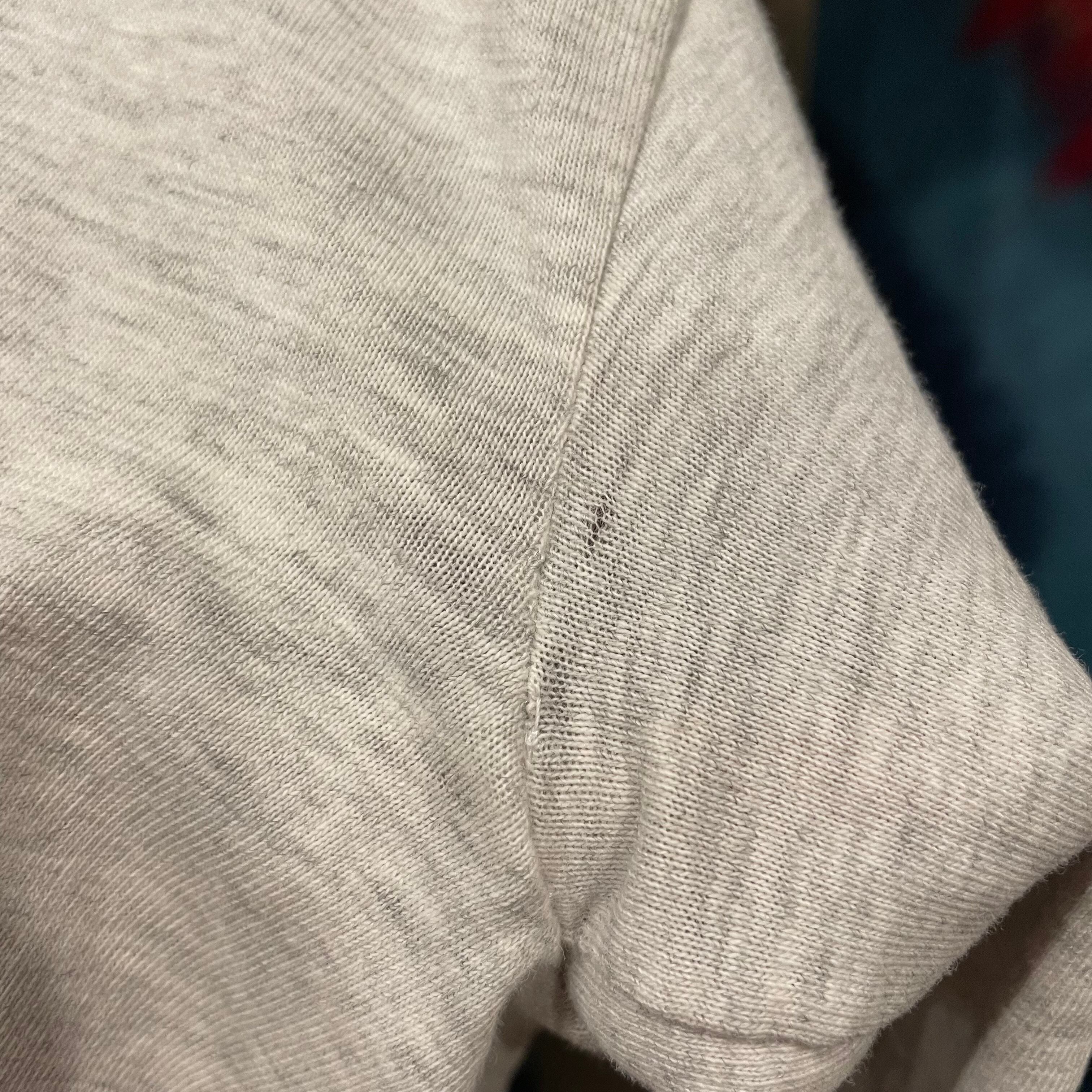 襟ぐりや袖口にダメージ、小さなシミ、両脇に薄くなっている箇所等使用感のある商品ですので古着にご理解のある方のご購入をお願い致します。