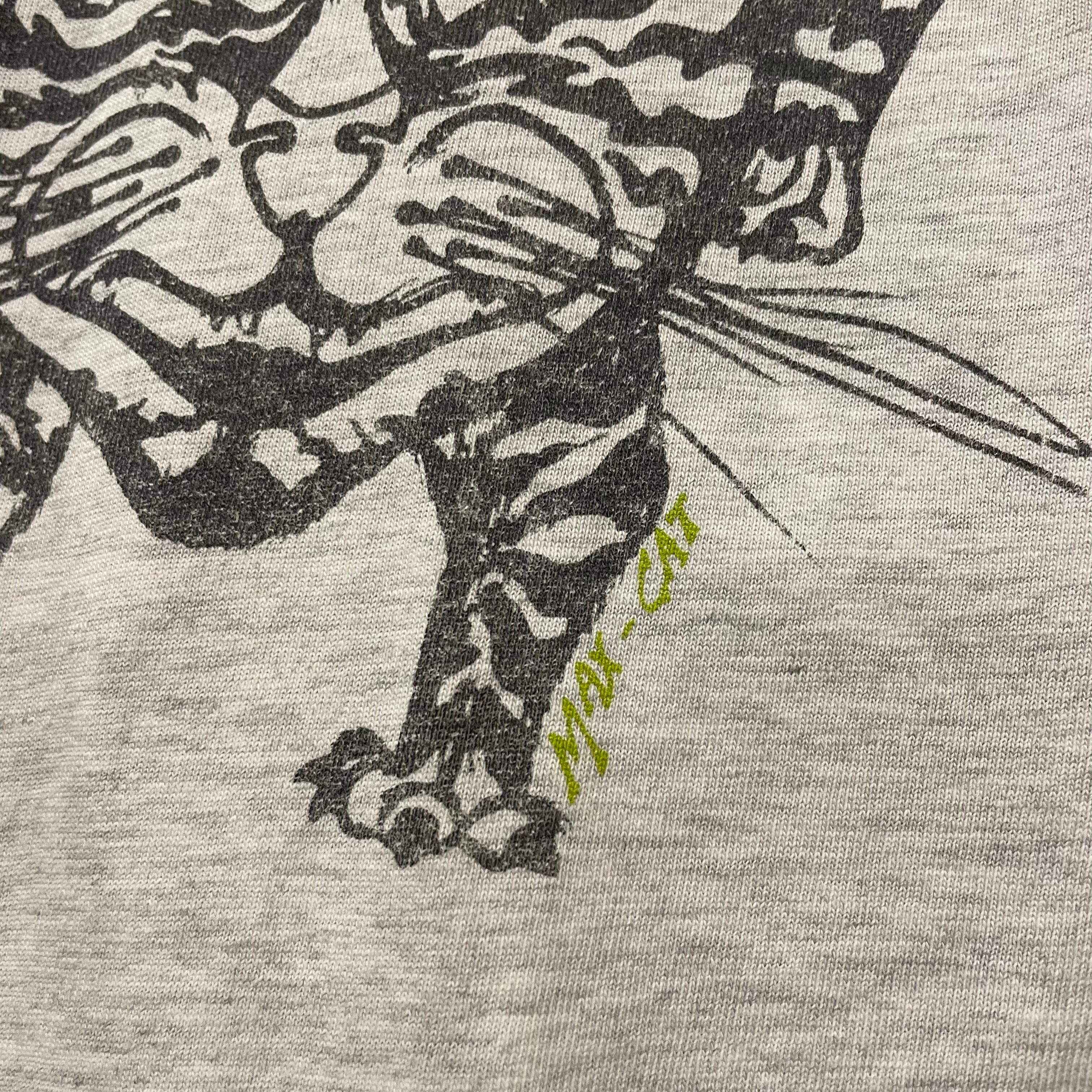 グレーのロンTという時点でサーマル並みに着回しのきくアイテムだと思いますが、このネコを主張してもかわいい男女問わずおすすめの一着です。