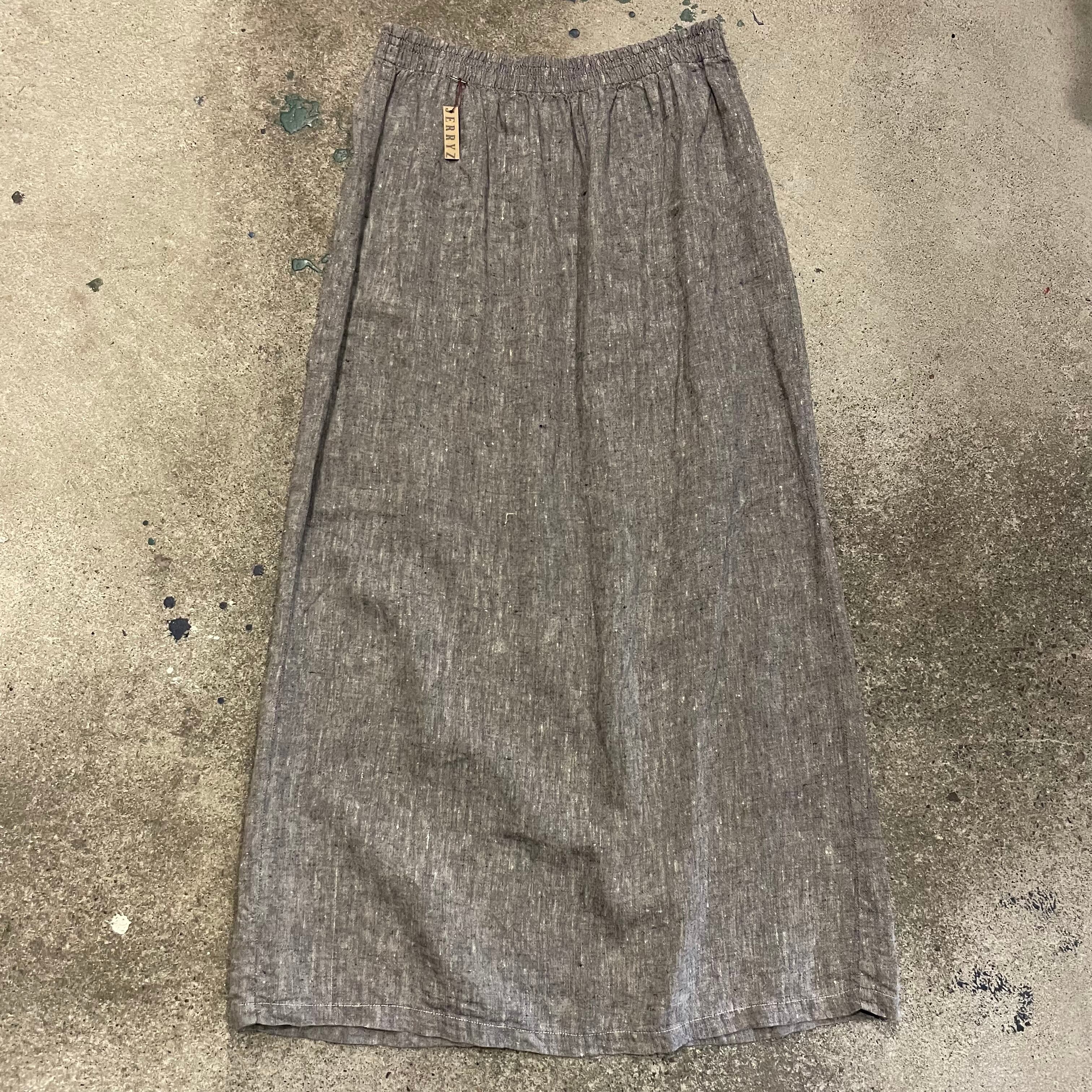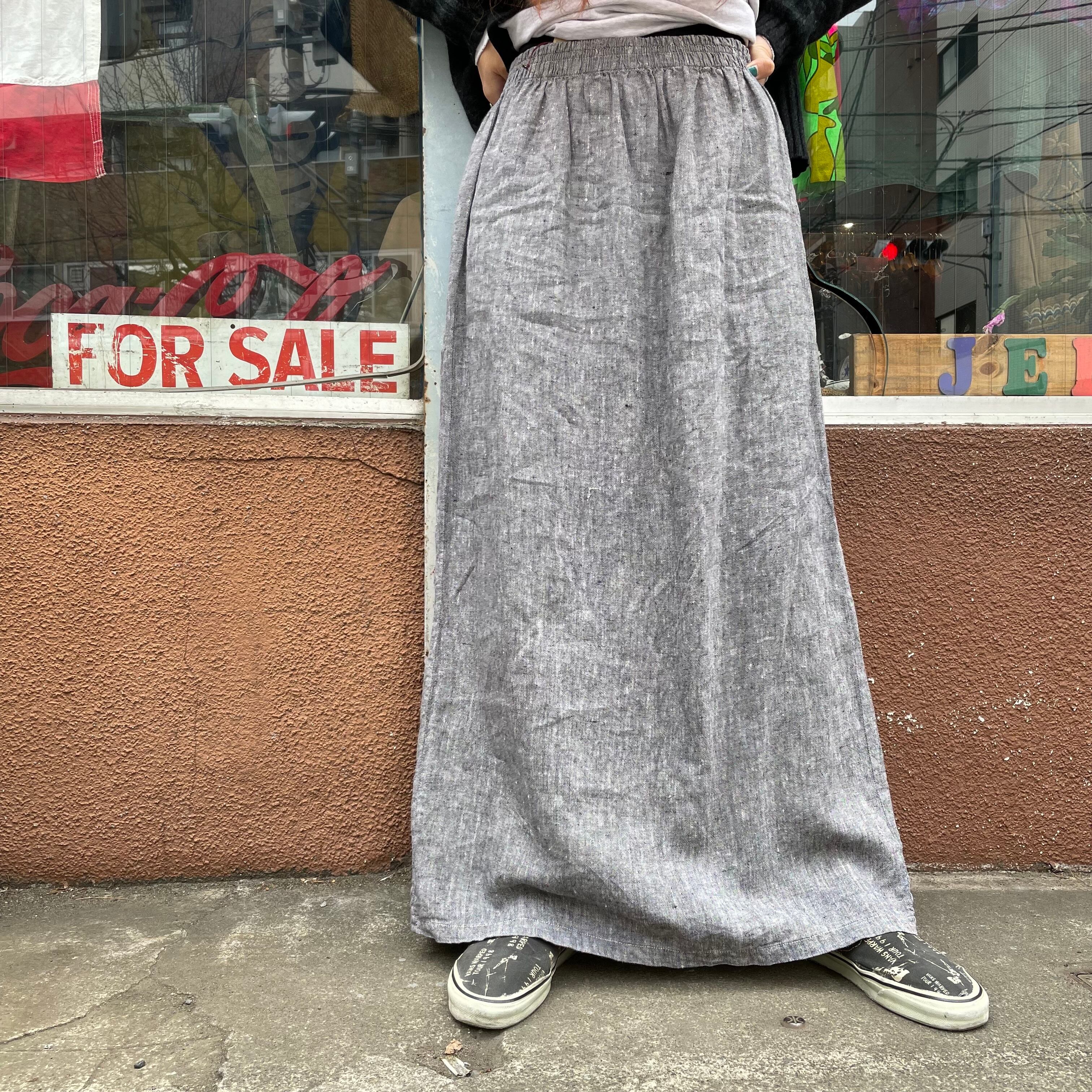 色味も形もとてもシンプルで使いやすい一枚です。ロングな丈感のズルズル感が可愛いですし、ウエストゴムで楽ちんで、スリットが入っていて歩きやすいです。