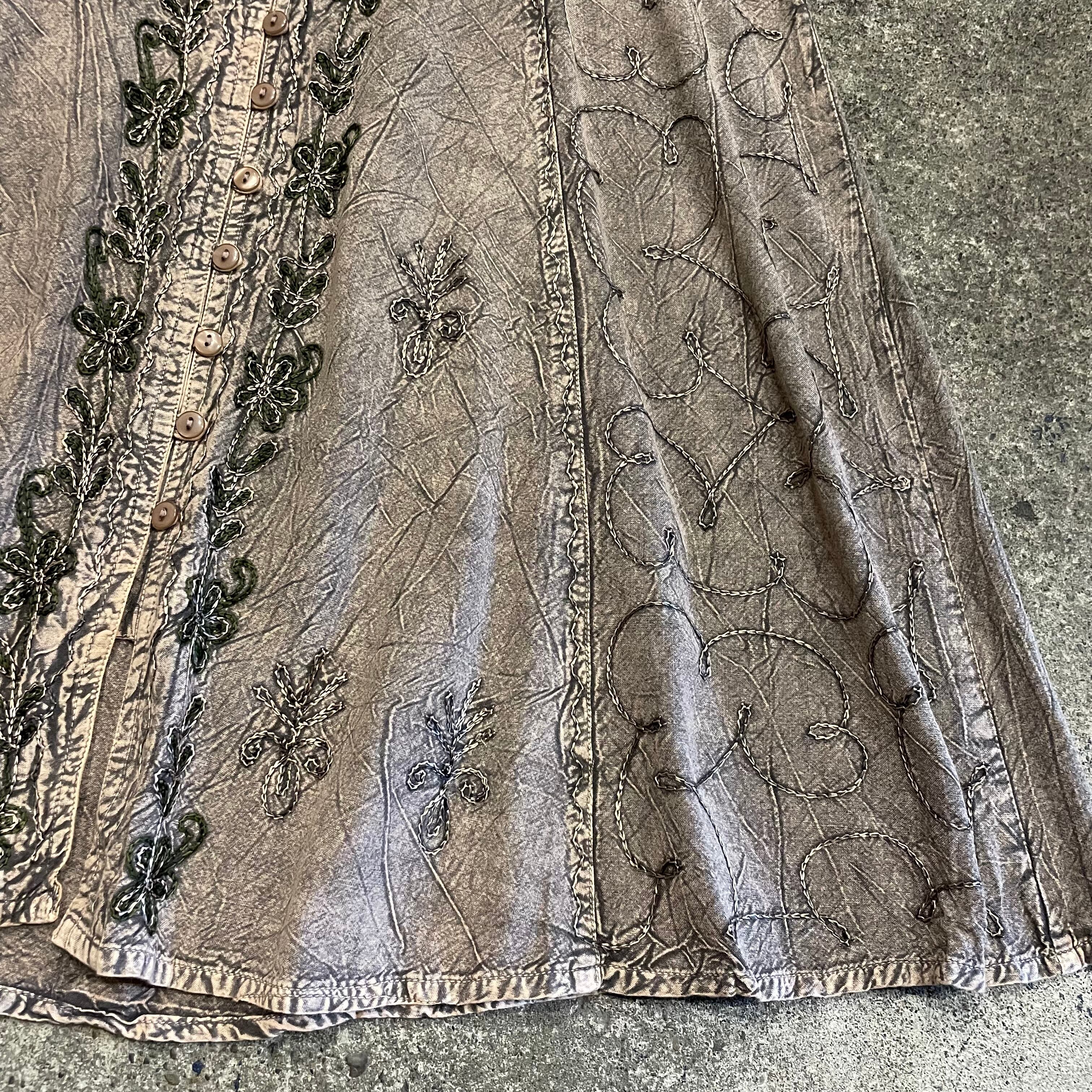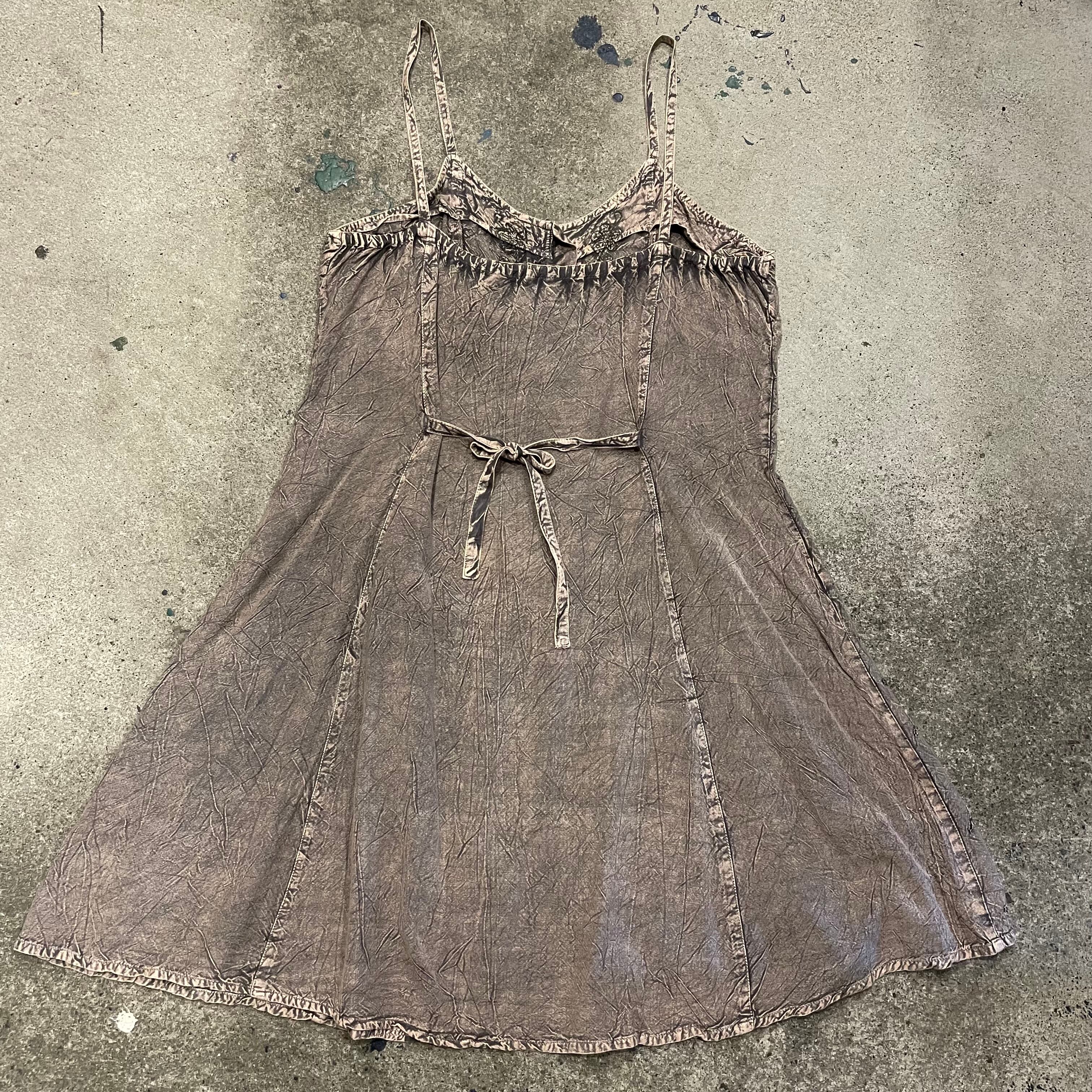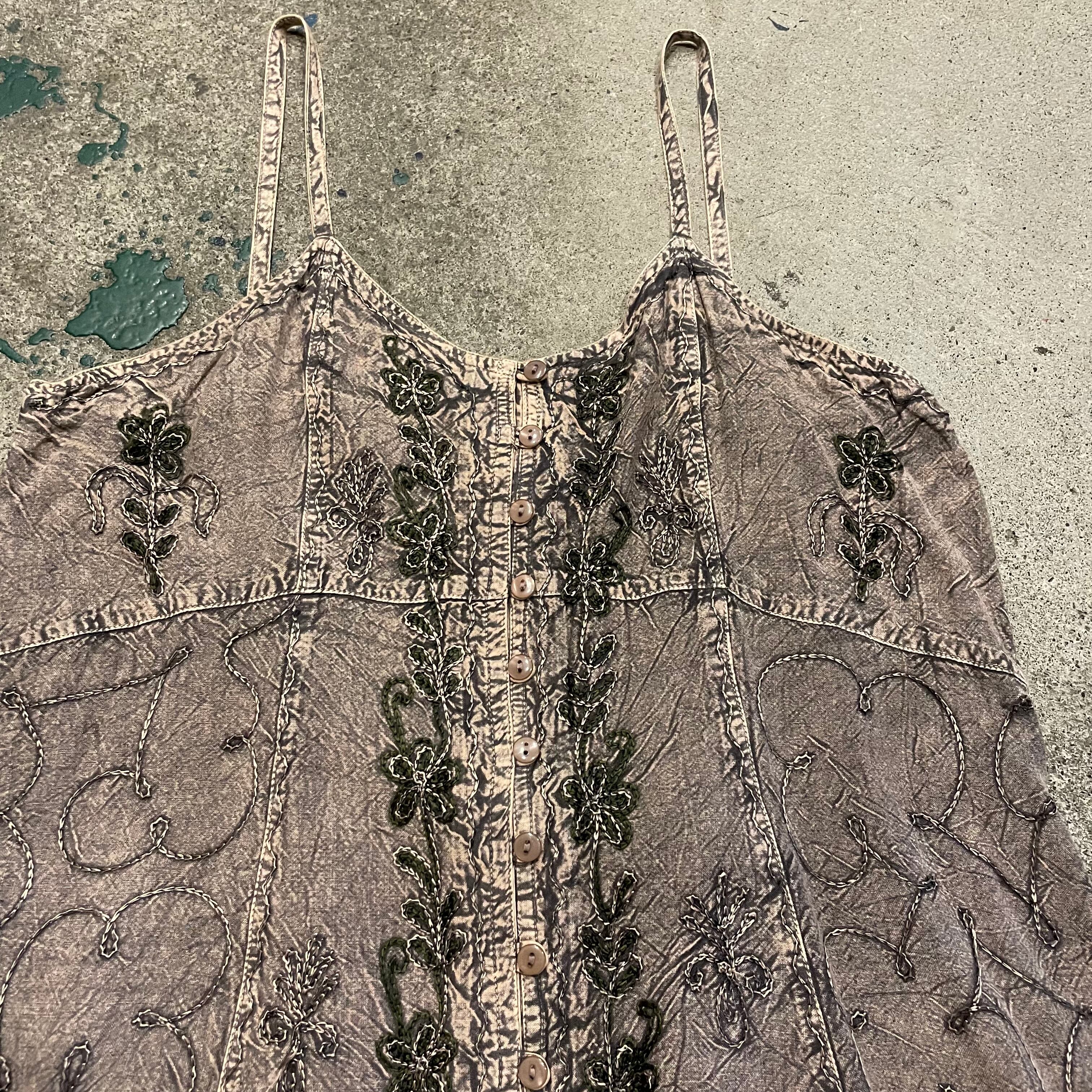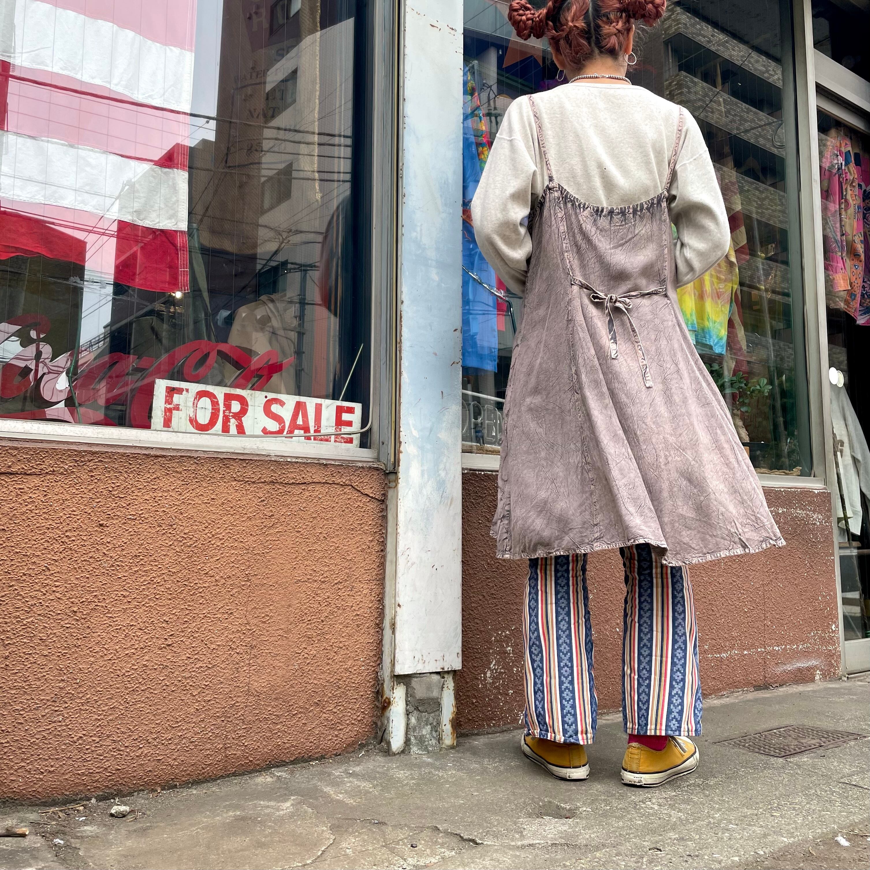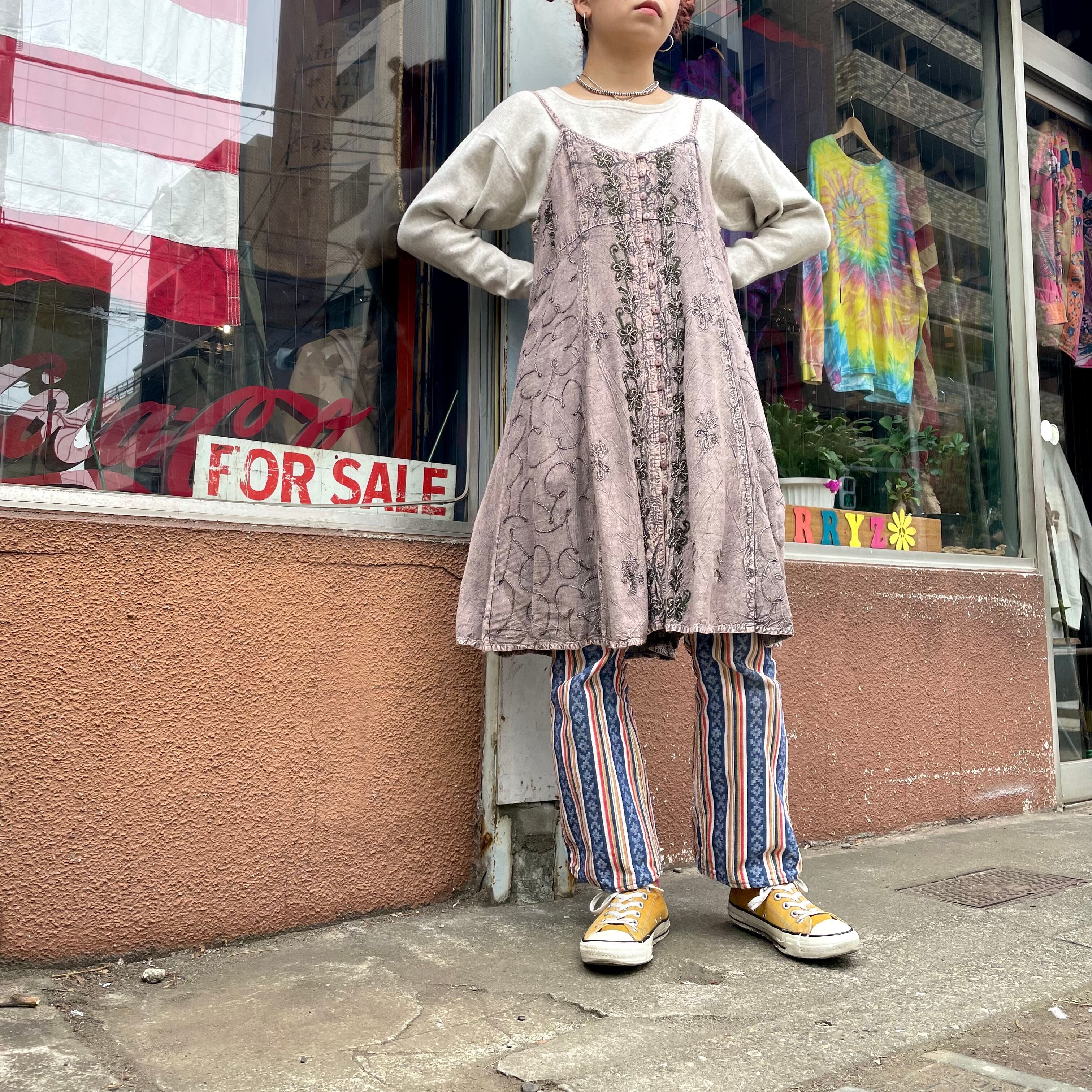 絶妙な色が良い感じのキャミソールワンピースです。程良く刺繍がされていて、細かくボタンが付いていたりさりげなくかわいい一着です。