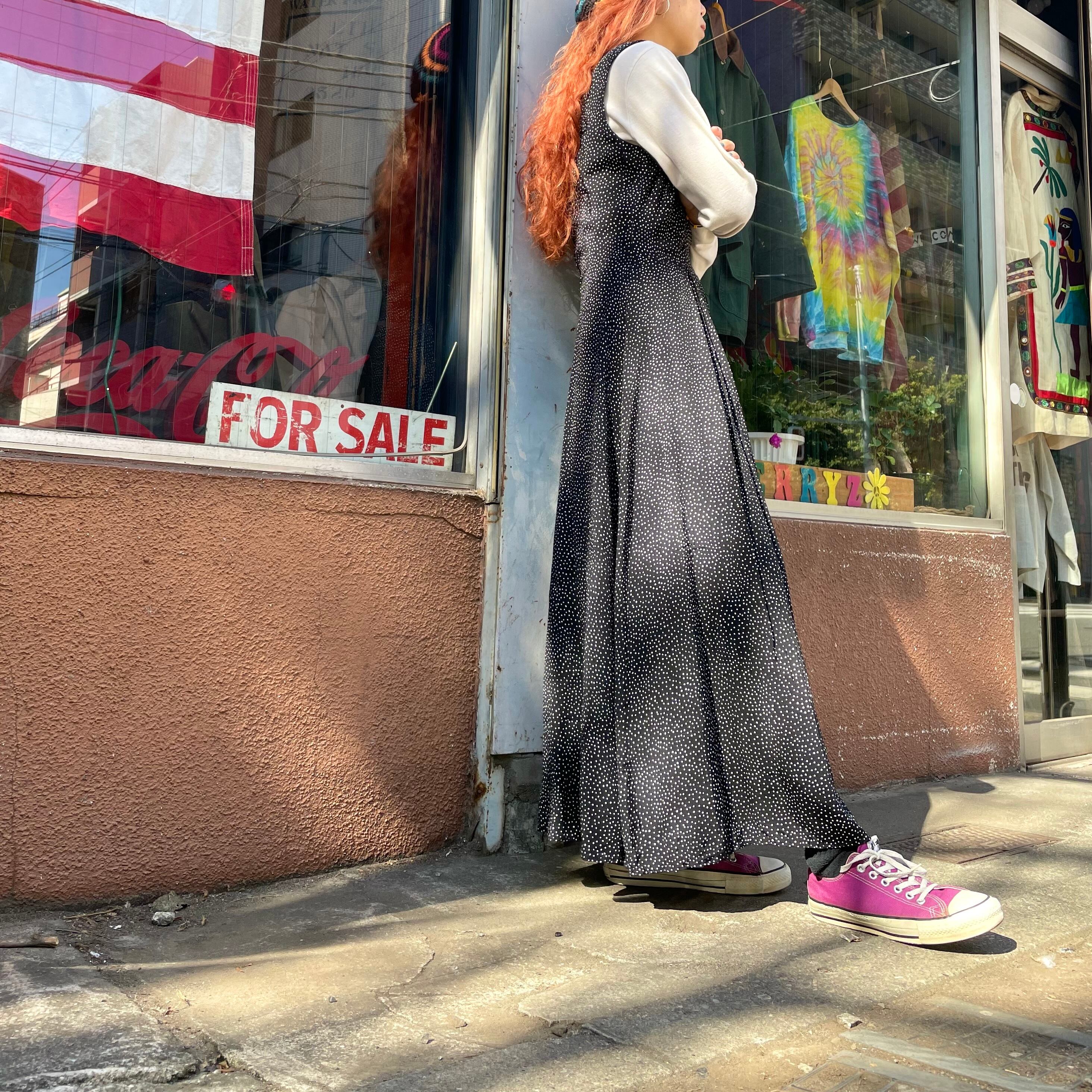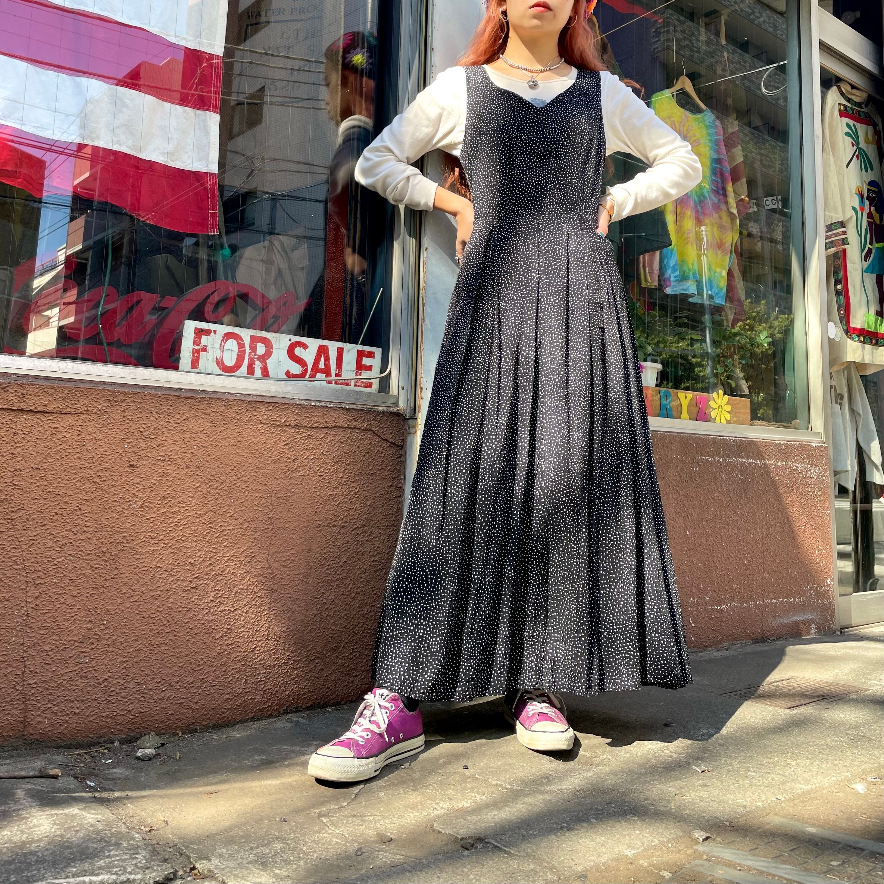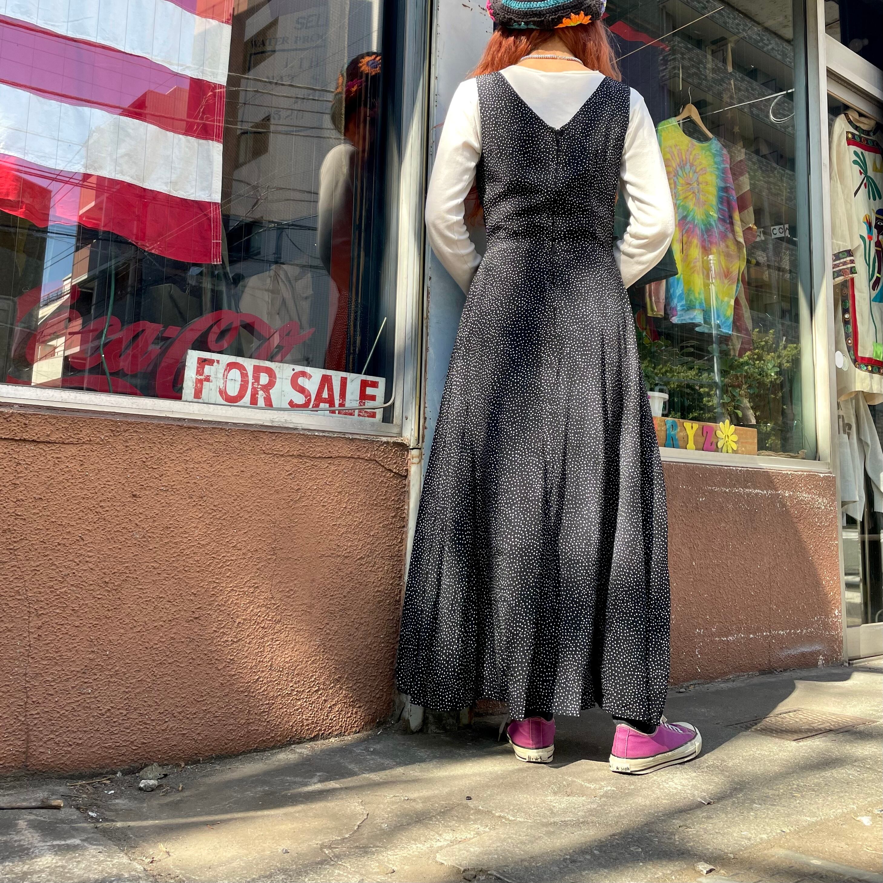 黒地に手書きで描かれたような細かいドットがかわいいワンピースです。