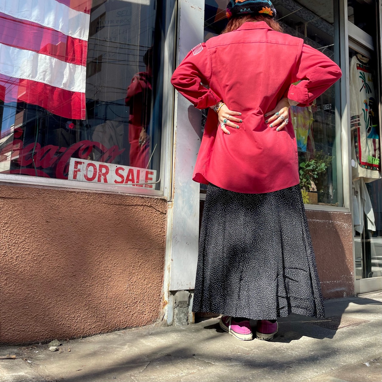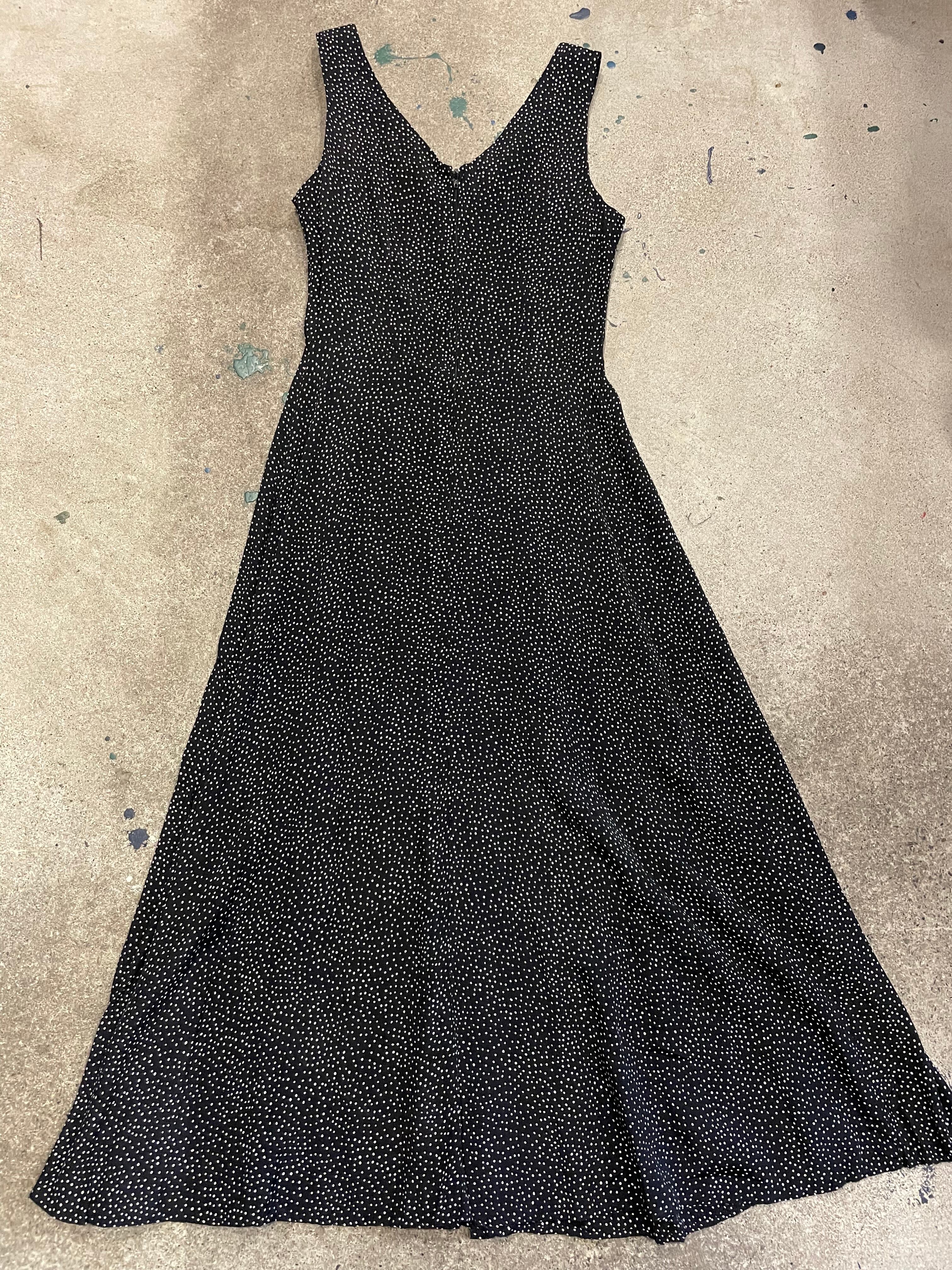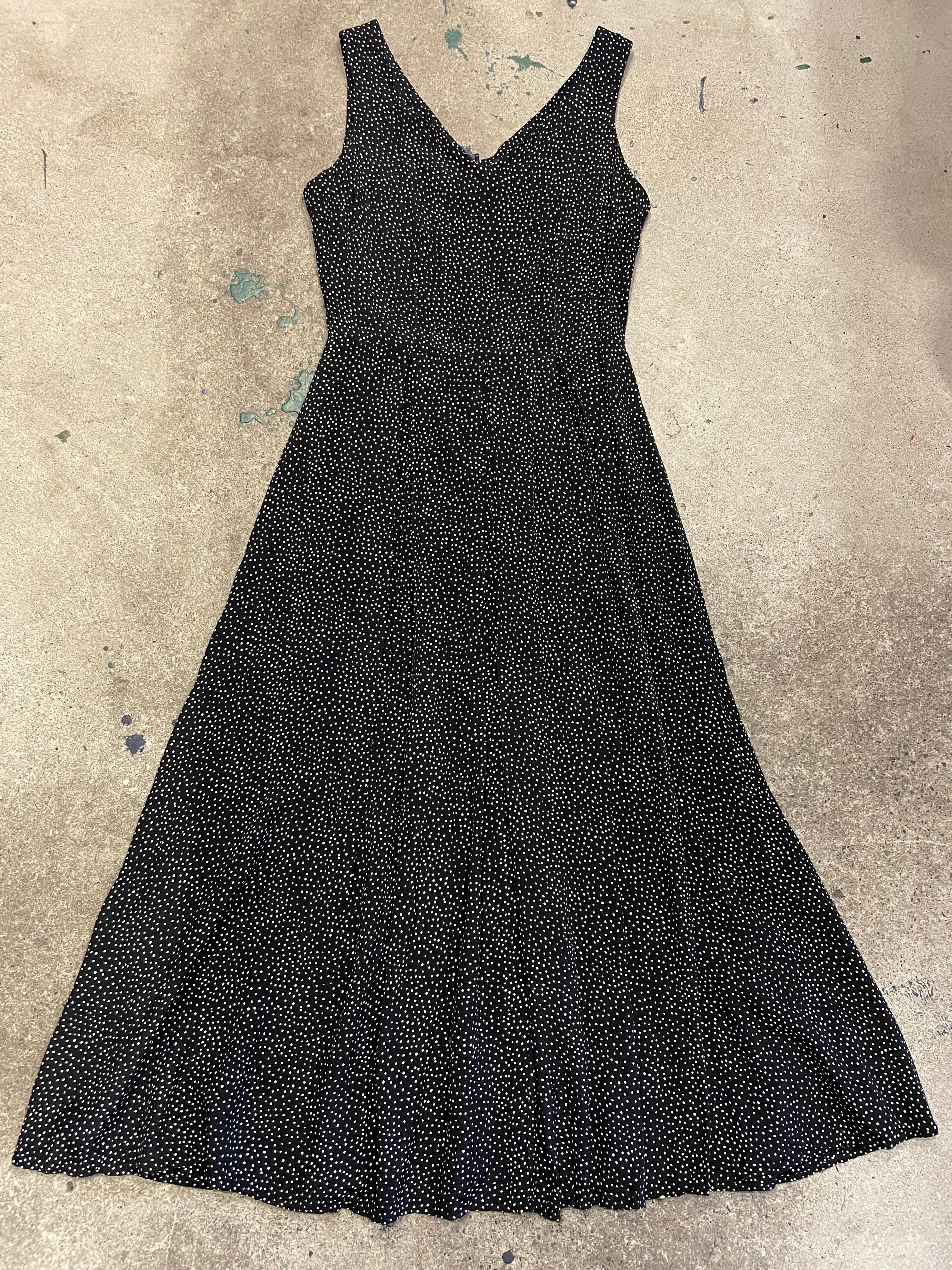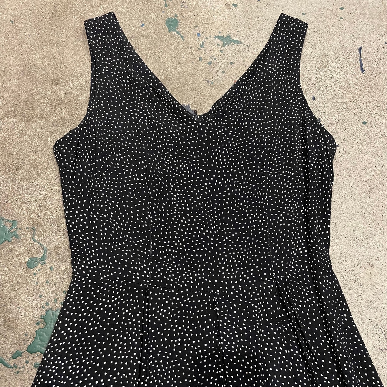 黒地に手書きで描かれたような細かいドットがかわいいワンピースです。