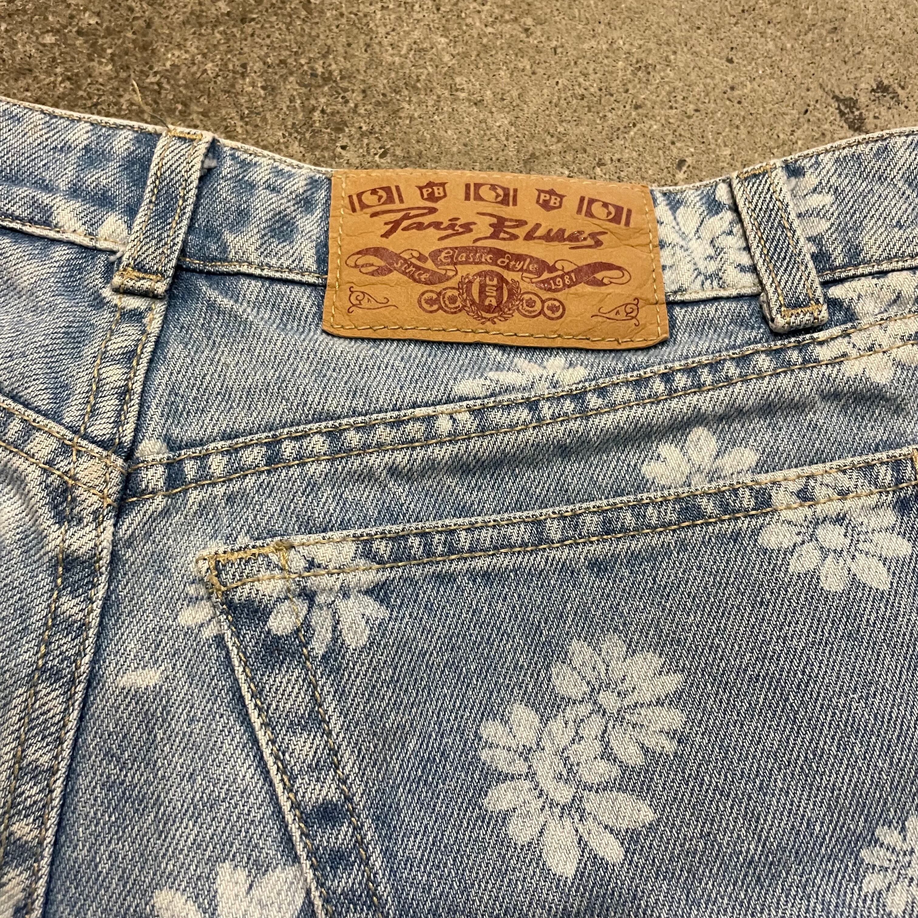 全面に柄が入っていてとてもかわいいですし、裾が広がっていて履きやすいシルエットだと思います。トップスにシンプルなデニムシャツを合わせたり、スウェットやニット、夏はTシャツやキャミソールなどなど一年中お使いいただけておすすめです。