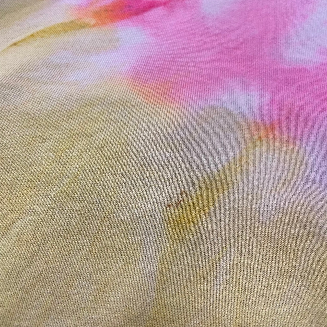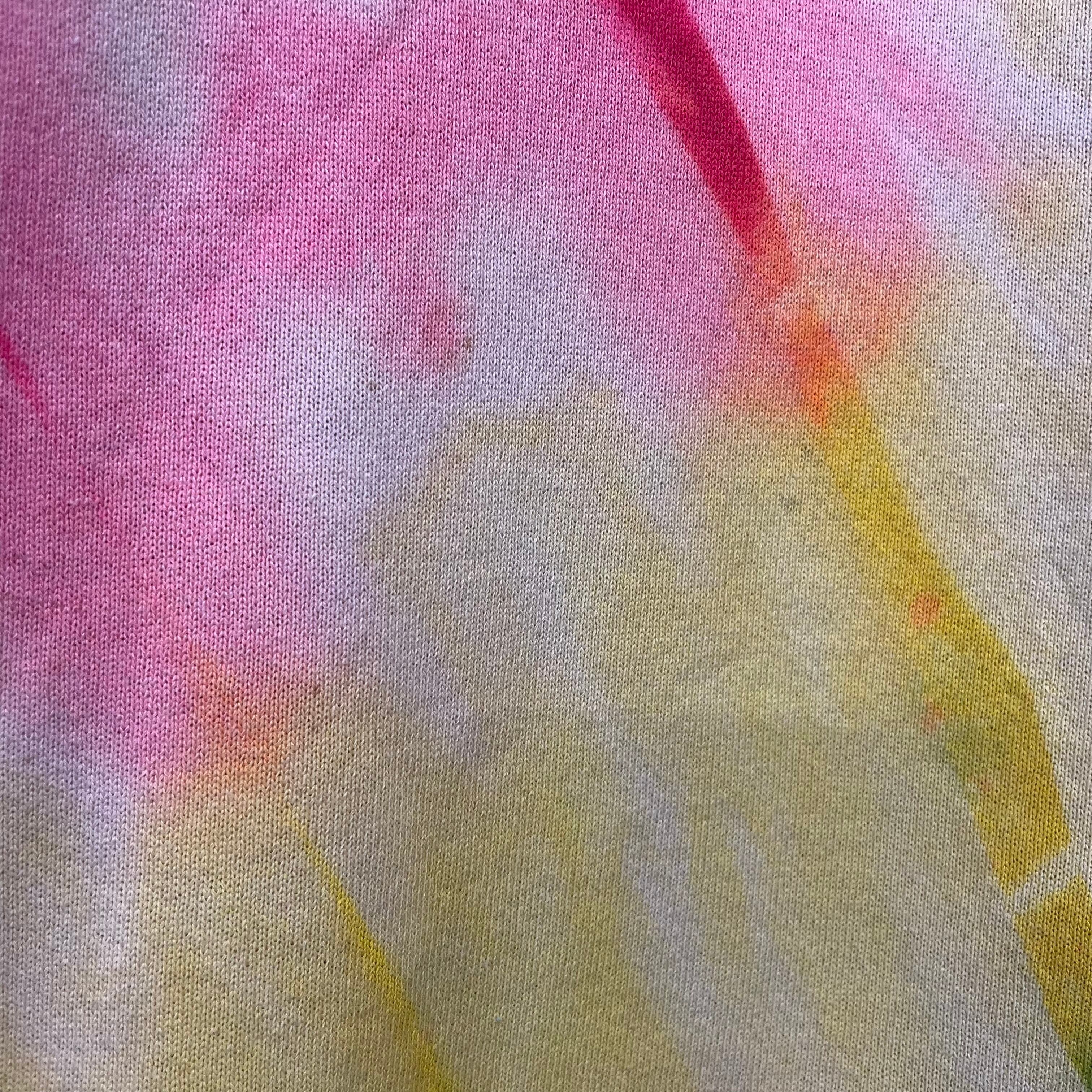 明るめの色合いでザ・タイダイな感じもなく着やすい一着かと思います。