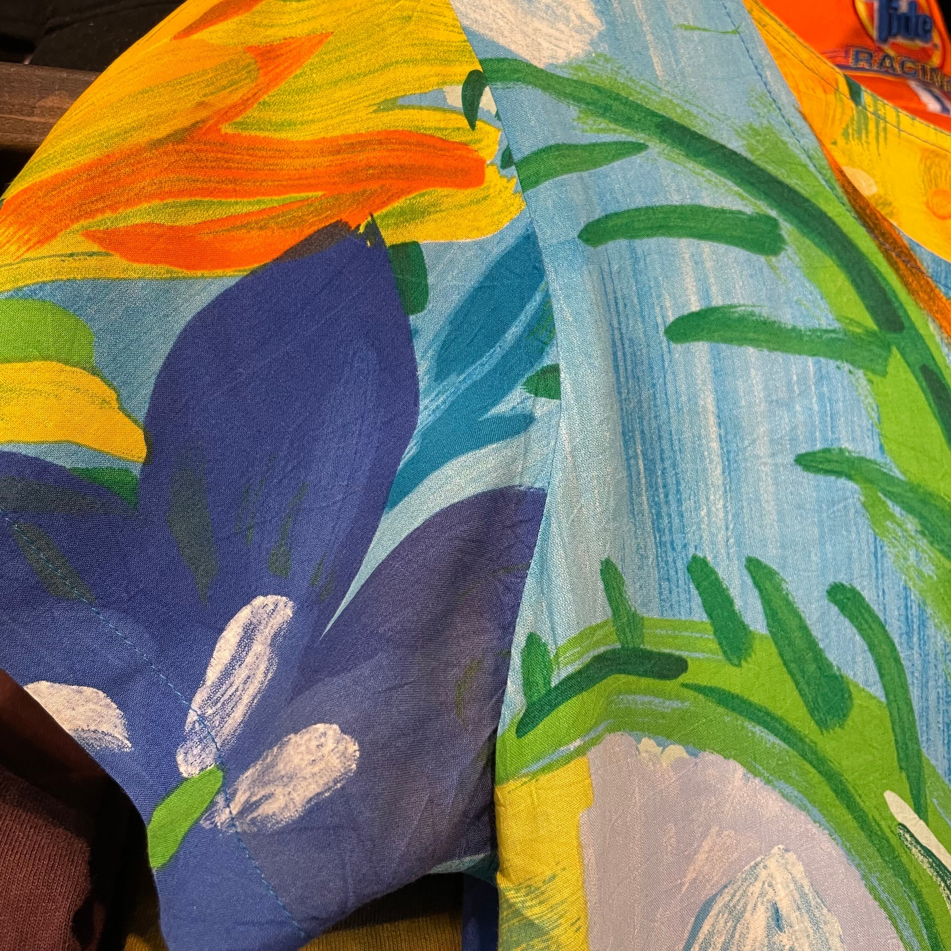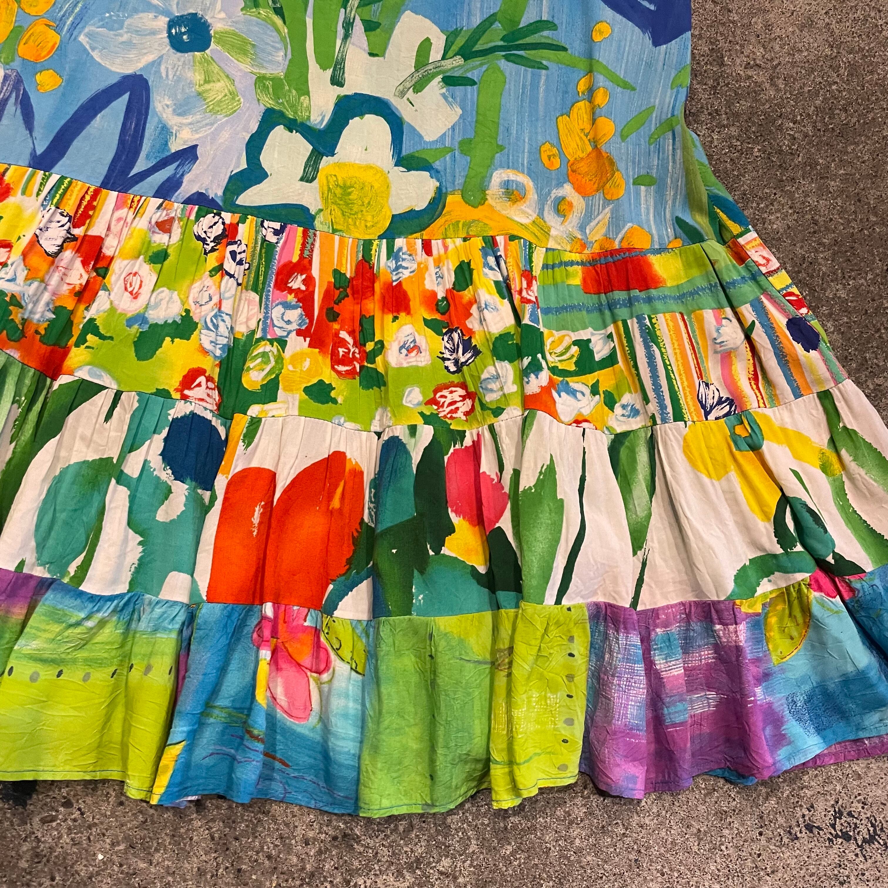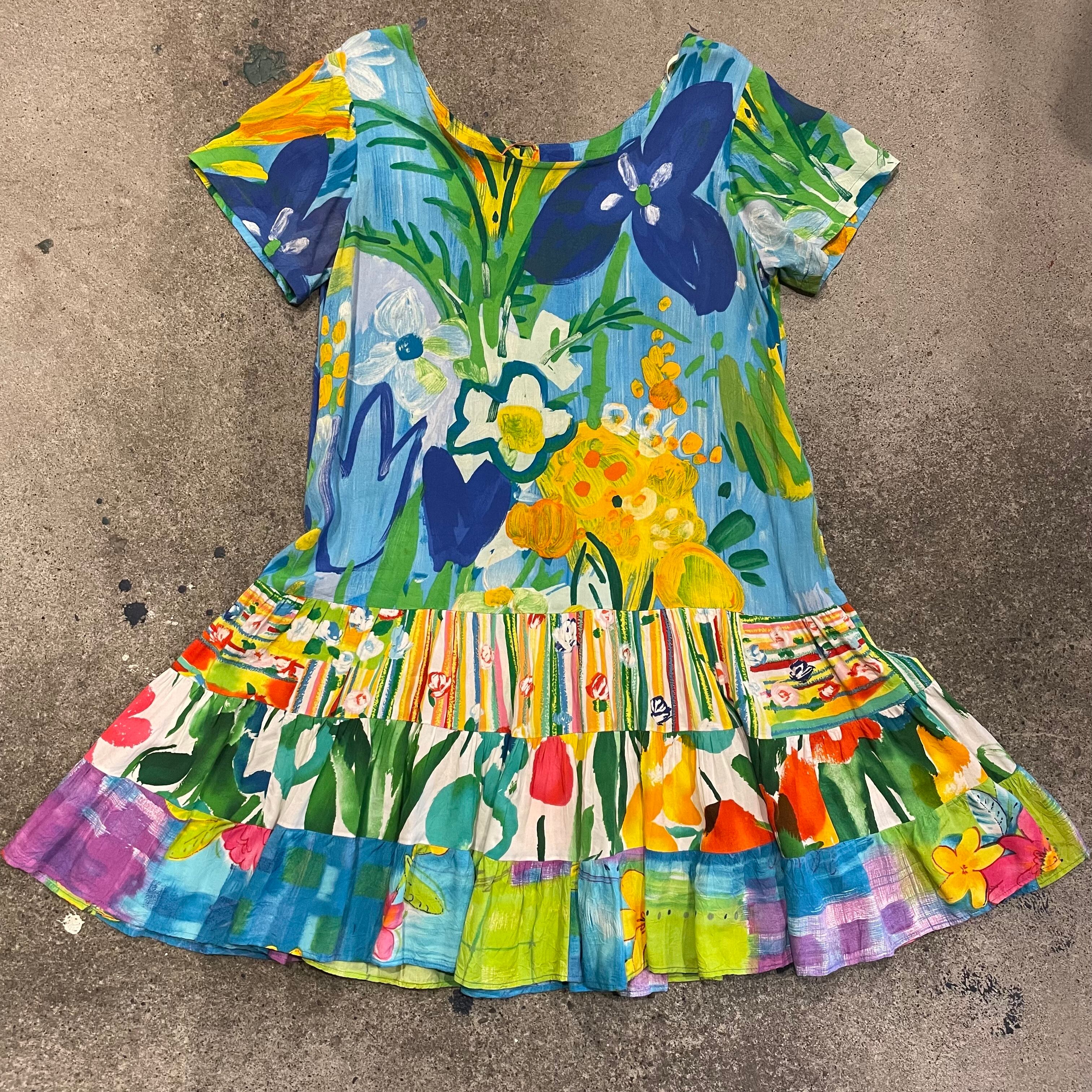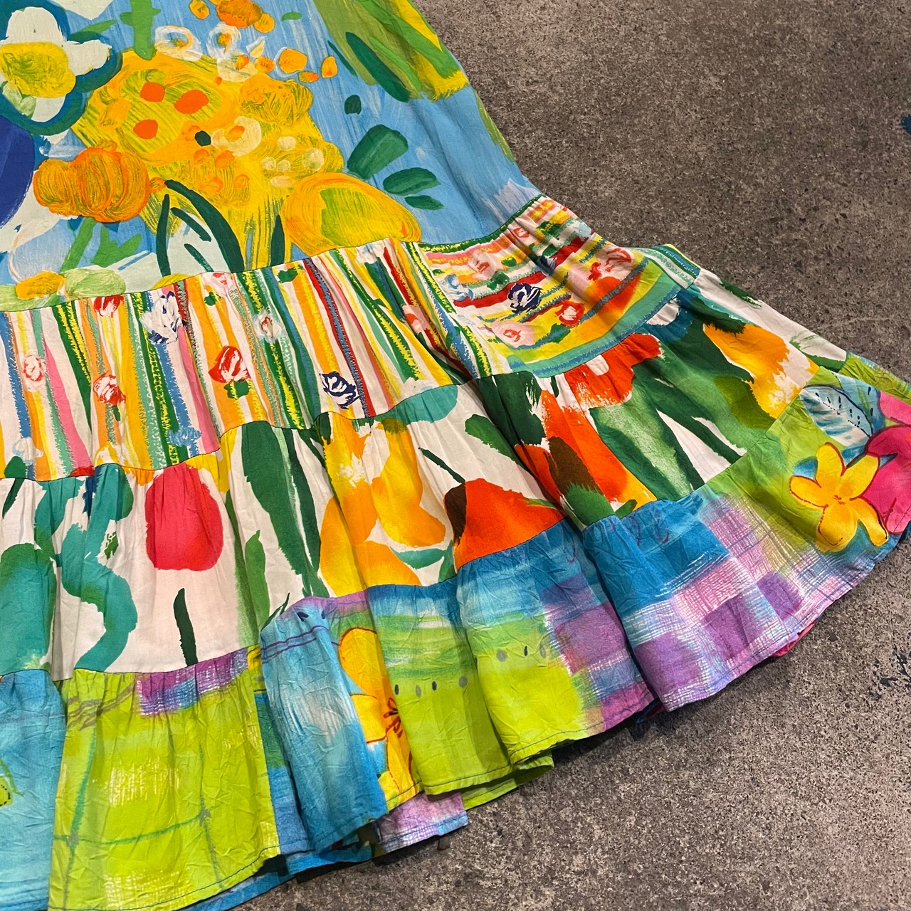 絵の具で描いたような花柄がとてもかわいいワンピースです。
