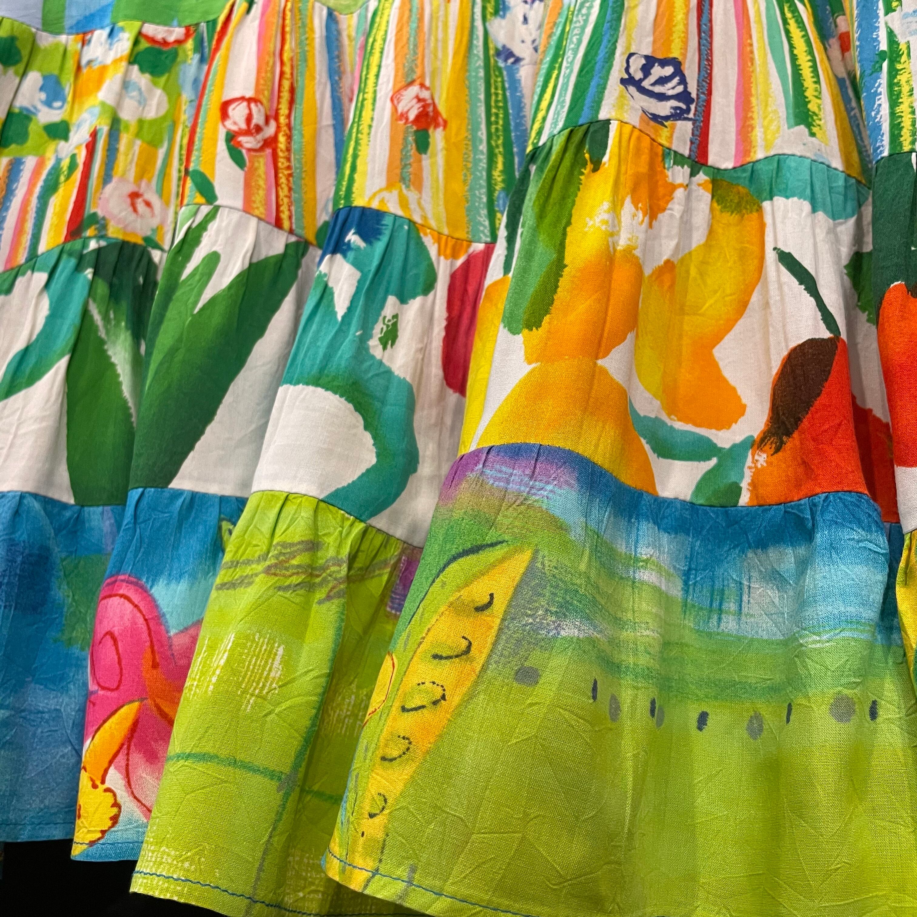 ティアード部分の生地の切り替えもかわいく、全体的に明るい色味がこれからの季節にぴったりですし、ゆったりな身幅に短めの丈感のバランスが良い感じです。