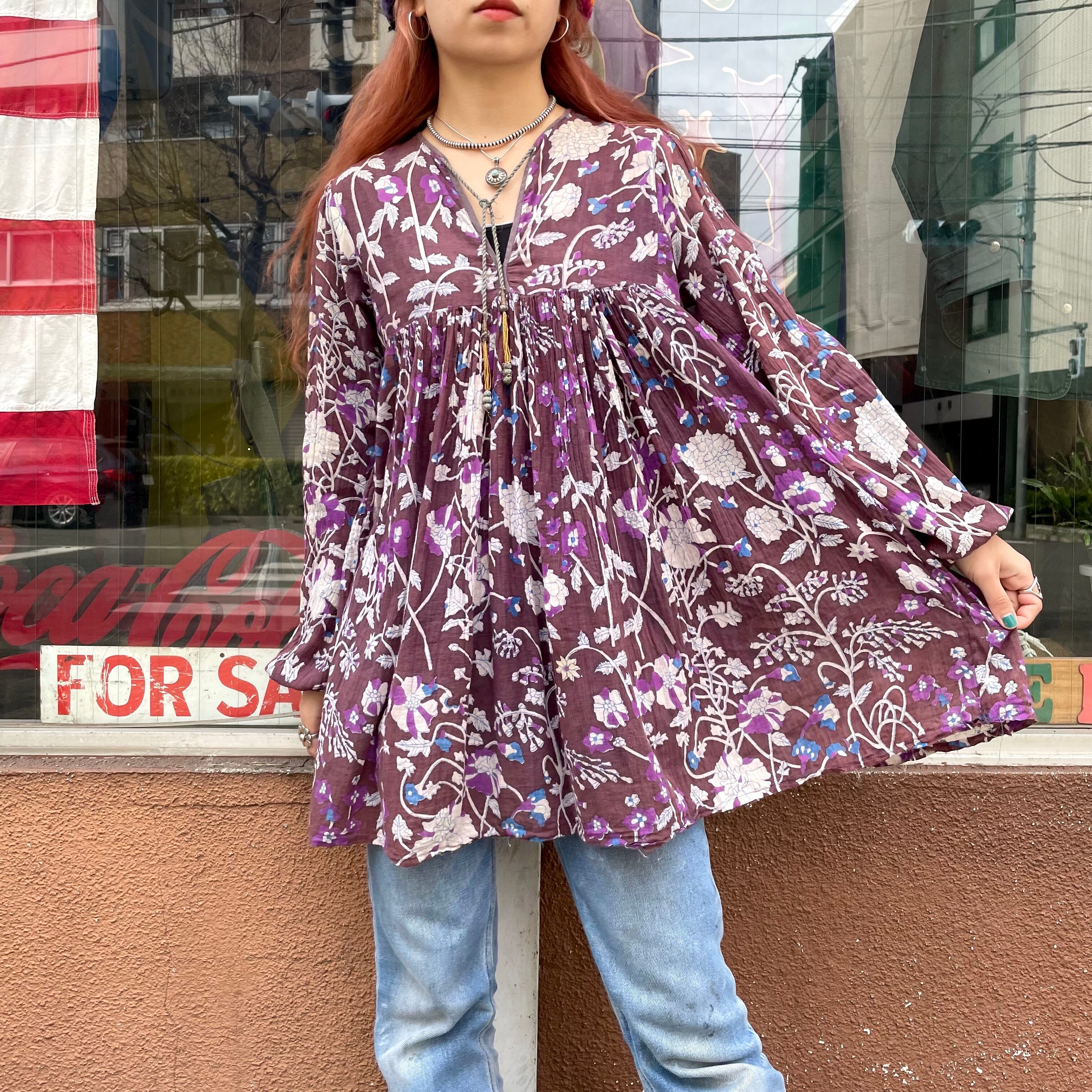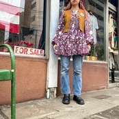 繊細な素材と素敵な花柄、ふわっとしたシルエットがとてもかわいい一着です。このチュニックのようなミニ丈が逆に新鮮で、パンツを重ねても夏はデニムショーツと合わせてもかわいいと思います。