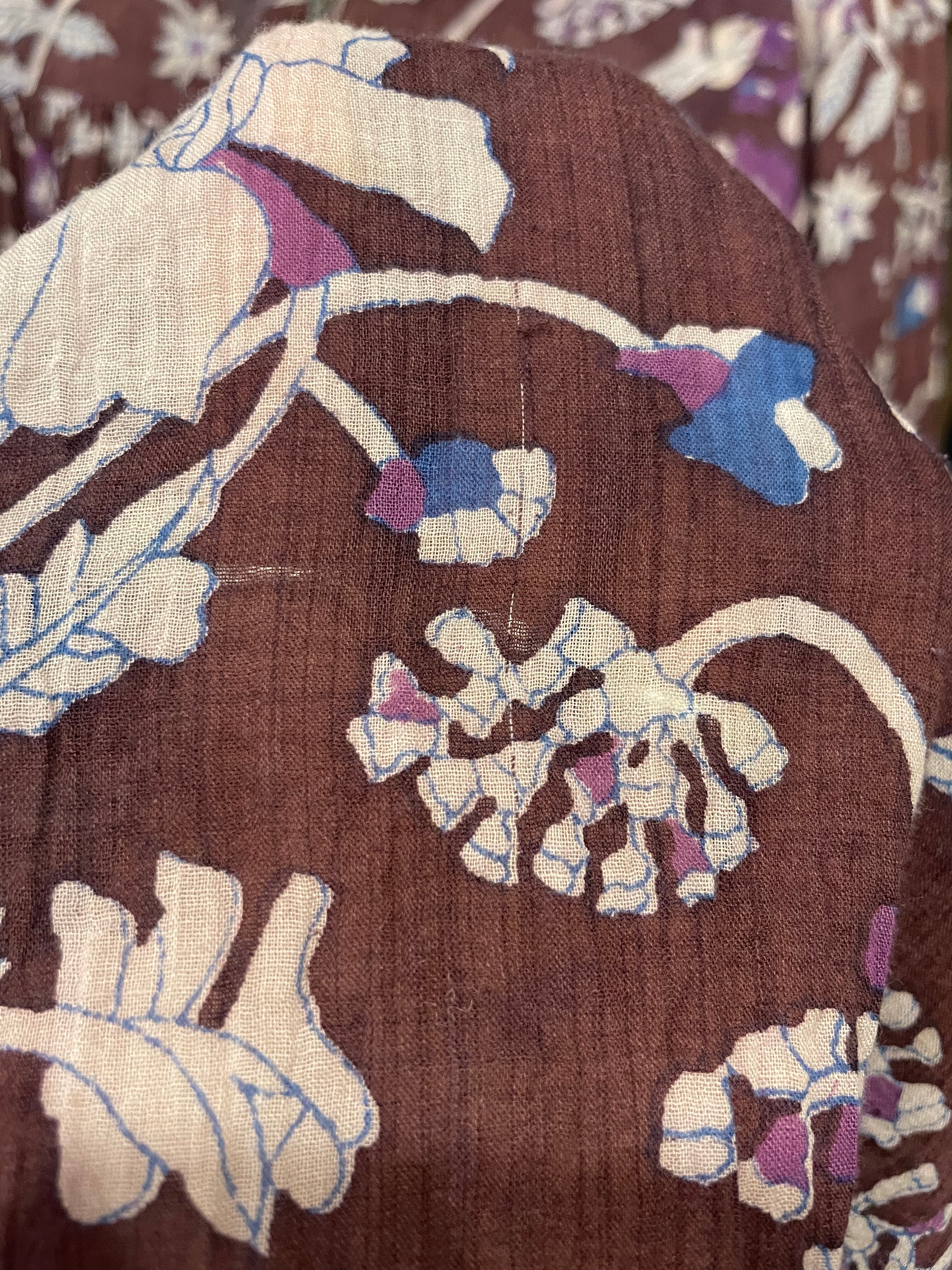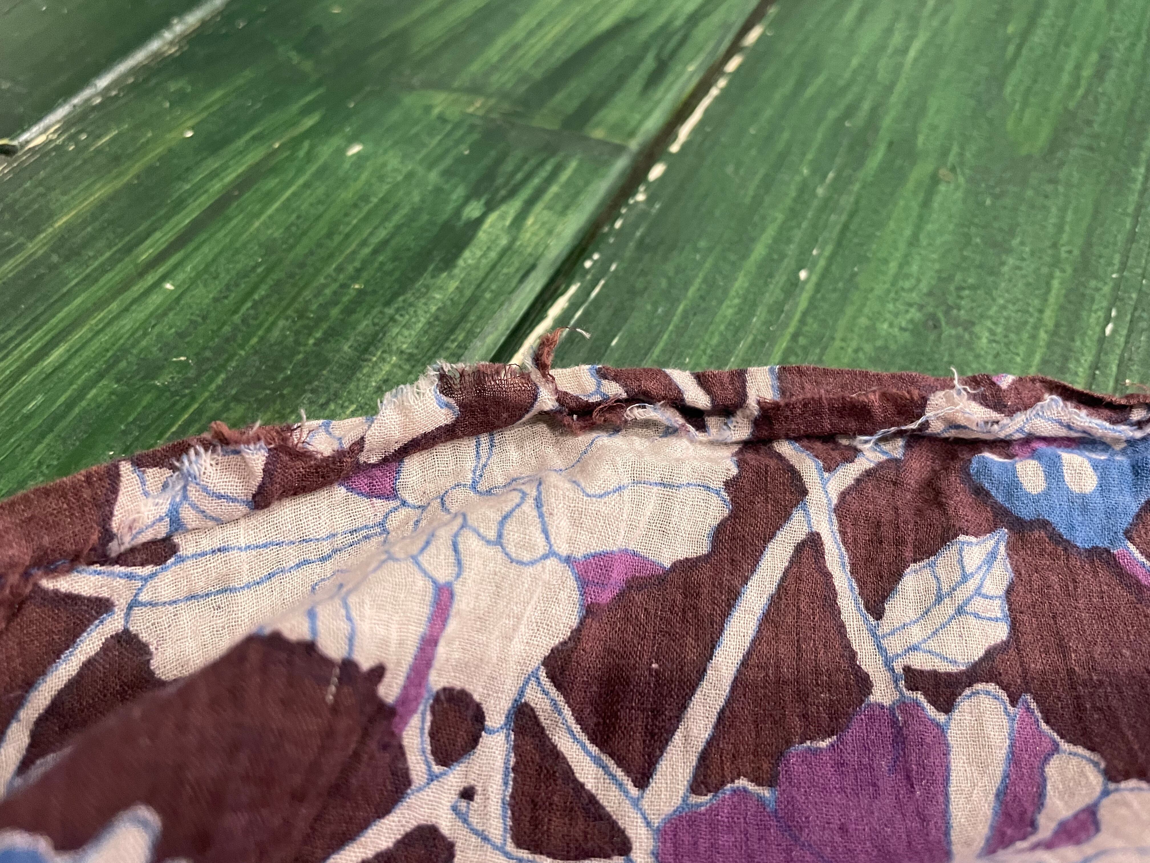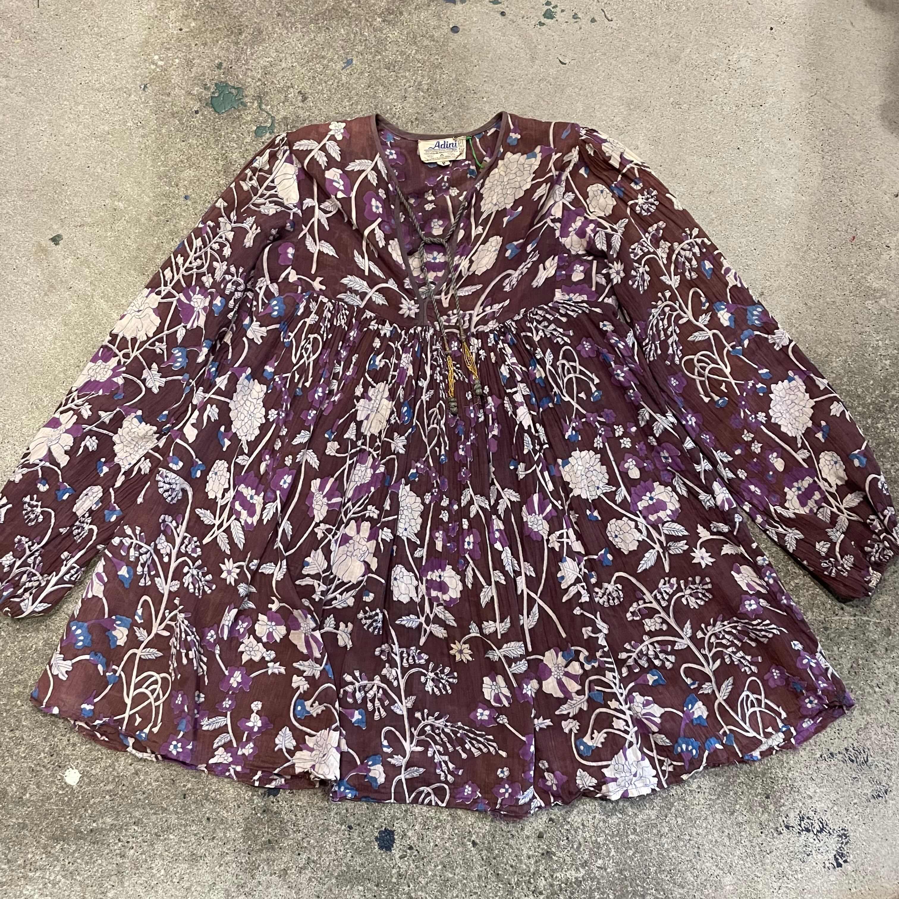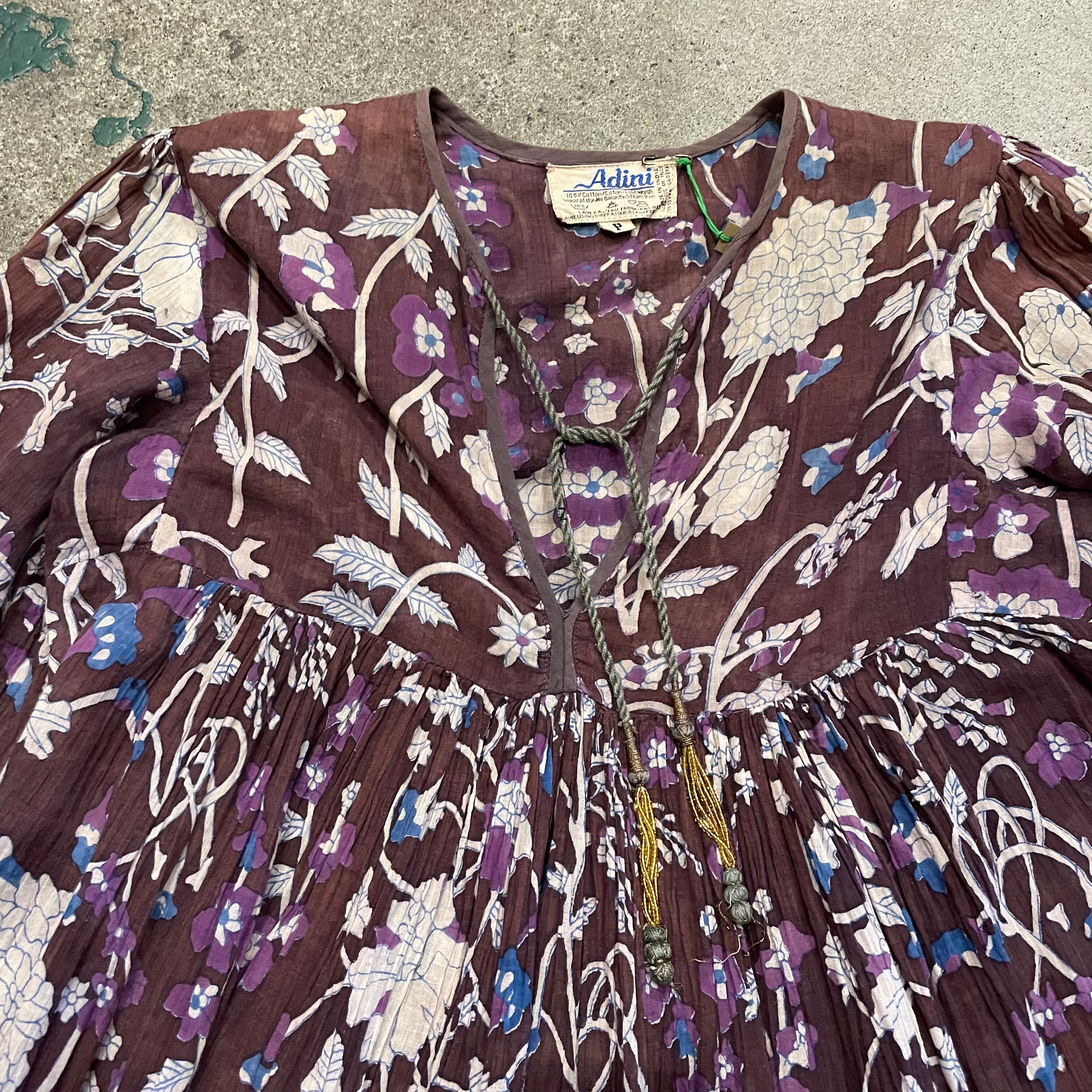 インド綿ワンピースの中では有名な"Adini"というブランドのもので、おそらく裾が短くカットされたものになります。
