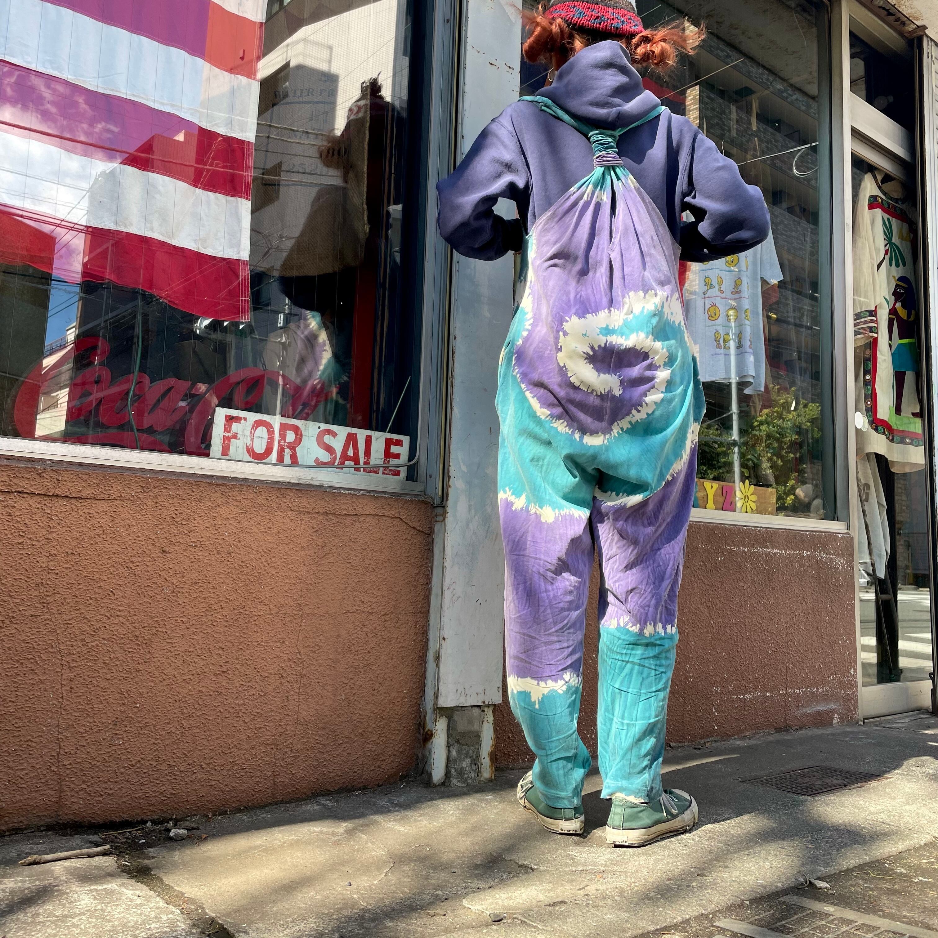 渦巻き模様のタイダイ染めがとてもかわいいジャンプスーツです。