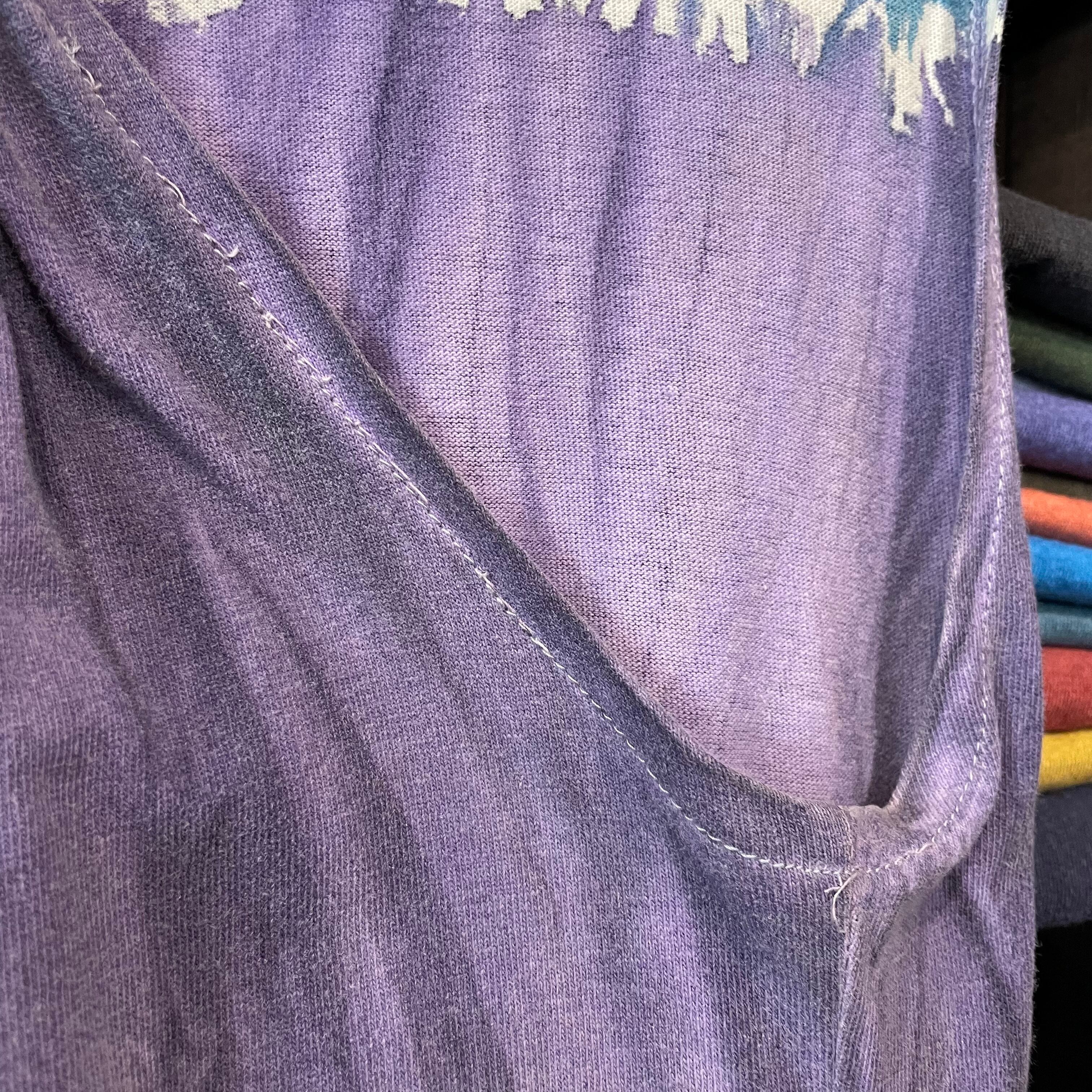 紫×ターコイズの色味もかっこいいですし、とても動きやすく楽ちんでおすすめの一着です。春はロンTやスウェットと合わせたり、夏はTシャツやタンクトップと合わせてお楽しみください。