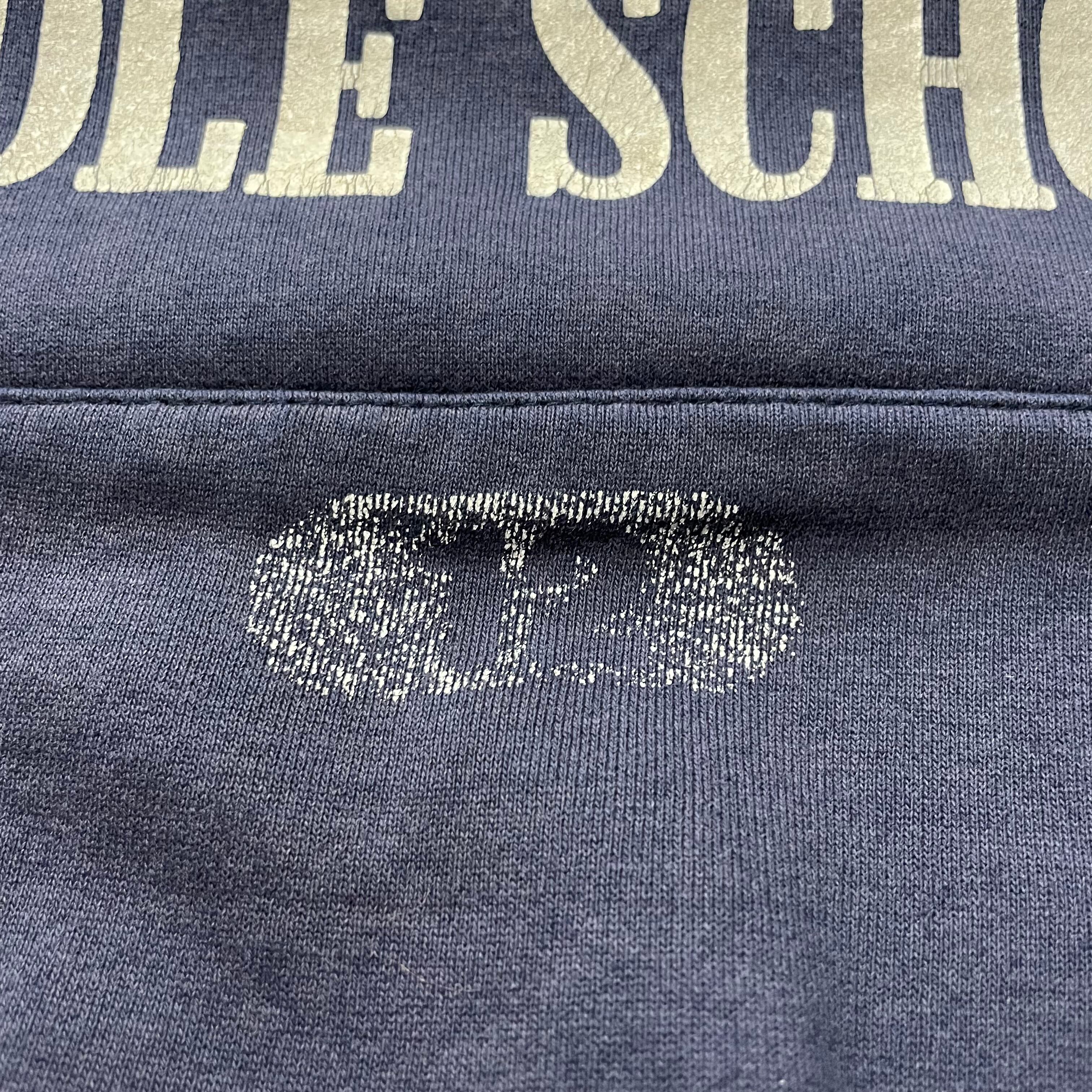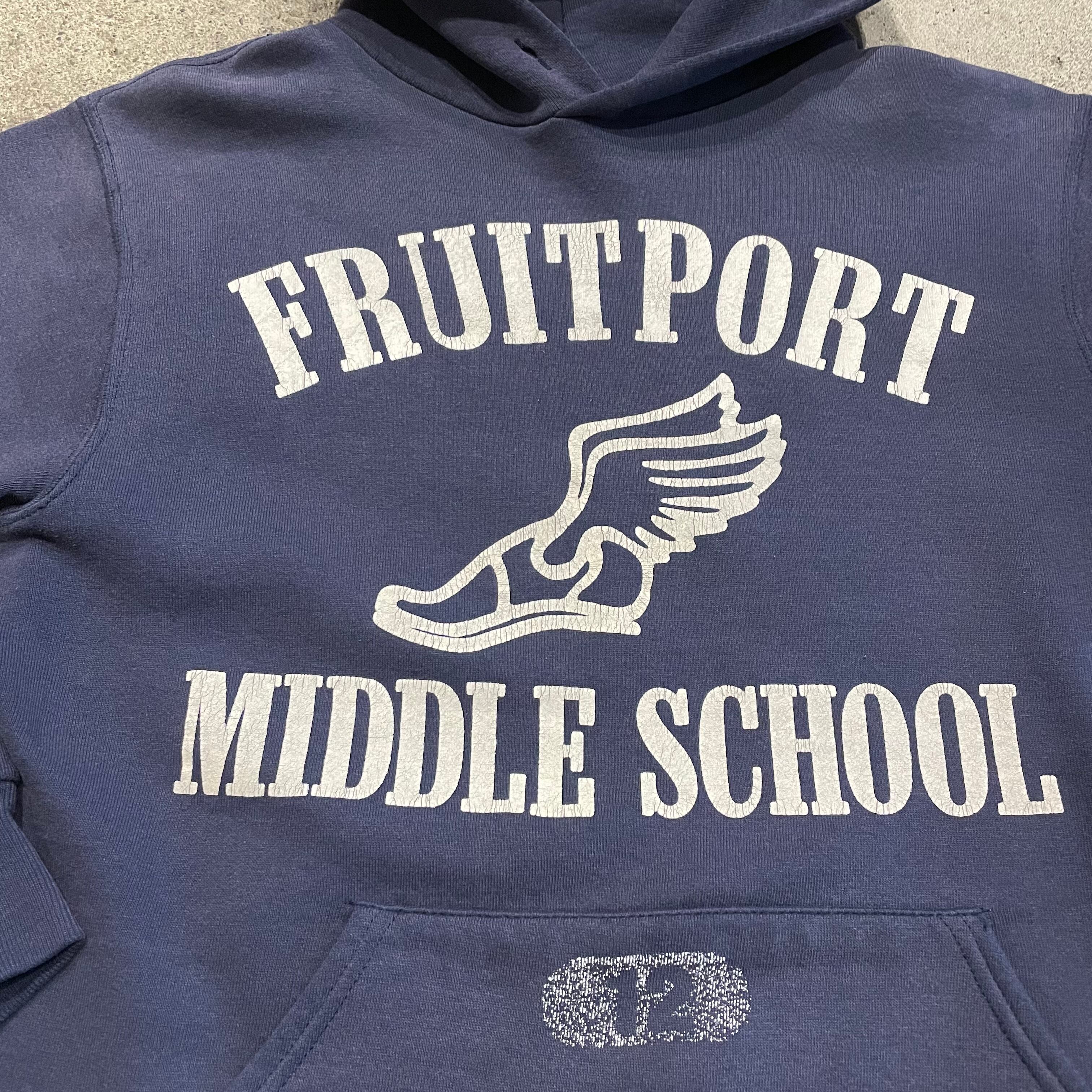アメリカのミシガン州にある中学校のプリントパーカーです。ネイビーで割とコンパクトめなサイズ感がとても使いやすそうな一着です。