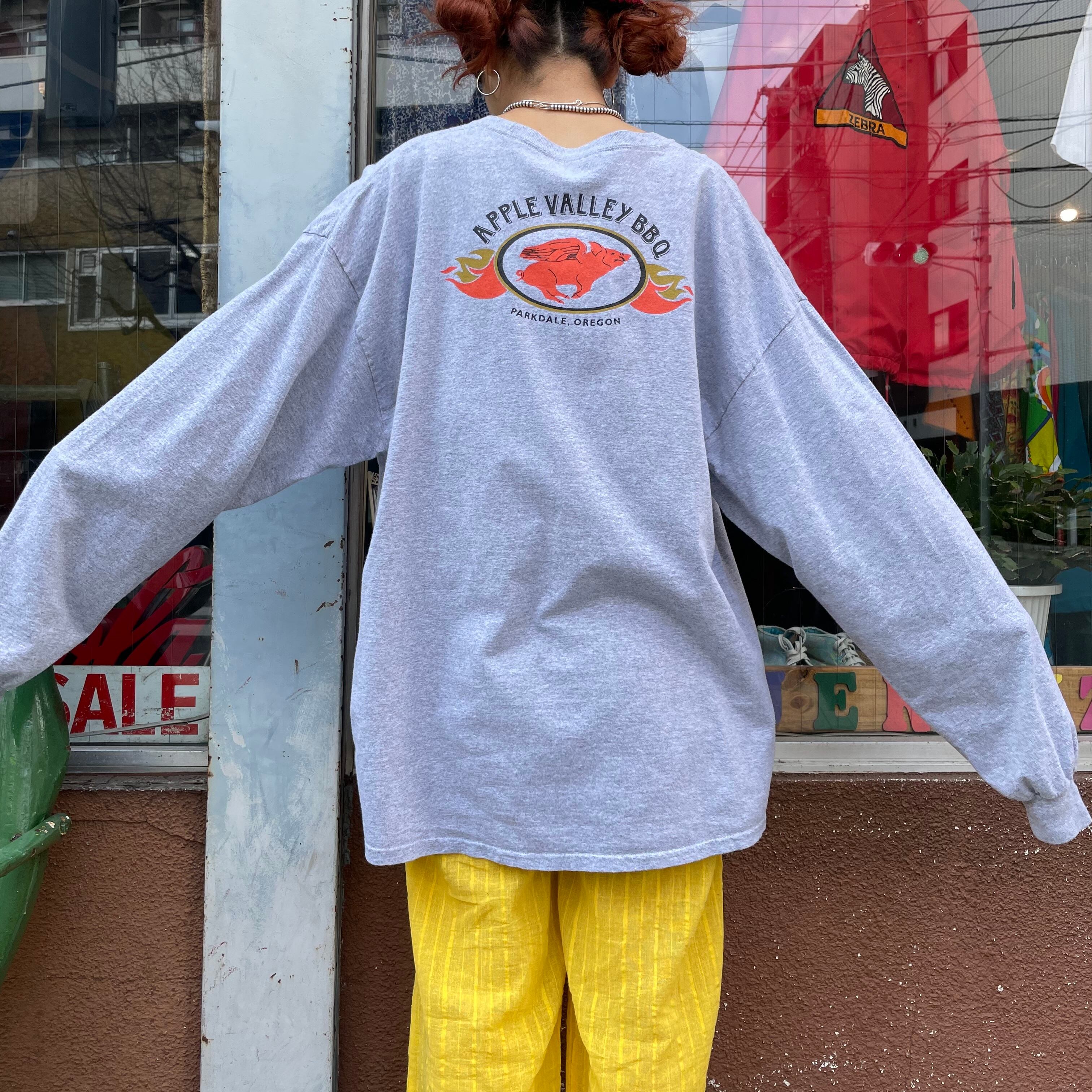 ブタのロゴデザインがかわいいBBQのお店のロンTです。