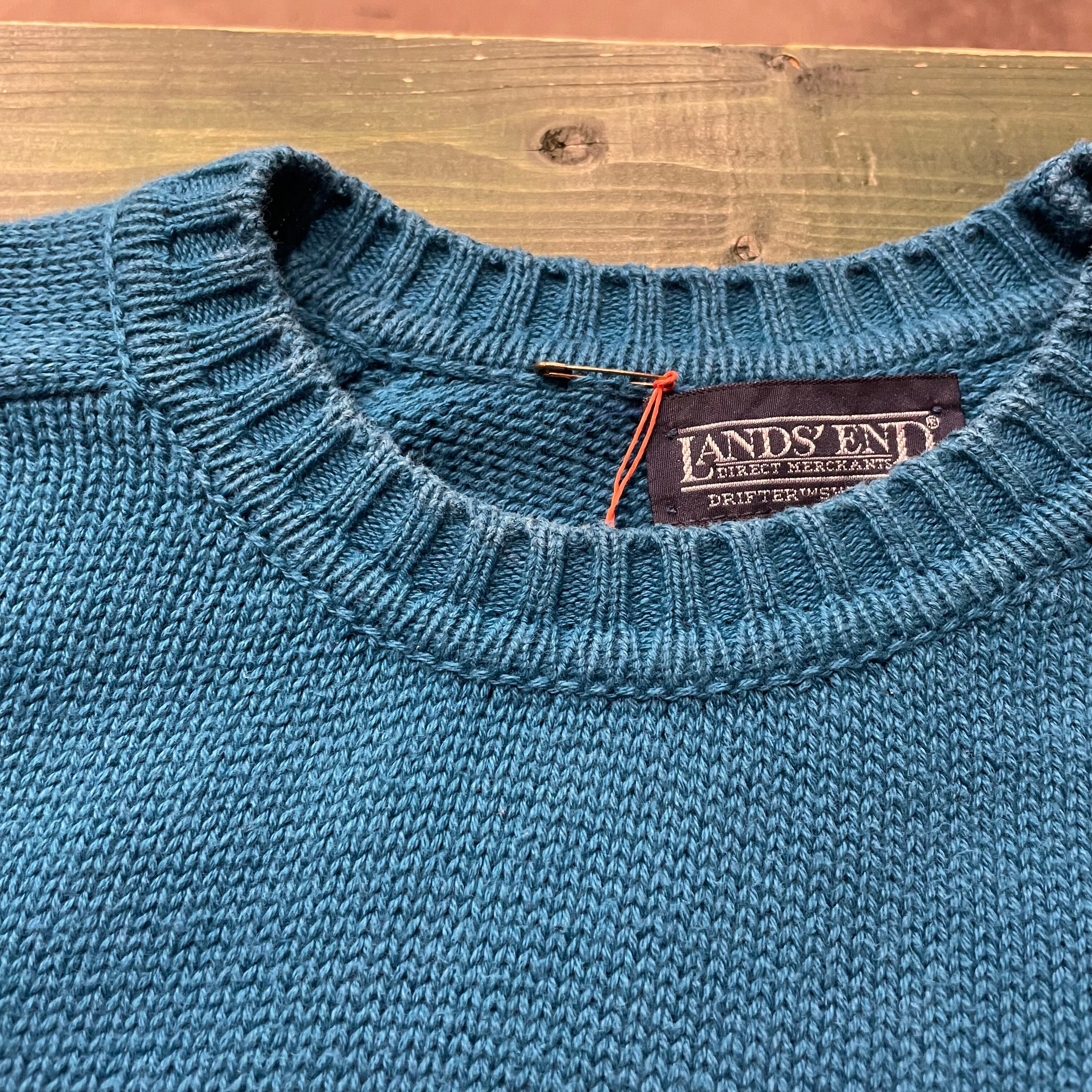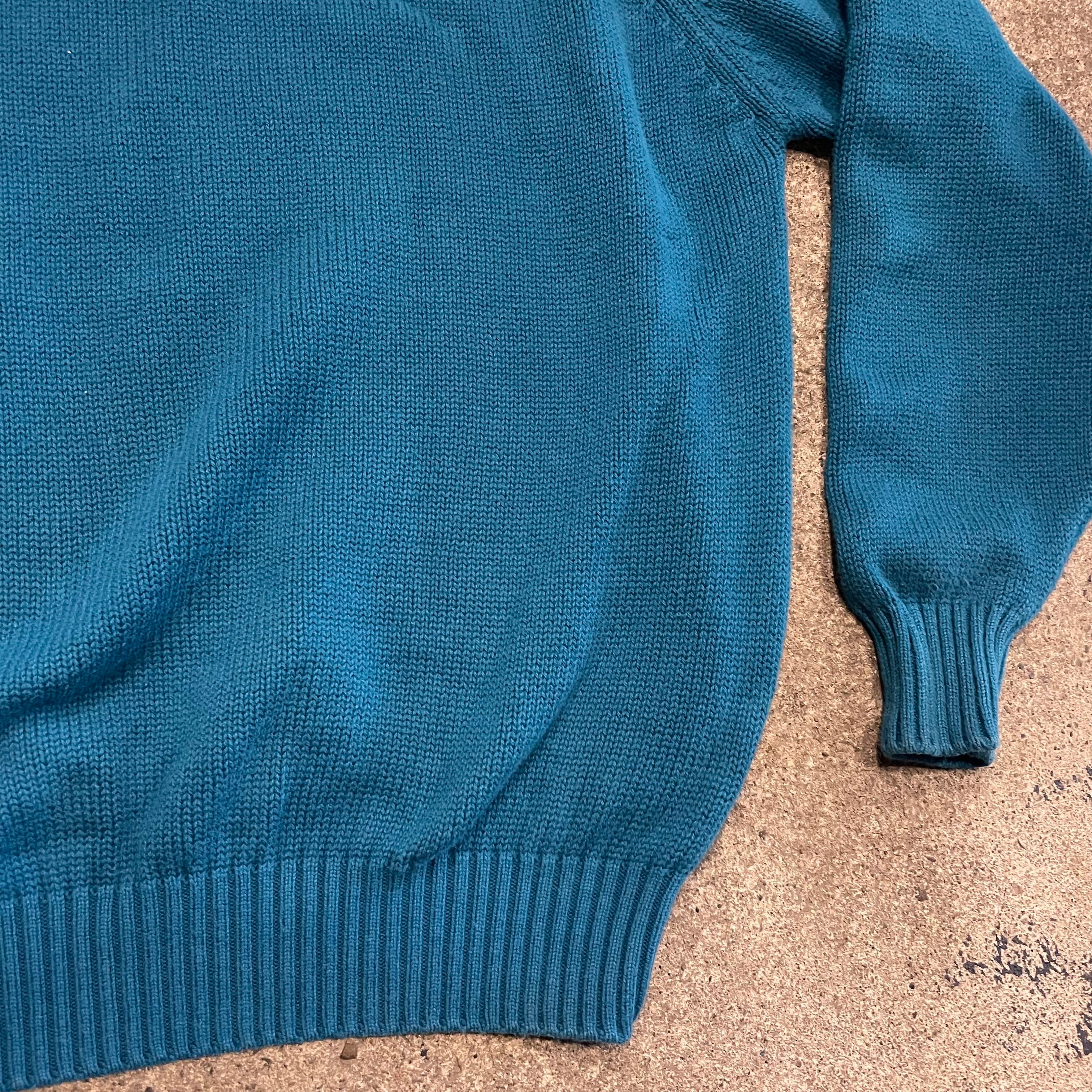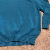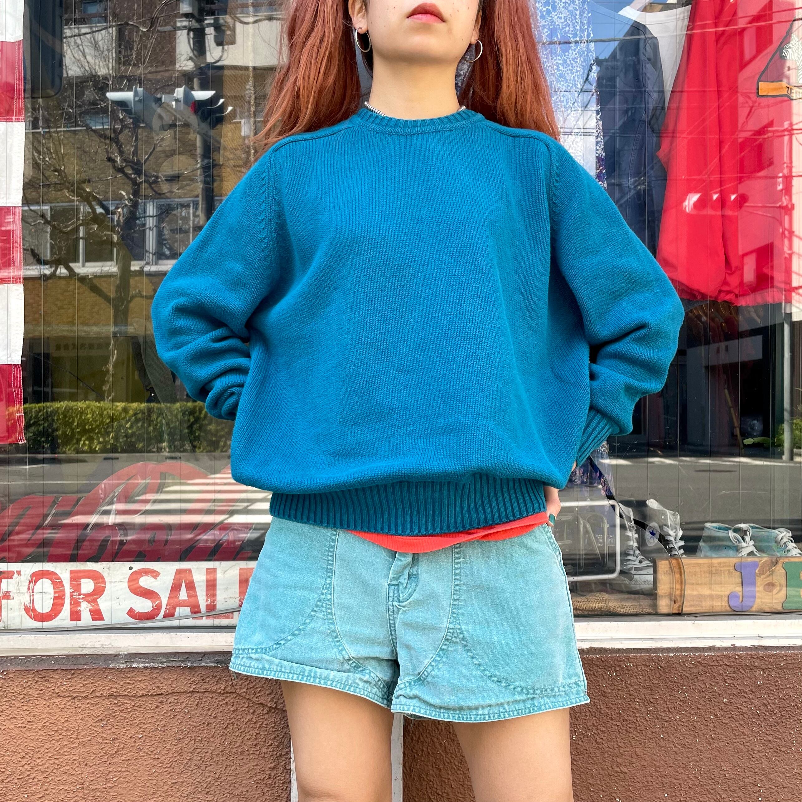 90年代USA製"LAND'S END" のコットンニットです。濃いめのターコイズブルーがとても良い色で、しっかり厚みはありますが柔らかい生地感で着心地の良い一着です。