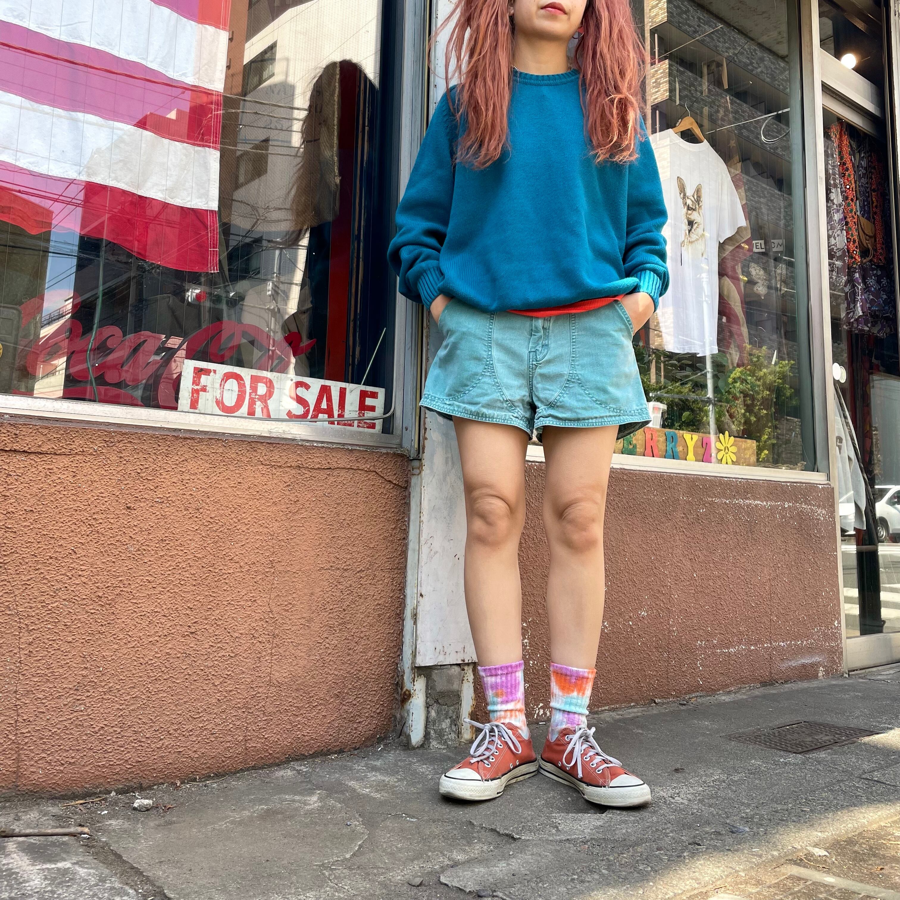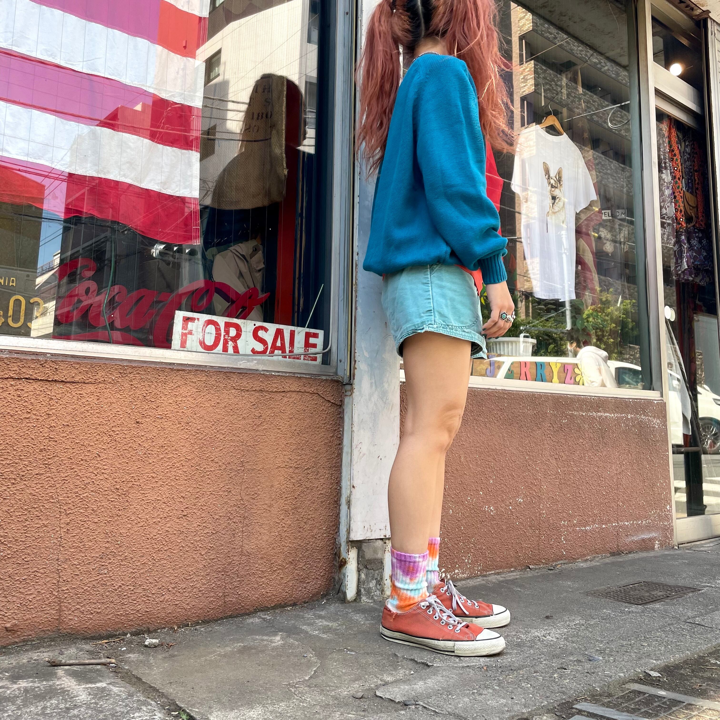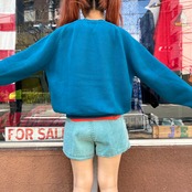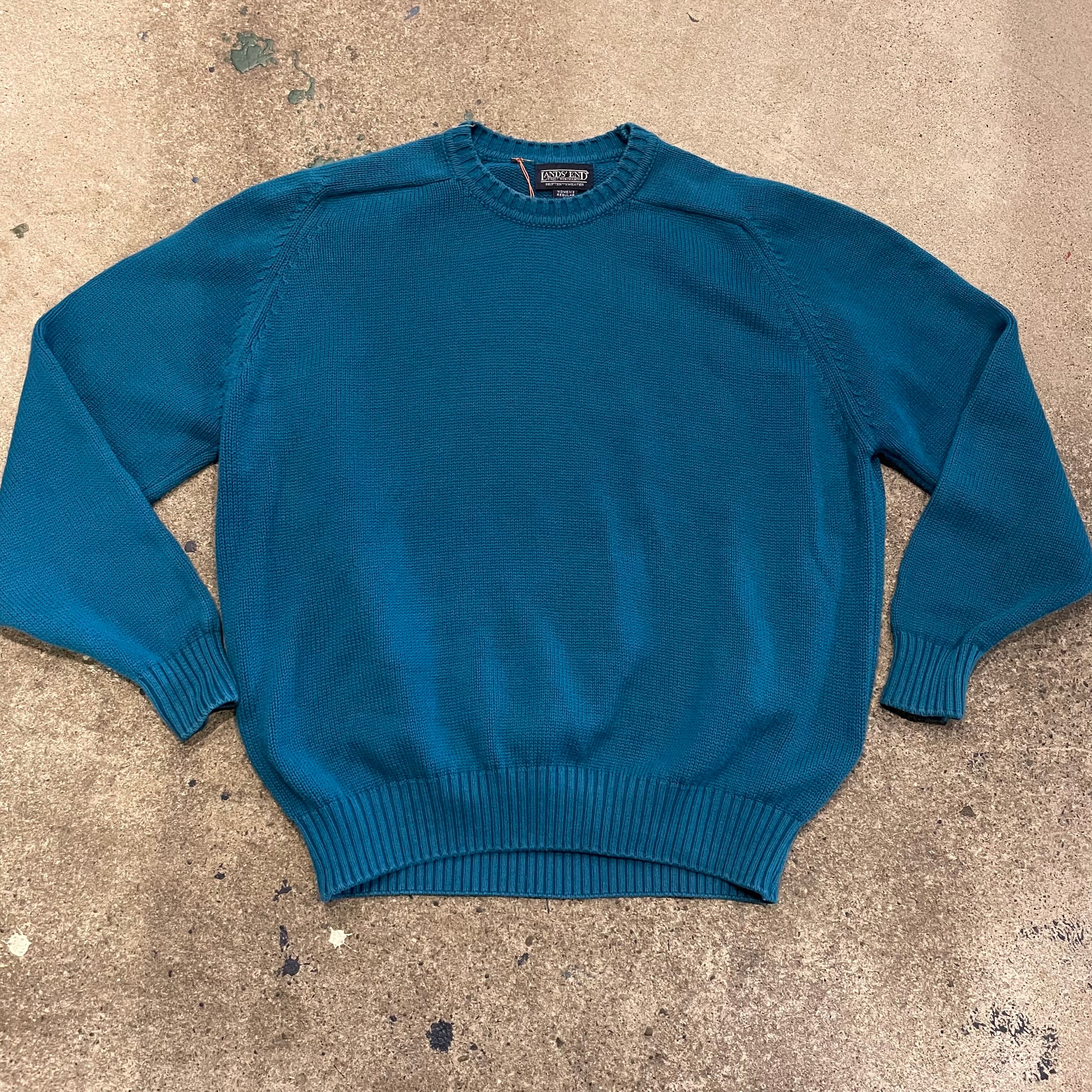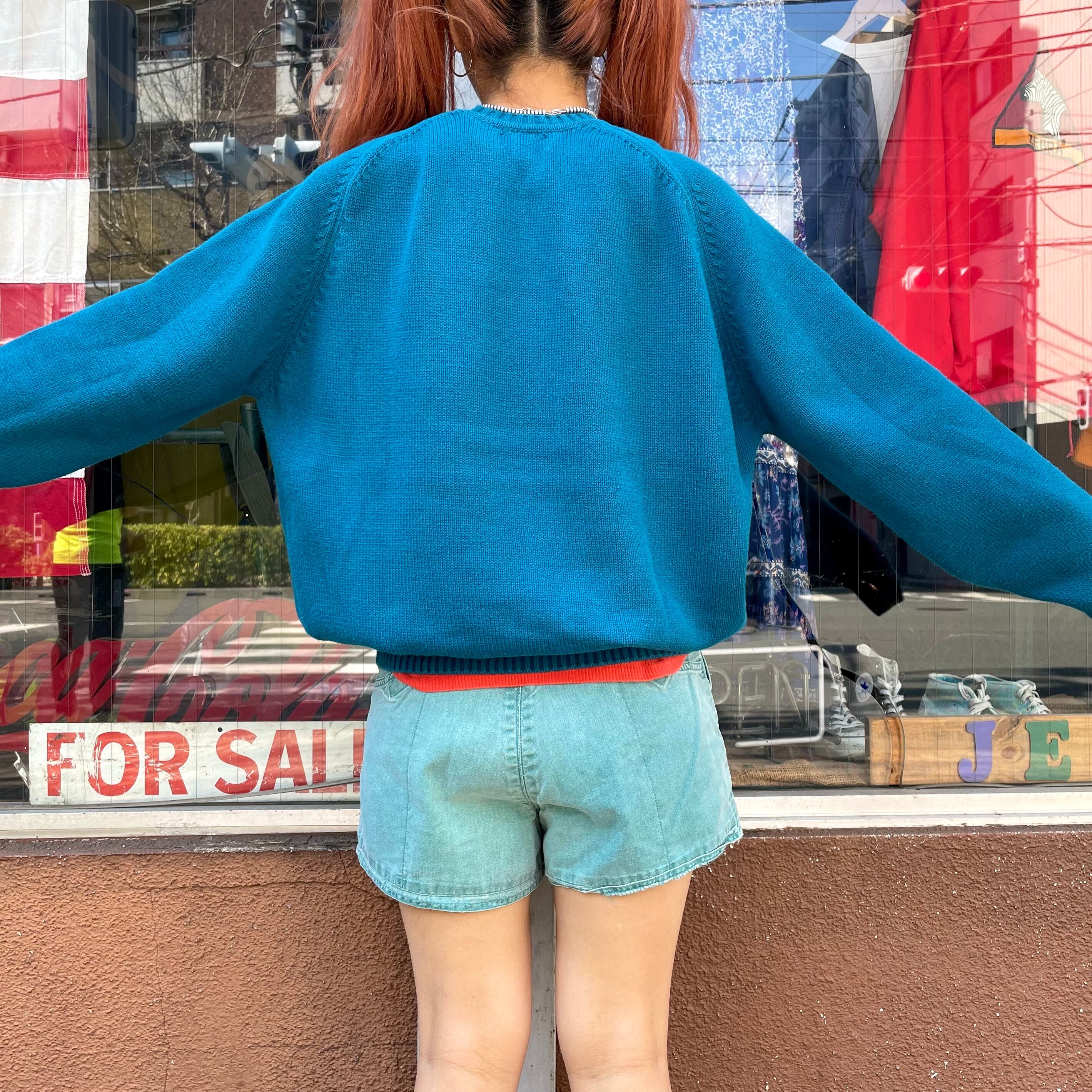 90年代USA製"LAND'S END" のコットンニットです。濃いめのターコイズブルーがとても良い色で、しっかり厚みはありますが柔らかい生地感で着心地の良い一着です。
