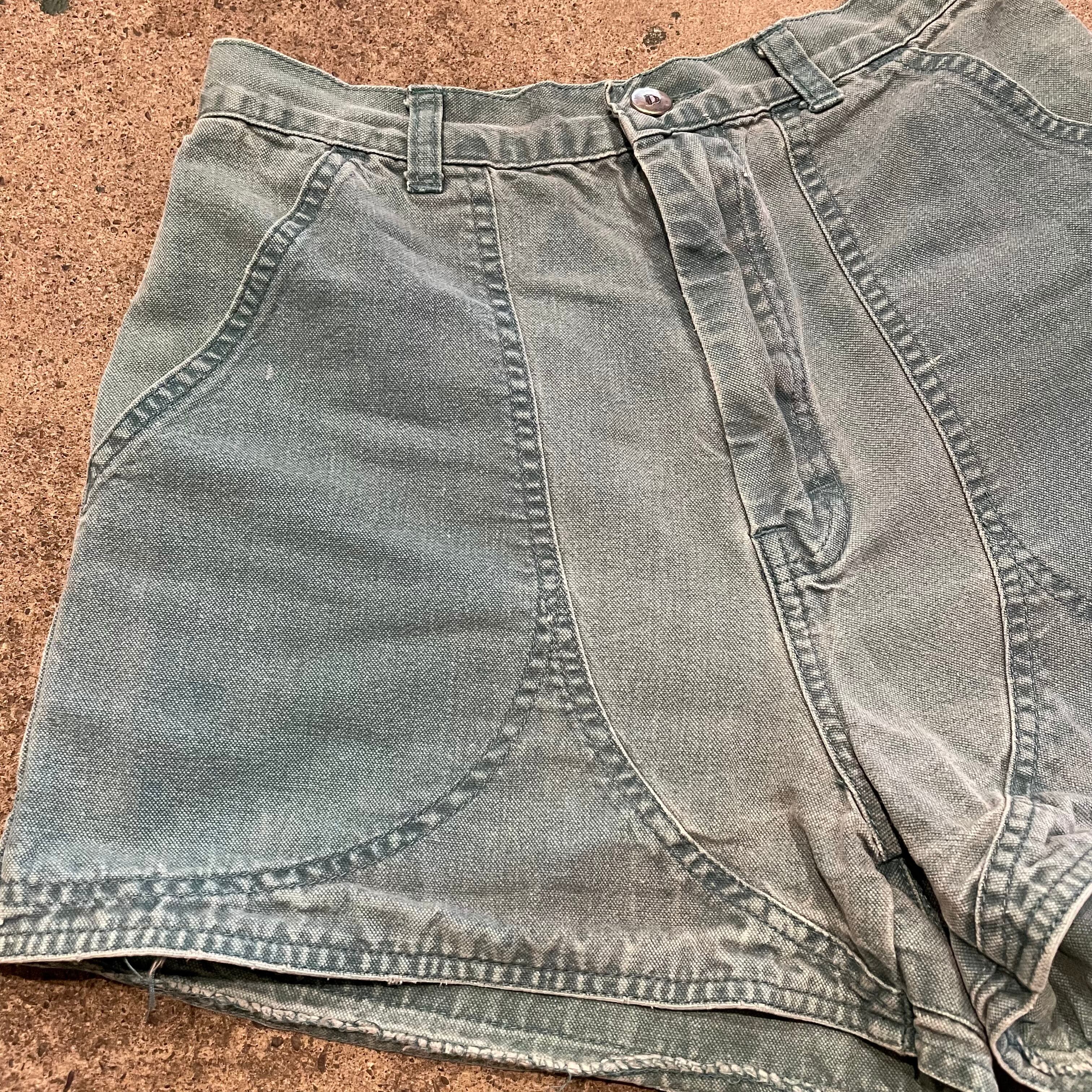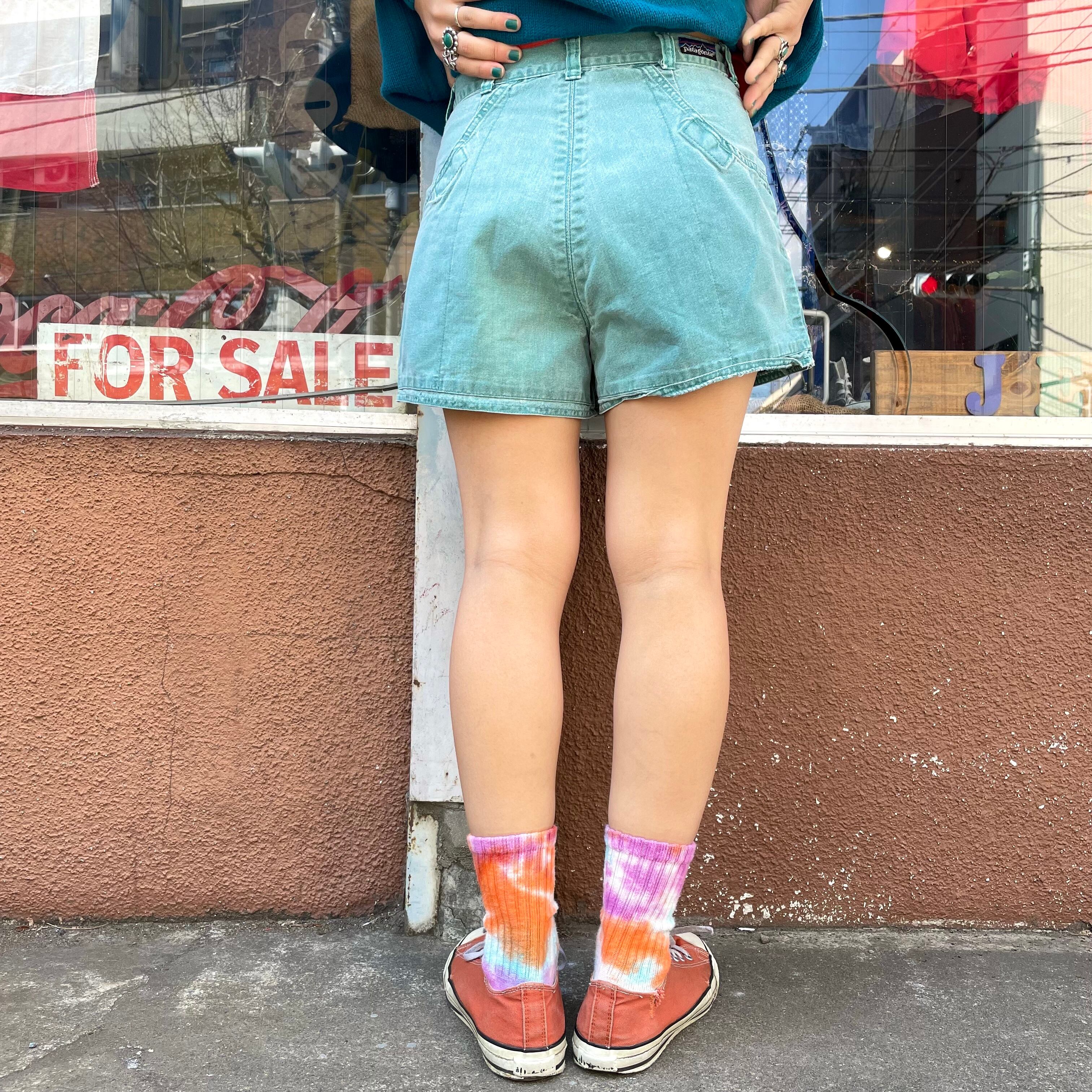 80〜90年代頃のパタゴニアのショートパンツです。雰囲気のある緑もかわいいですし、短すぎず長すぎずな丈感、裾幅がしっかり広がっている履きやすい形も良いですね。