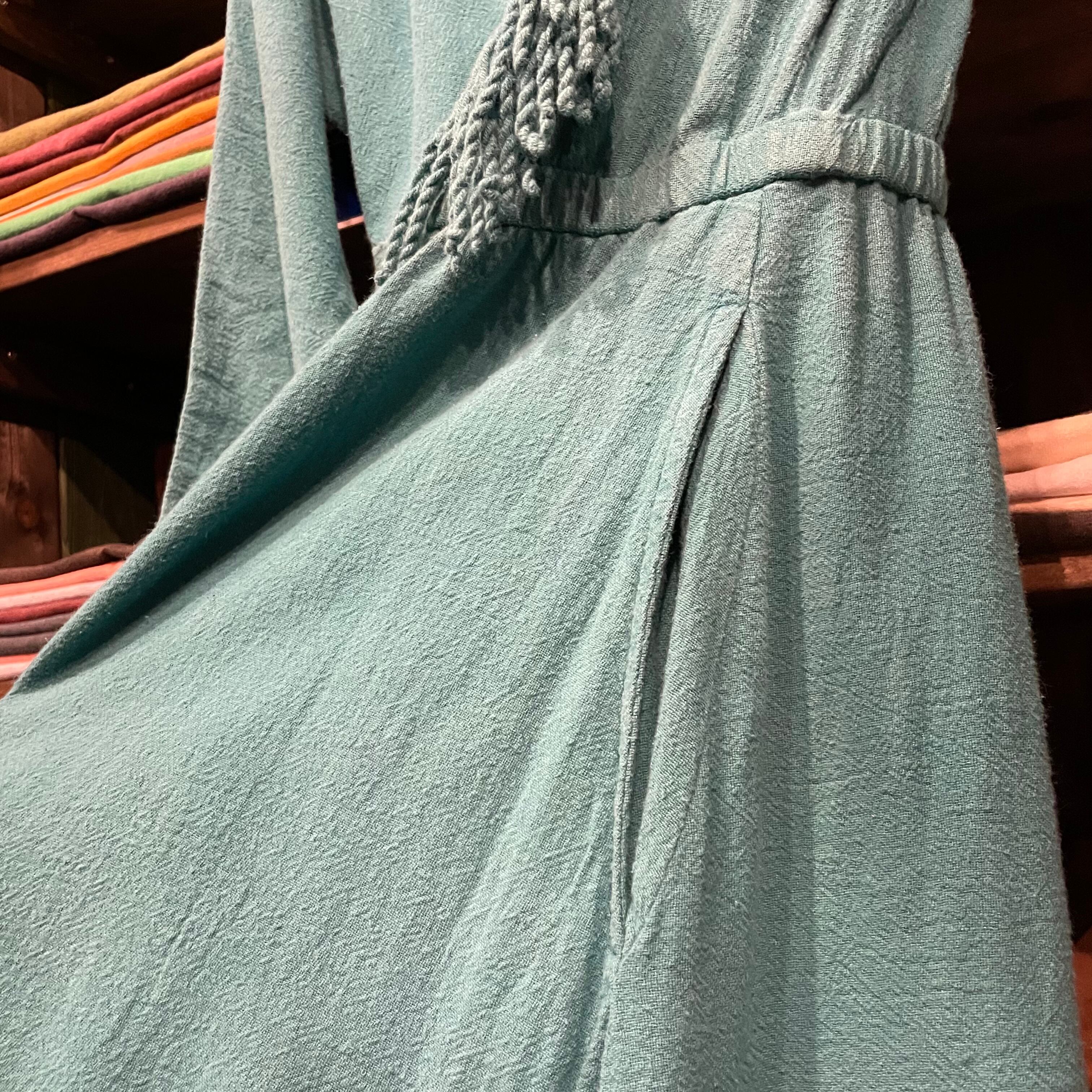 肌触りの良いコットン素材の長袖ですので夏以外の季節で幅広くお使いいただけますし、ウエストがゴムですので楽ちんです。