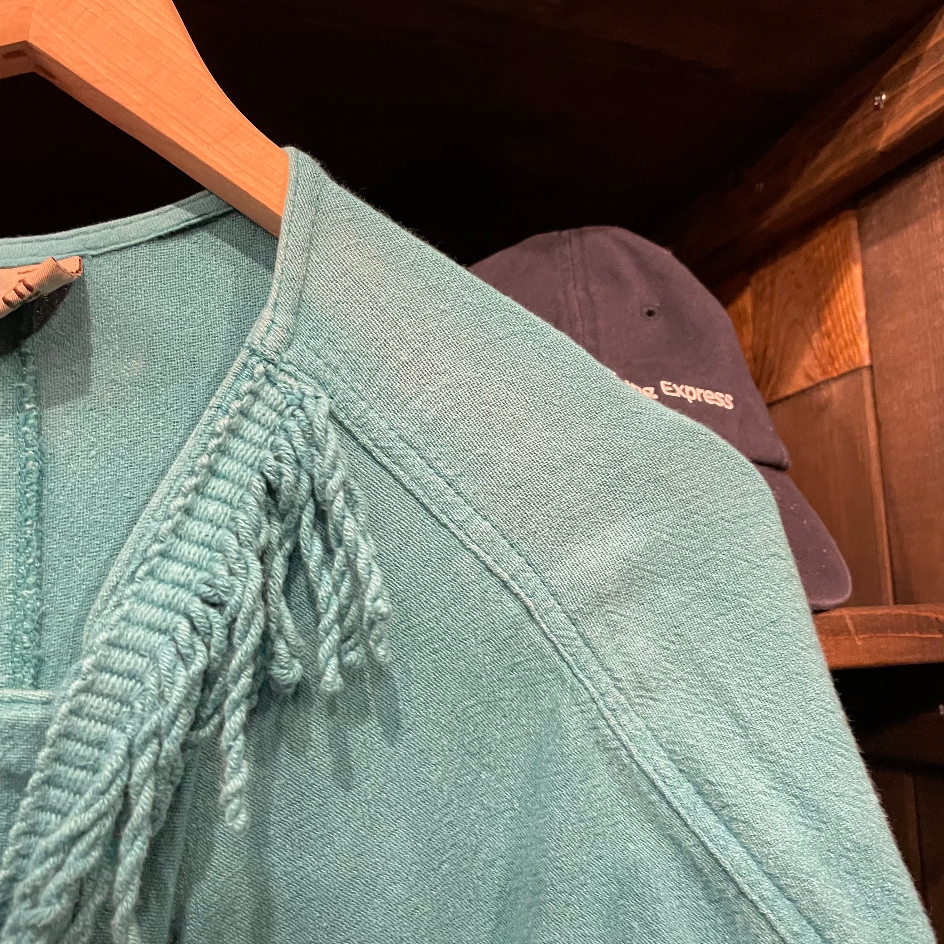 前にフリンジのデザインが特徴的で、シンプルですが一枚で着てもかわいいです。
