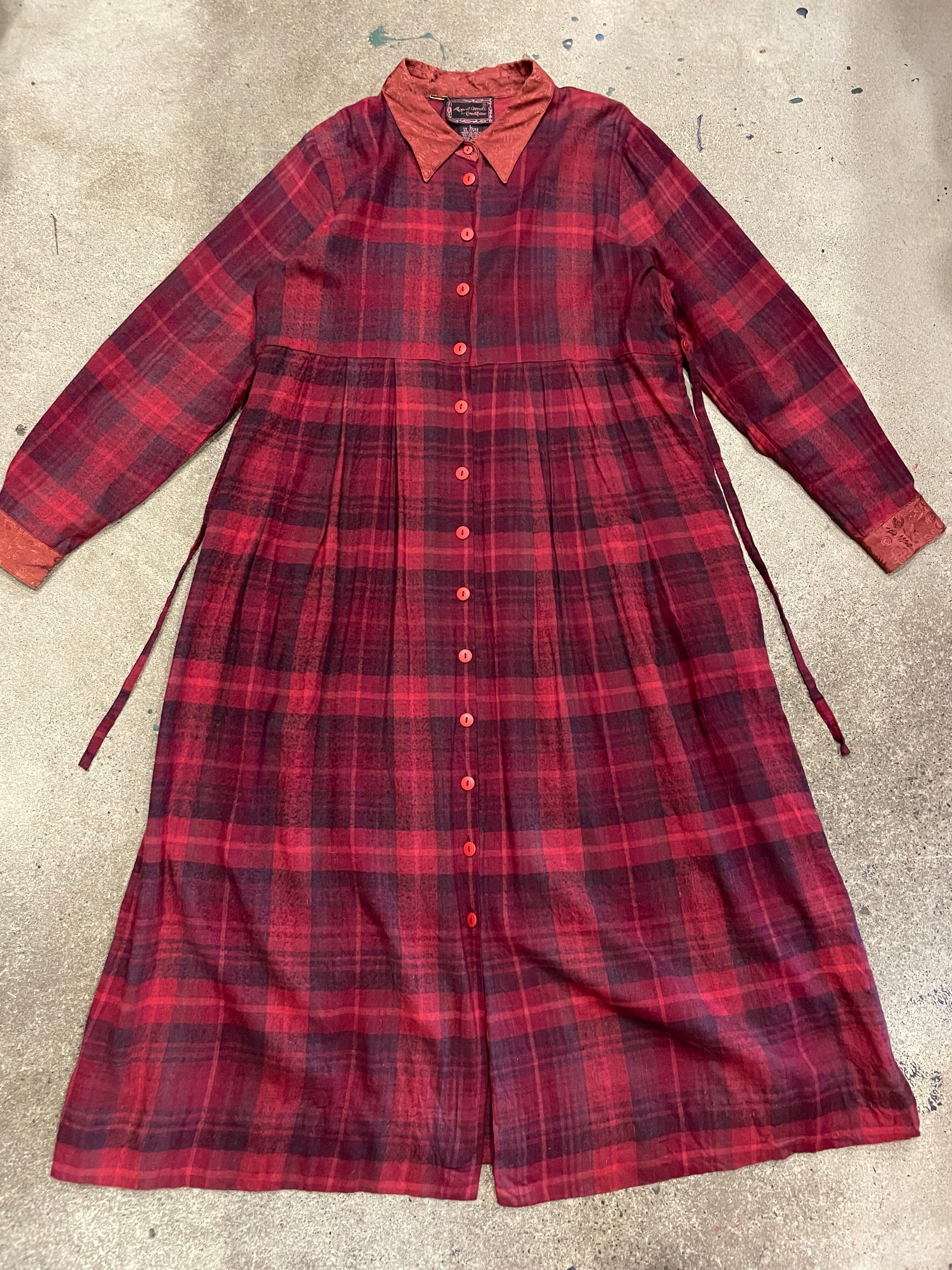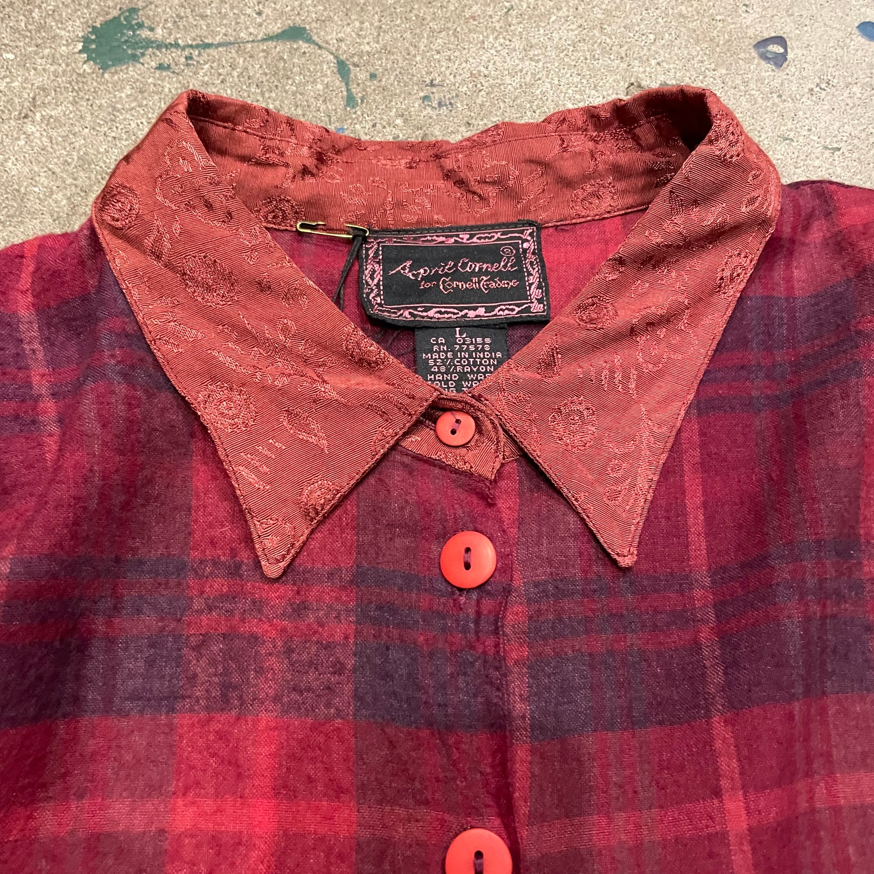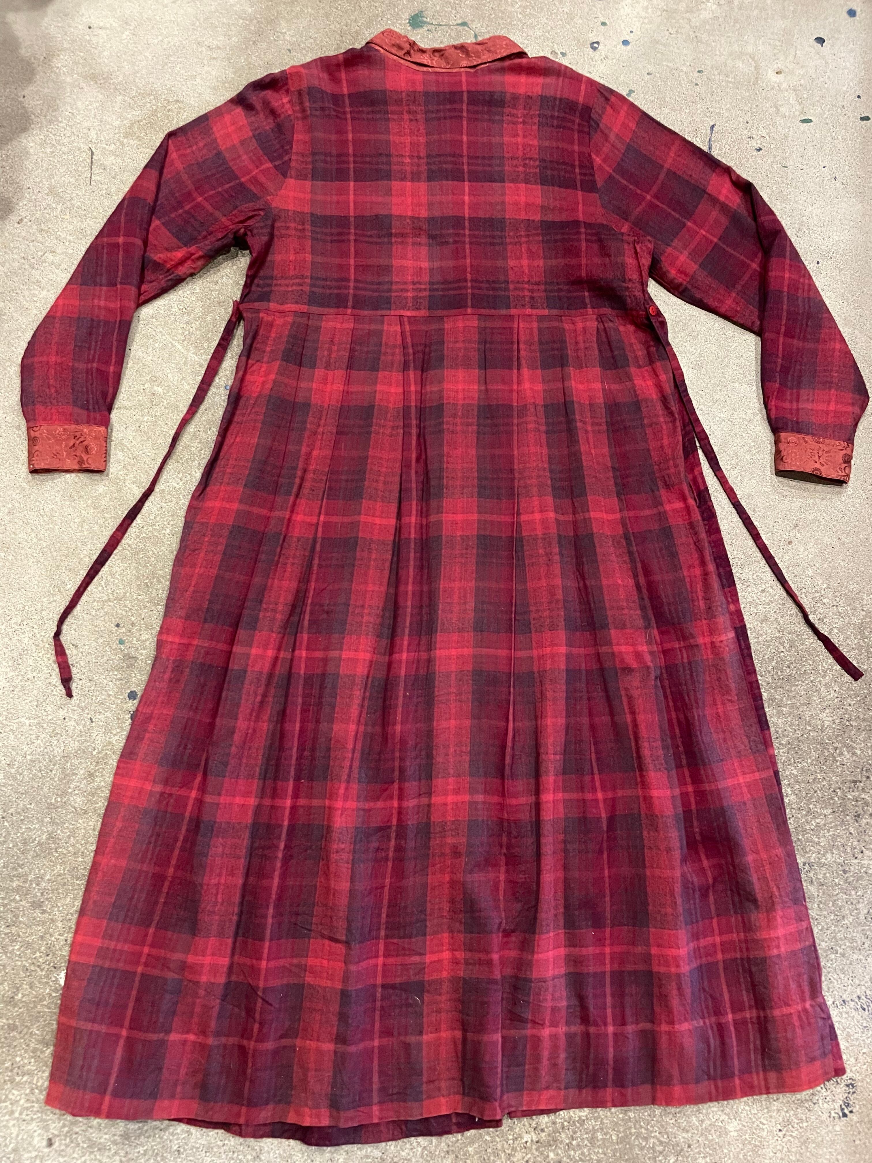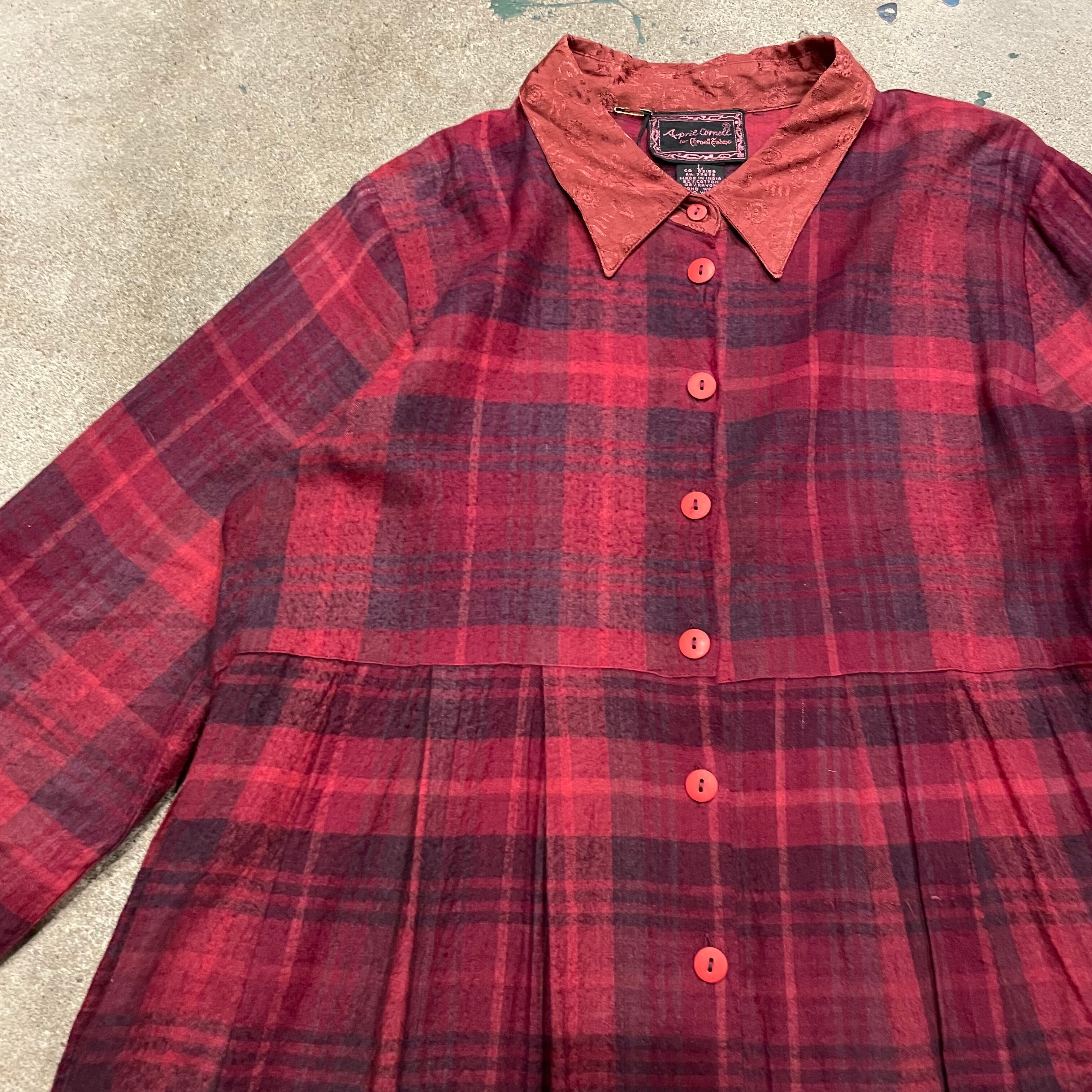 襟とカフス部分がつるっとした織りがきれいな生地の切り替えになっていて、その絶妙なバランス感がかわいいです。前開きですので羽織としてもお使い頂けてとても便利ですし、夏以外の季節で幅広くお使い頂けるのも嬉しいポイントですね!