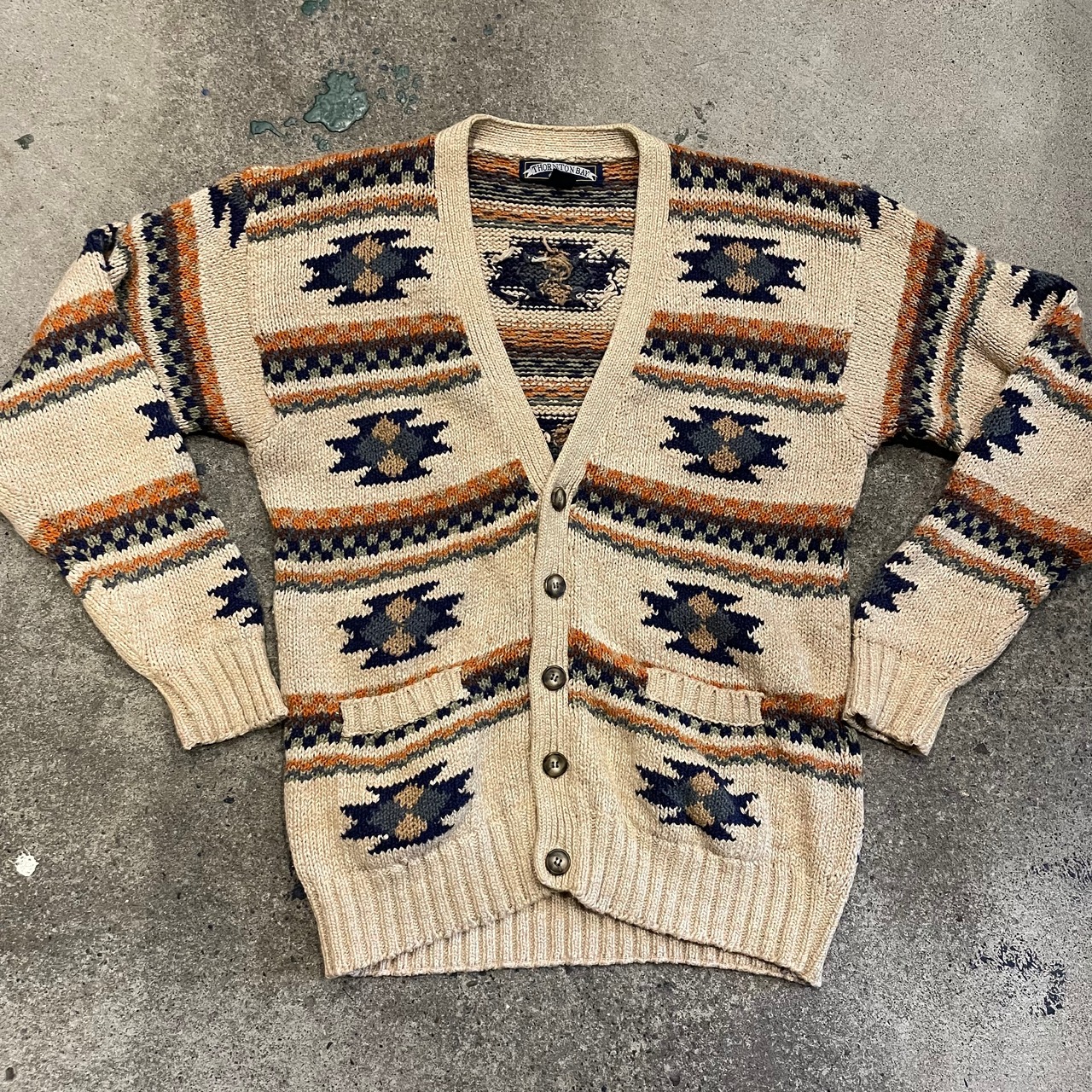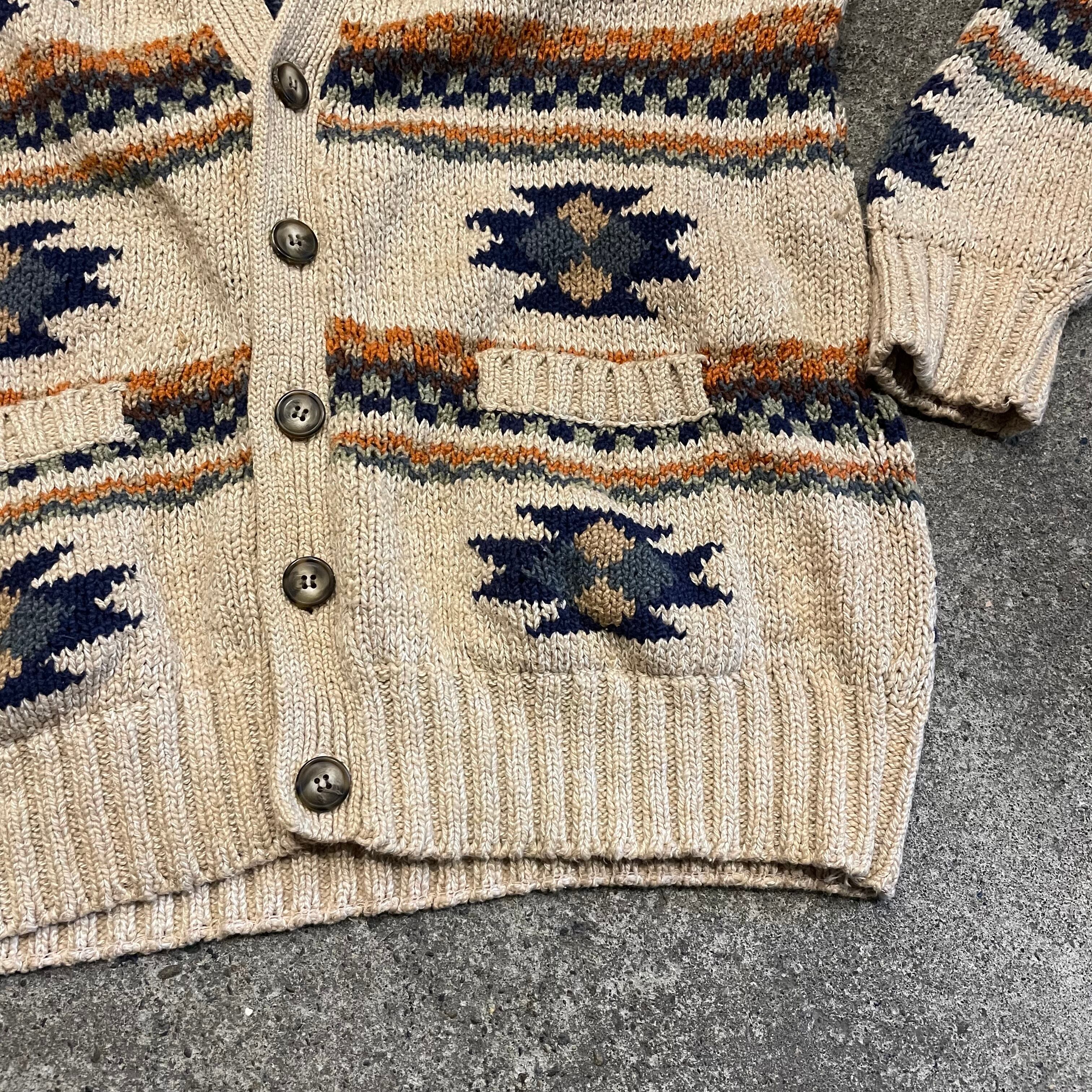 渋めなカラーリングが良い雰囲気のコットンリネンのニットカーディガンです。