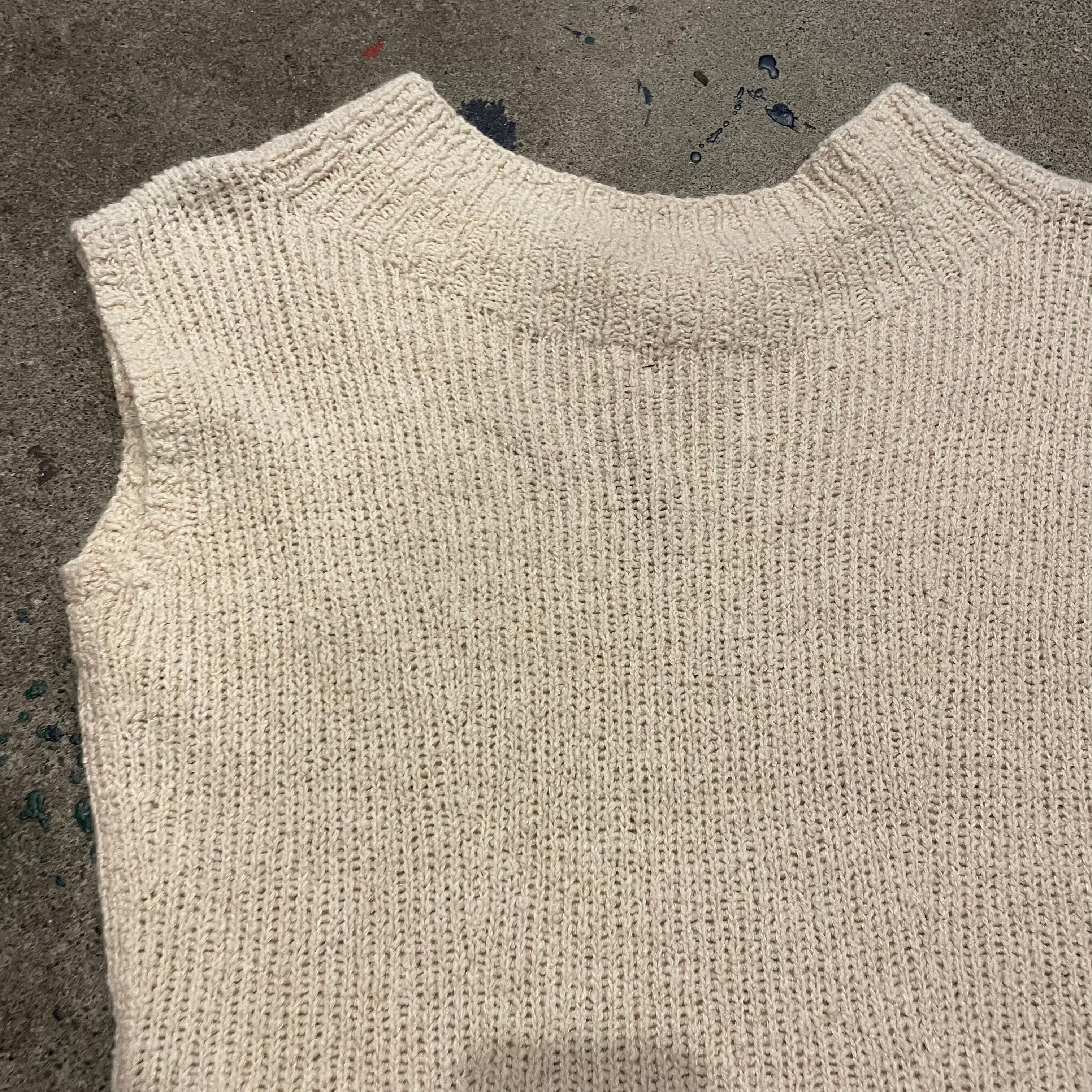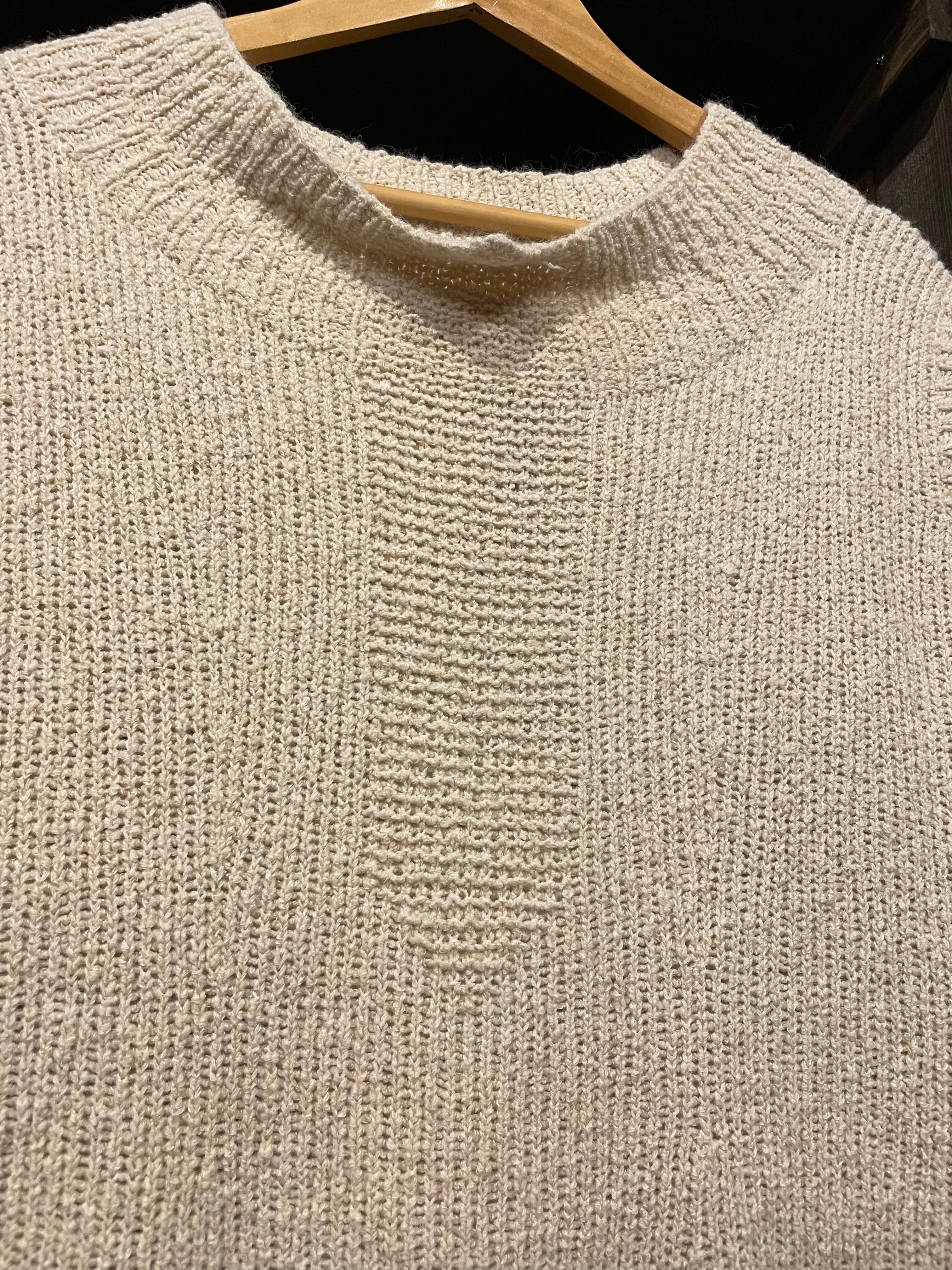 生成りのような薄いベージュのような色味のニットワンピースです。