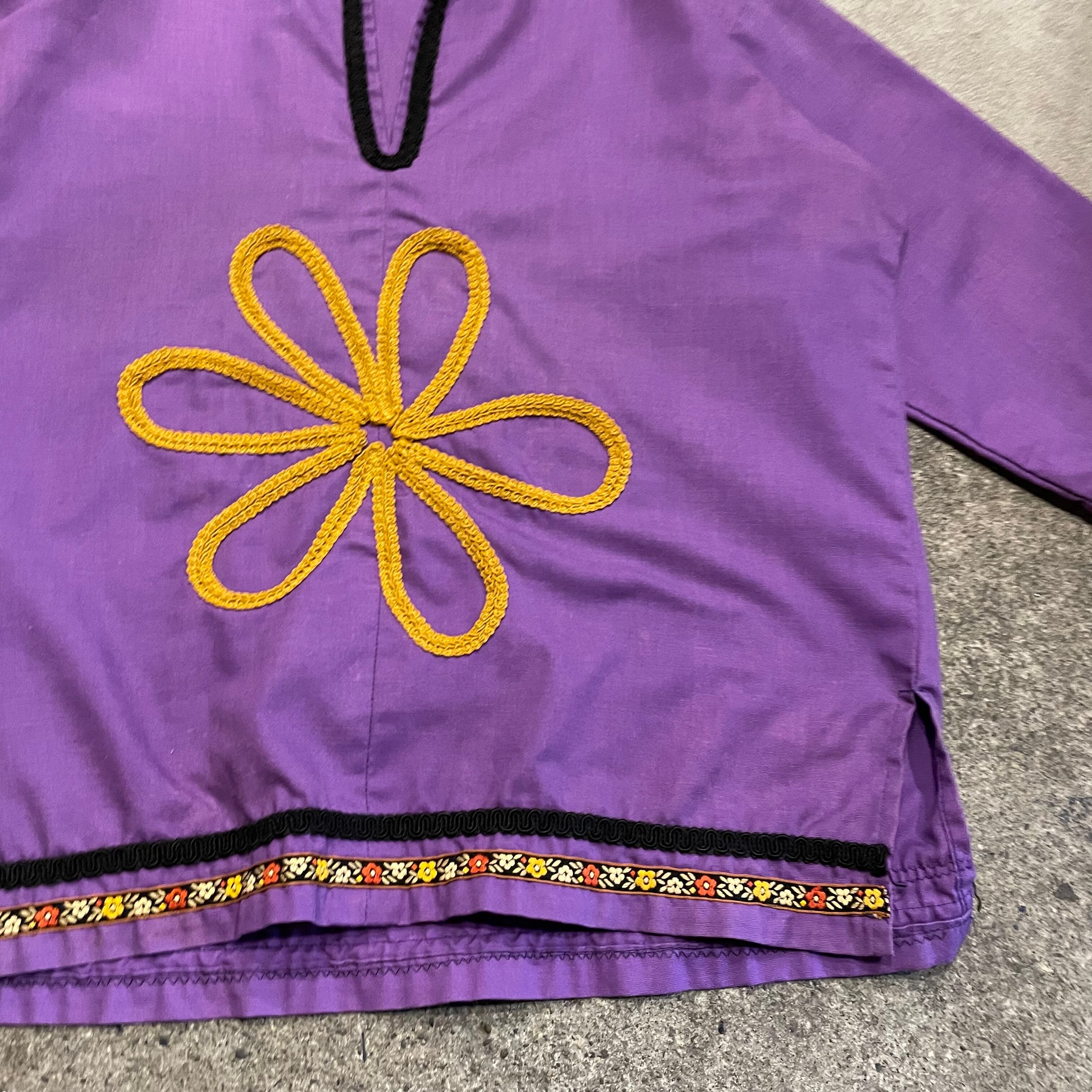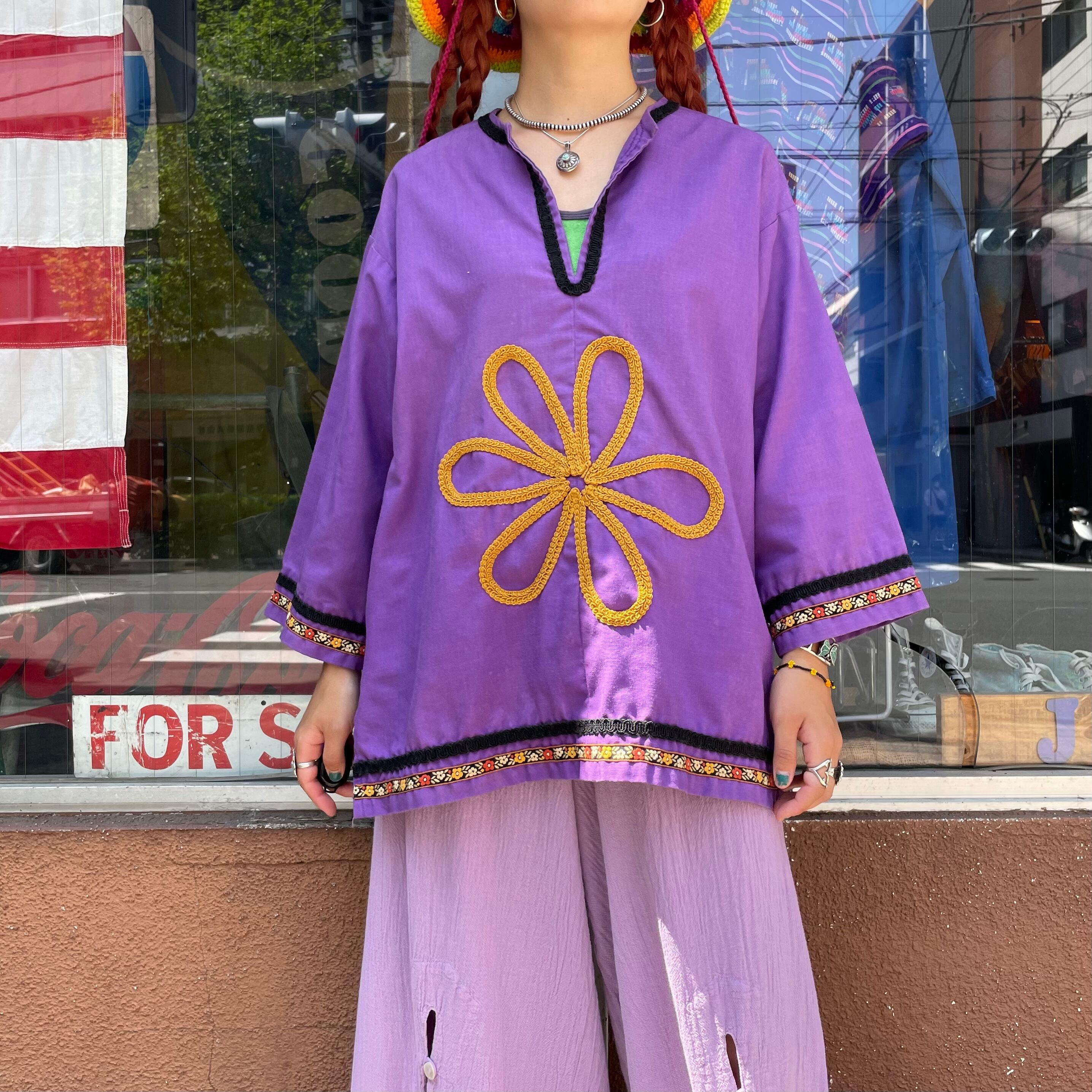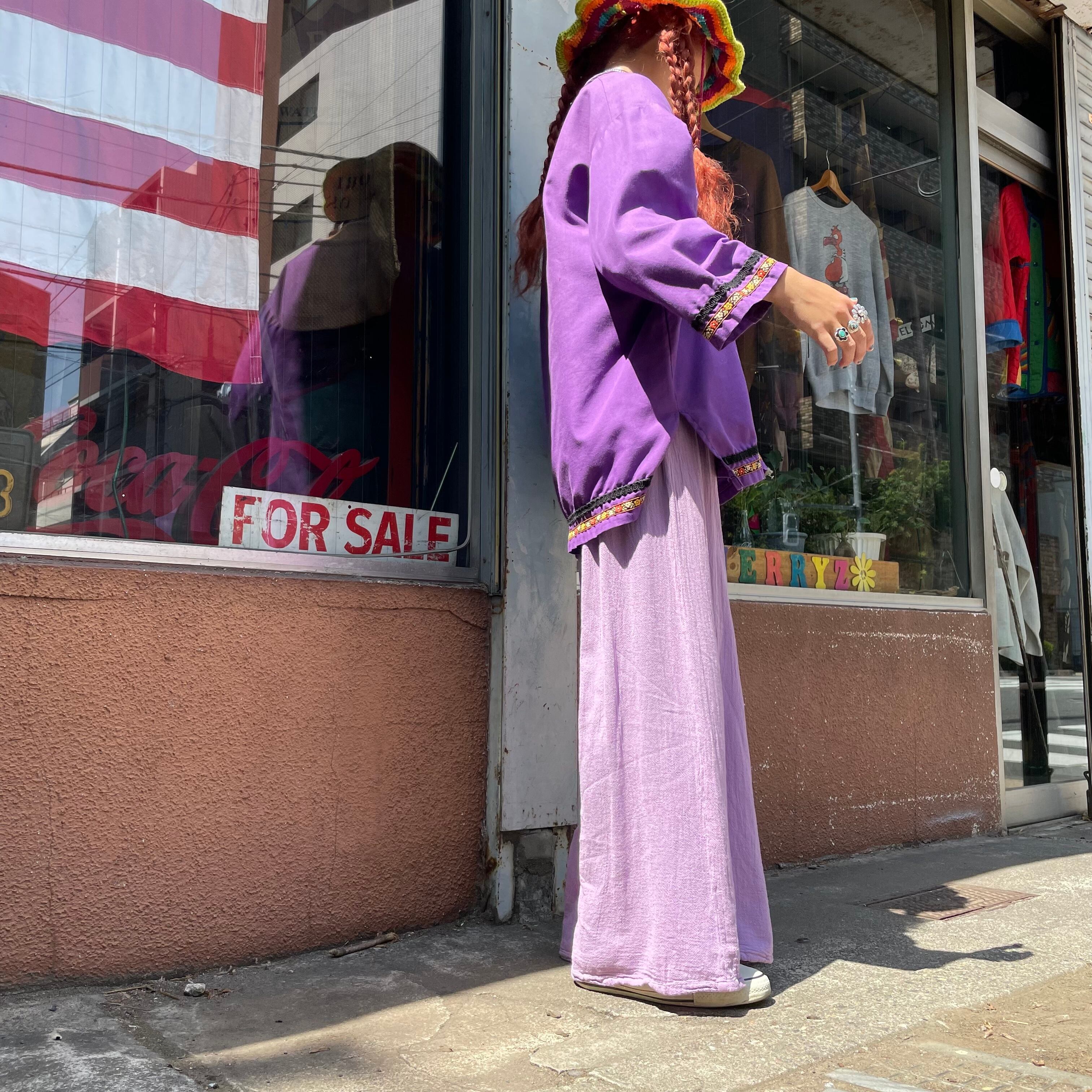 袖口や裾にはチロリアンテープが縫い付けてあり袖の長さも絶妙でかわいいです。フレアデニムやティアードのロングスカートなどを合わせてヒッピーなスタイルもかわいいですね!