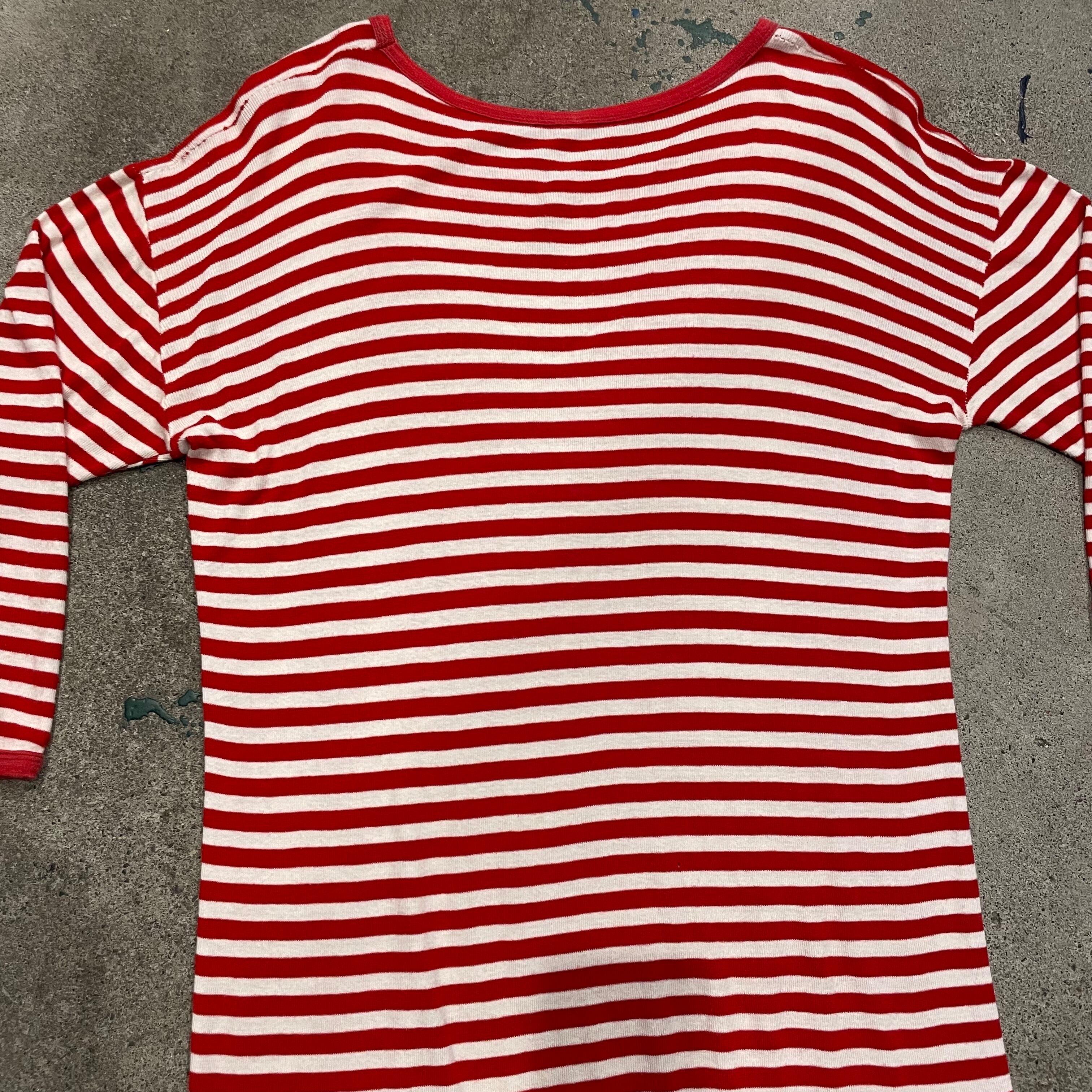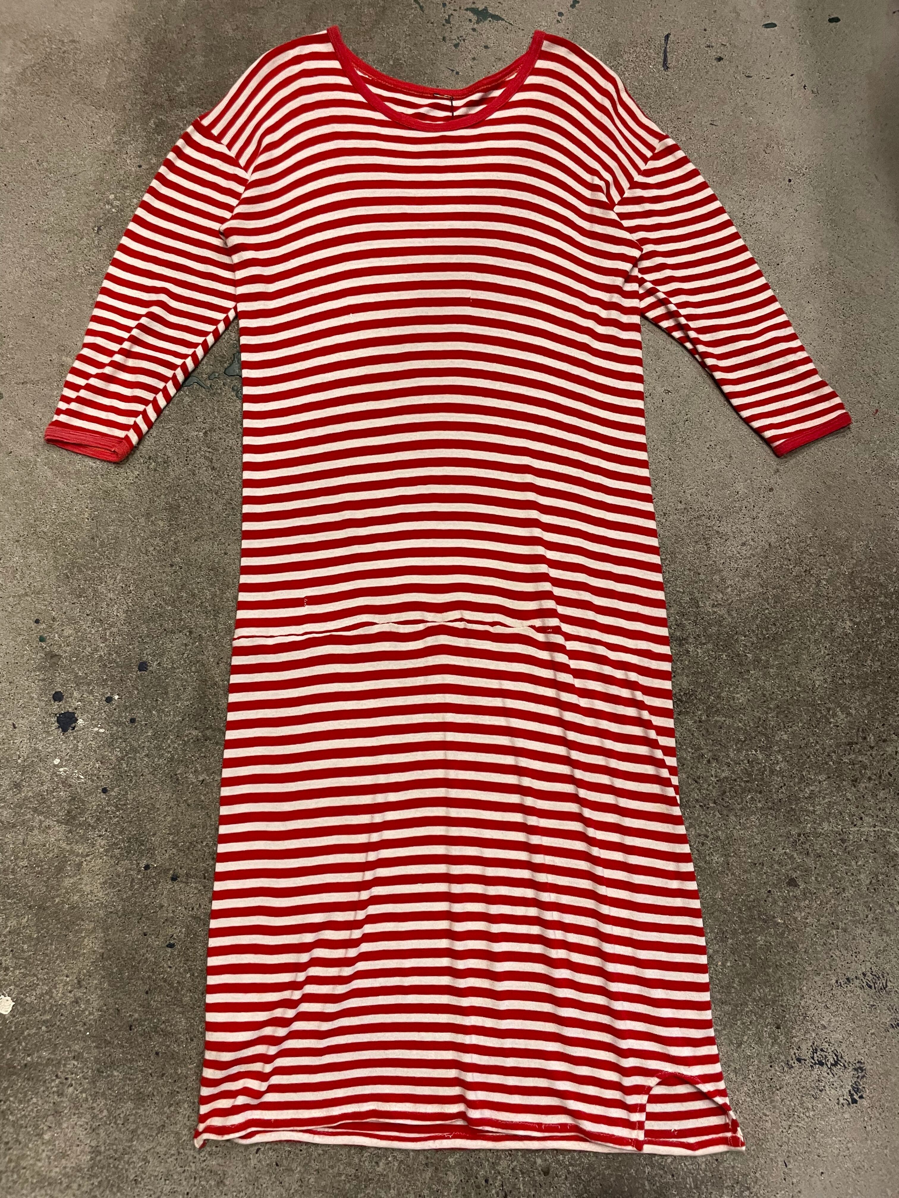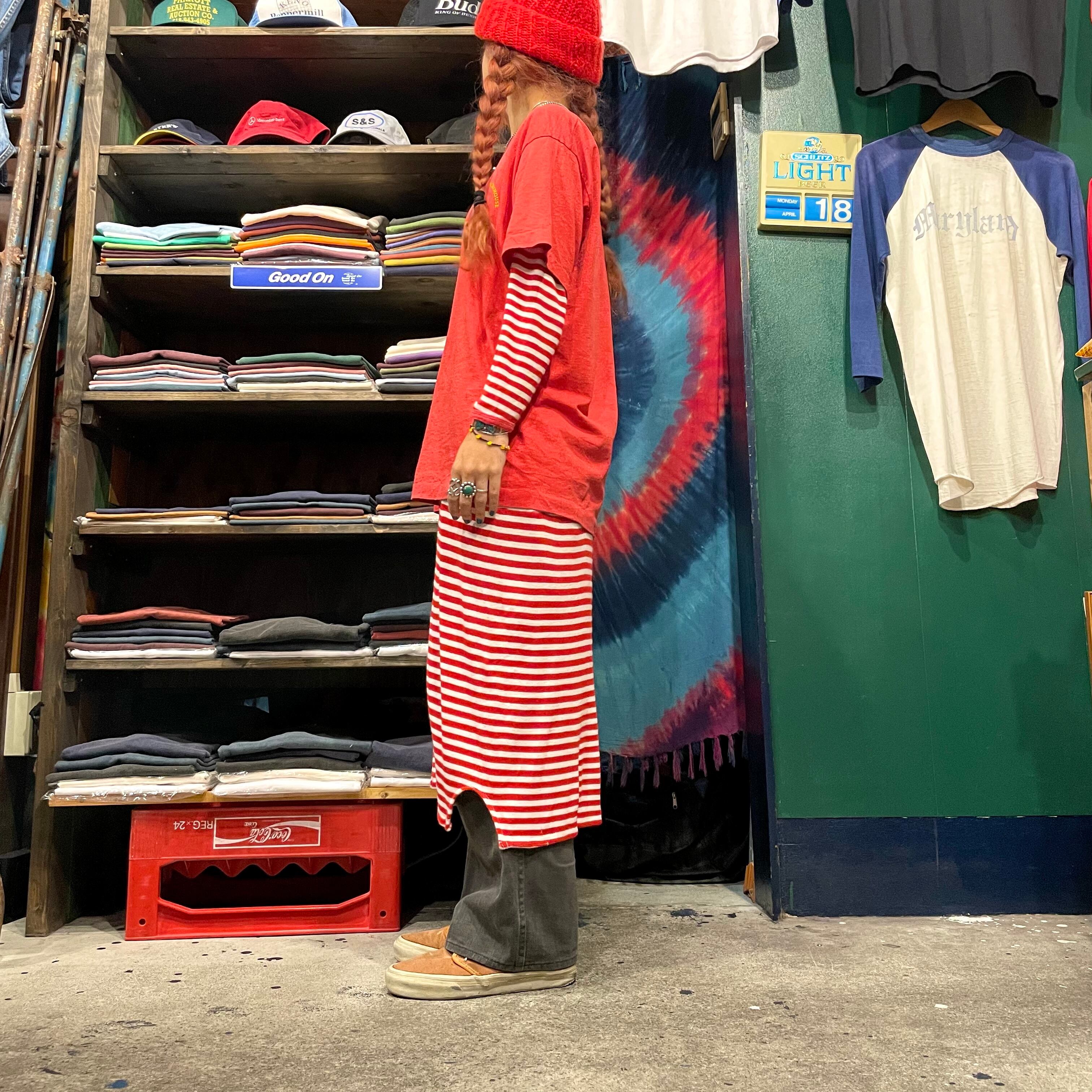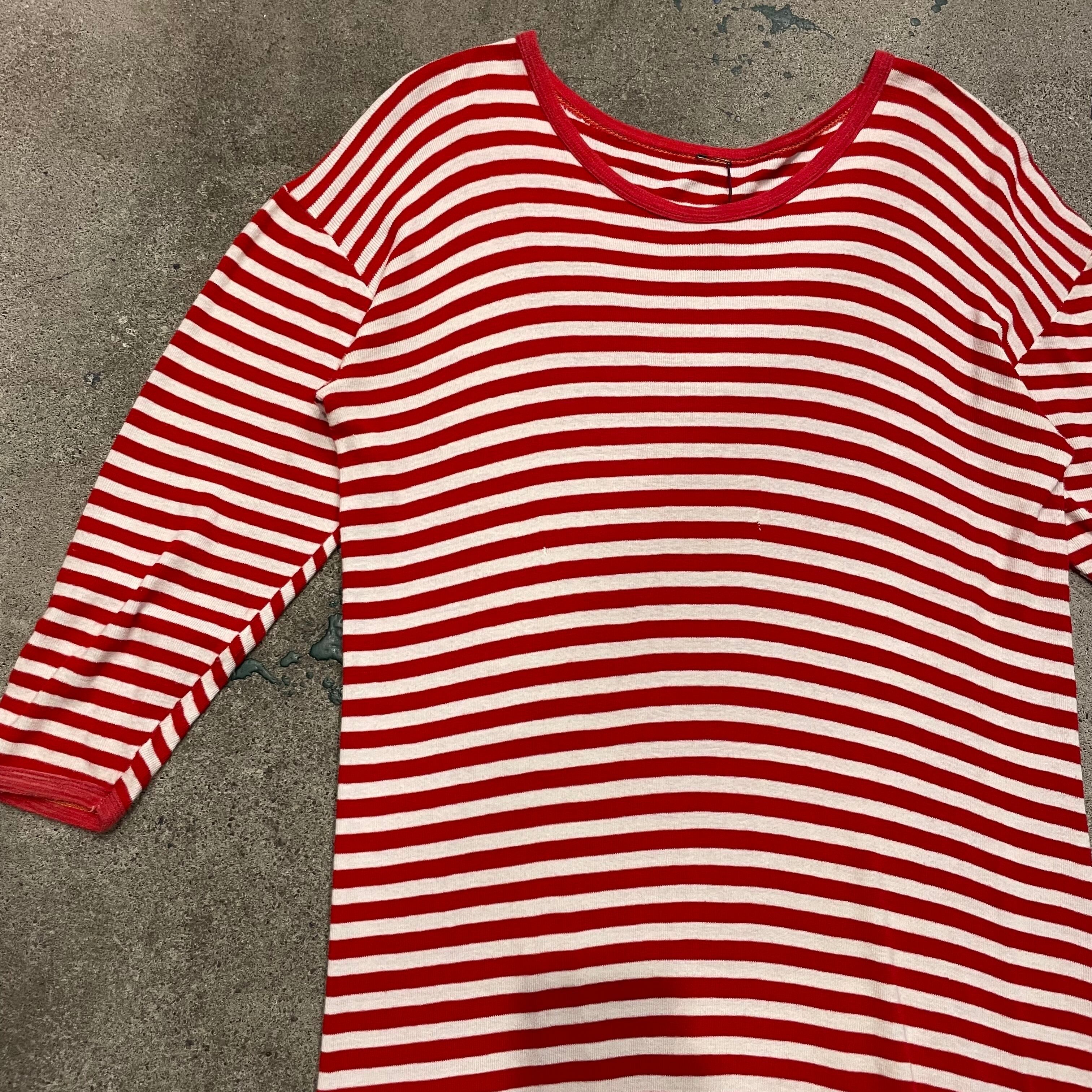 赤白のボーダーがかわいいカットソーワンピースです。柔らかくて伸縮性がありとても気持ち良い着心地と楽ちんさが良いですね。