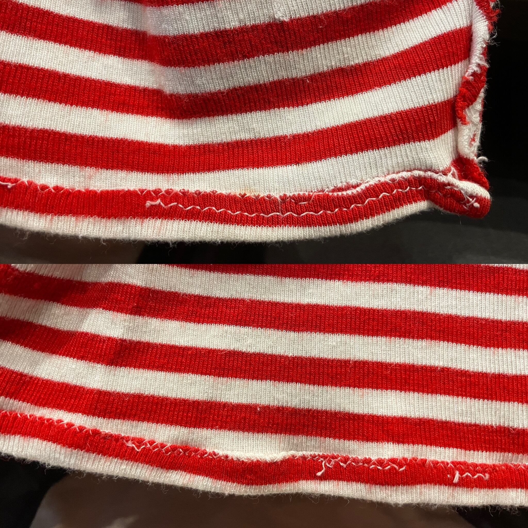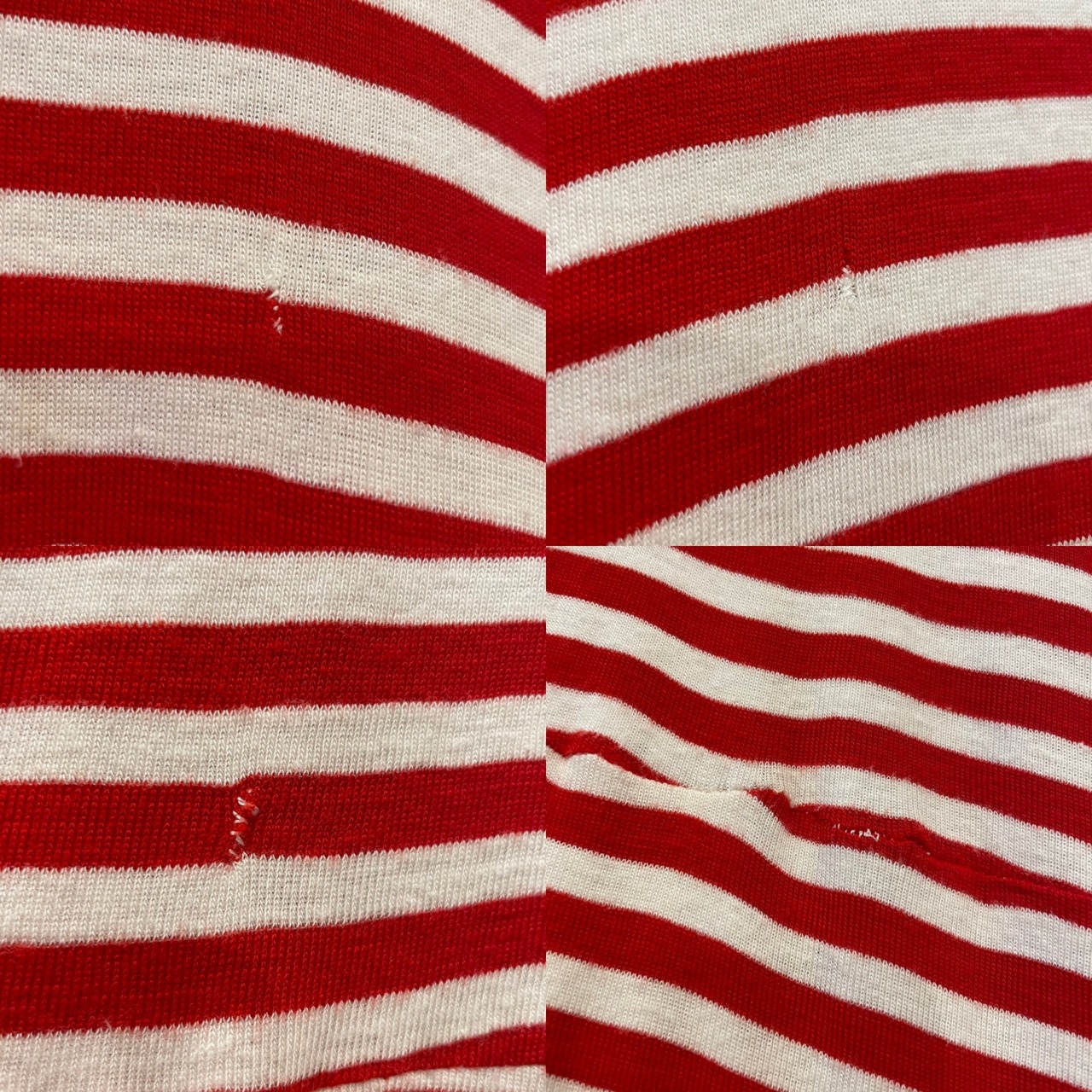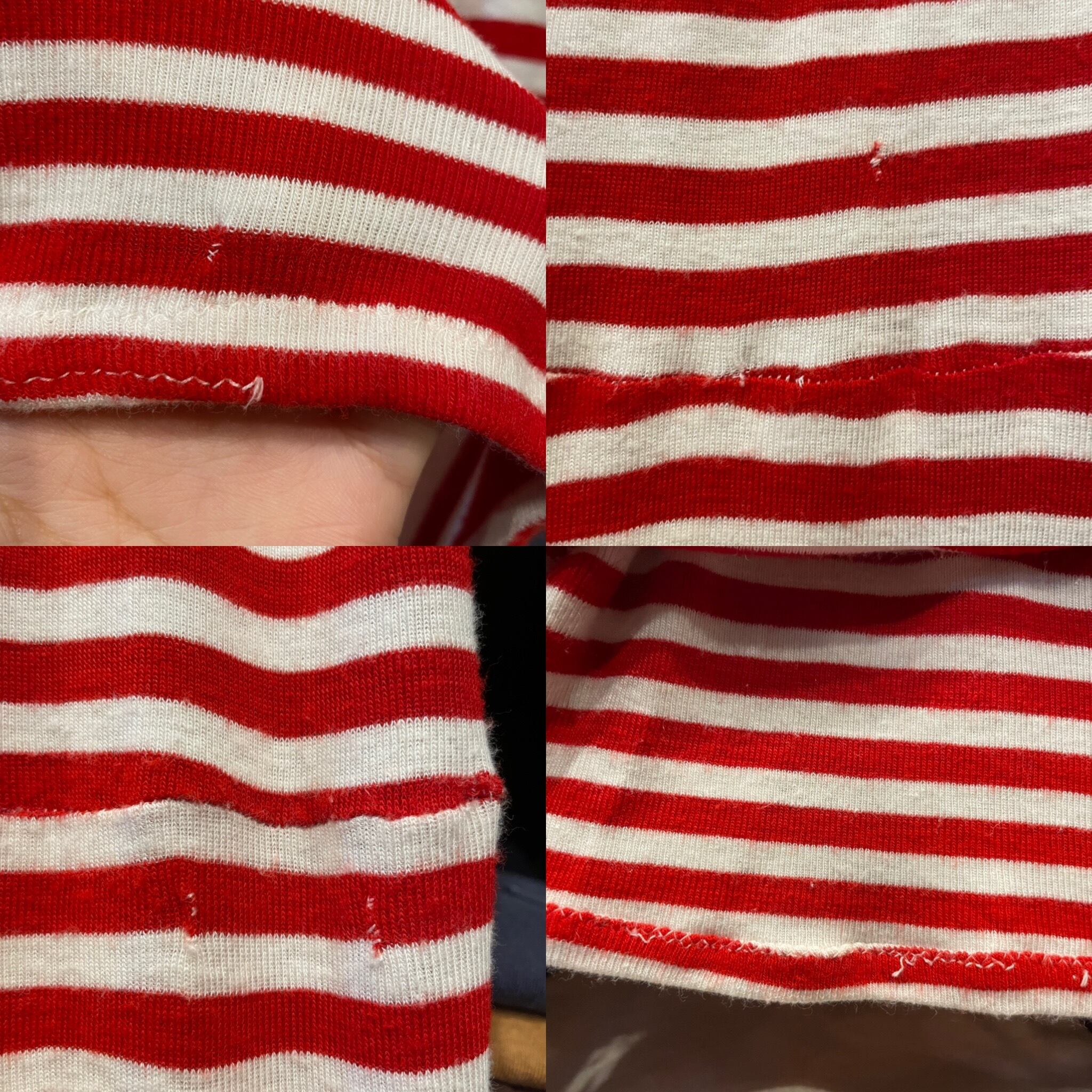 小さいキズやリペアが多数ございます。裾の縫い代のほつれや、全体的な薄い毛羽立ち等ダメージや使用感のある商品です。
