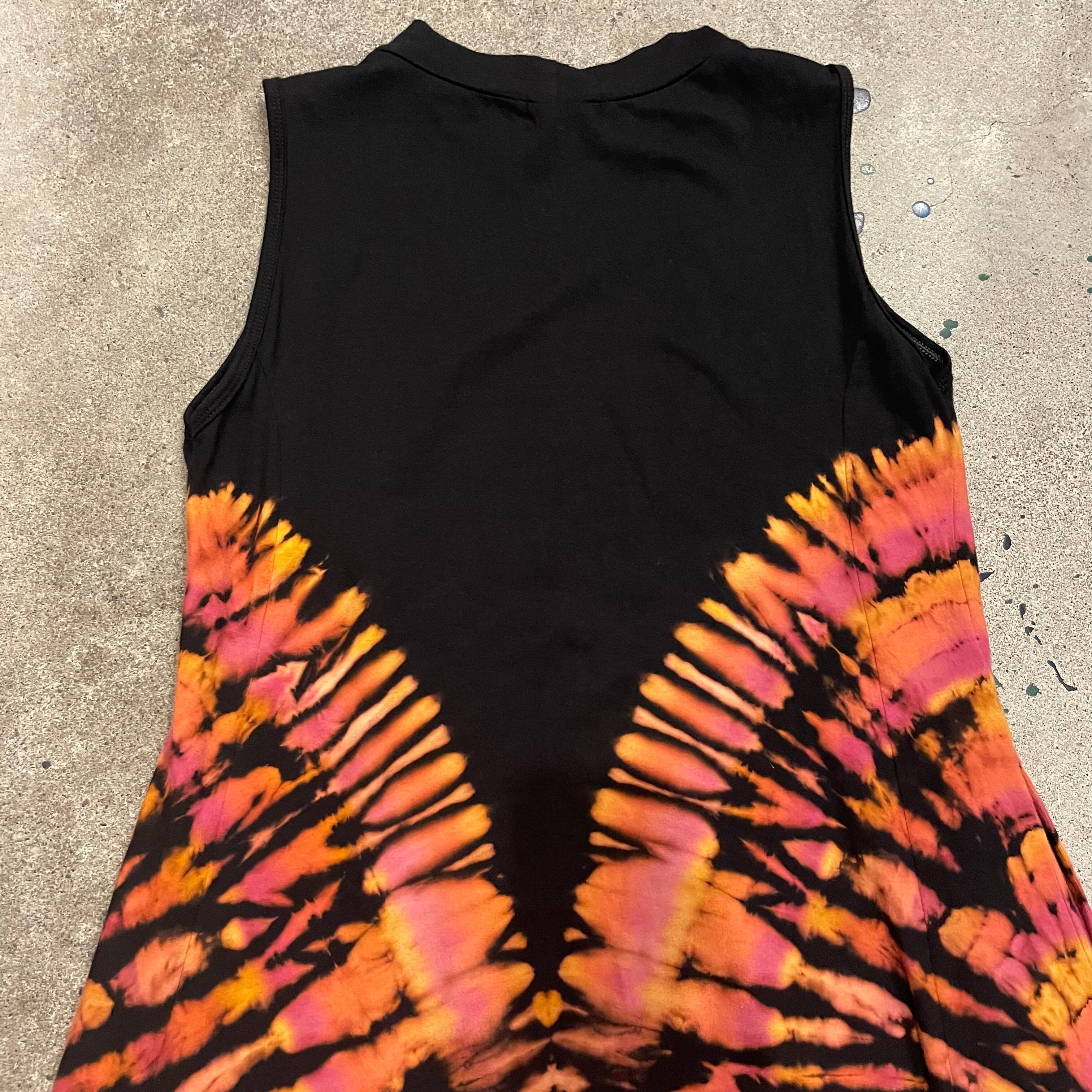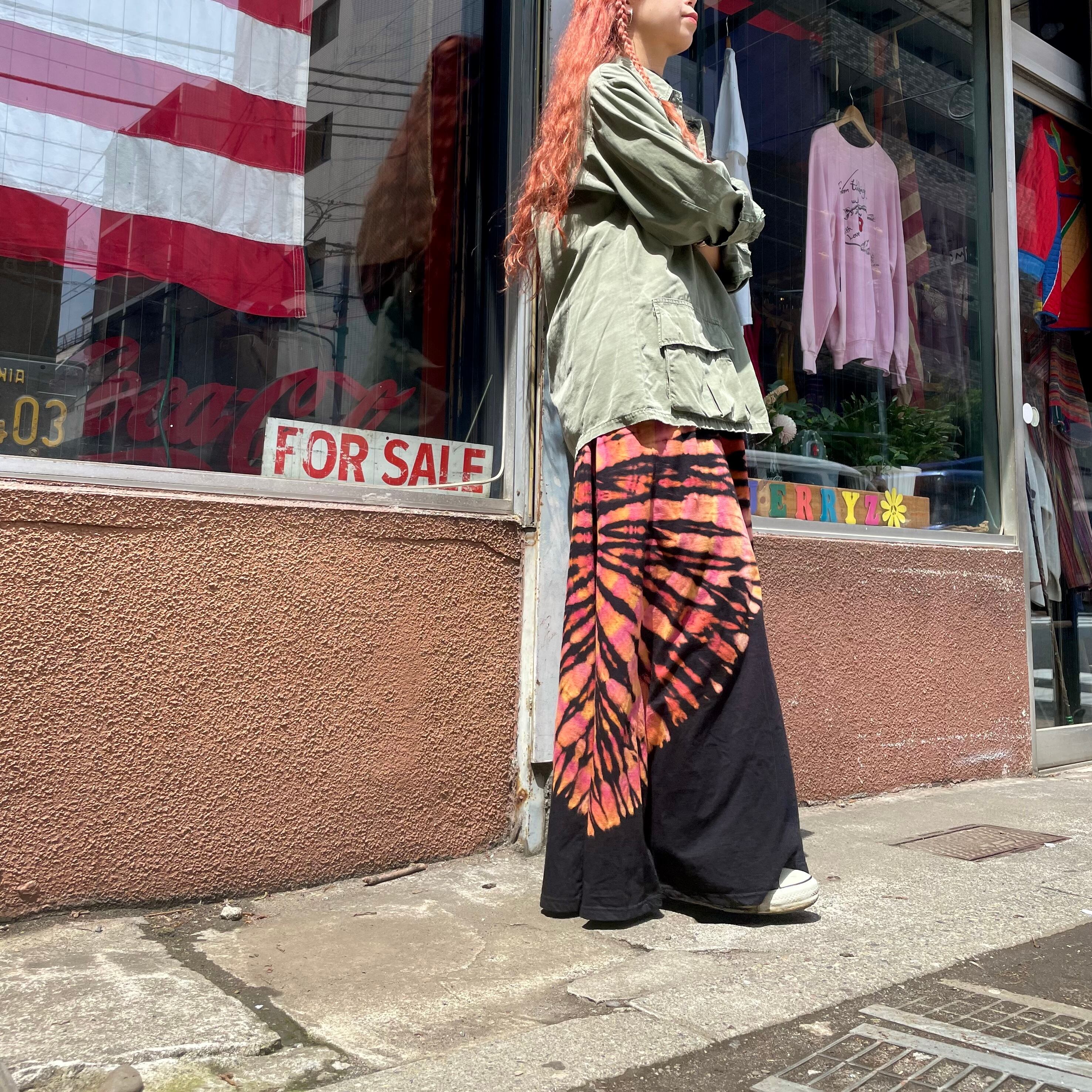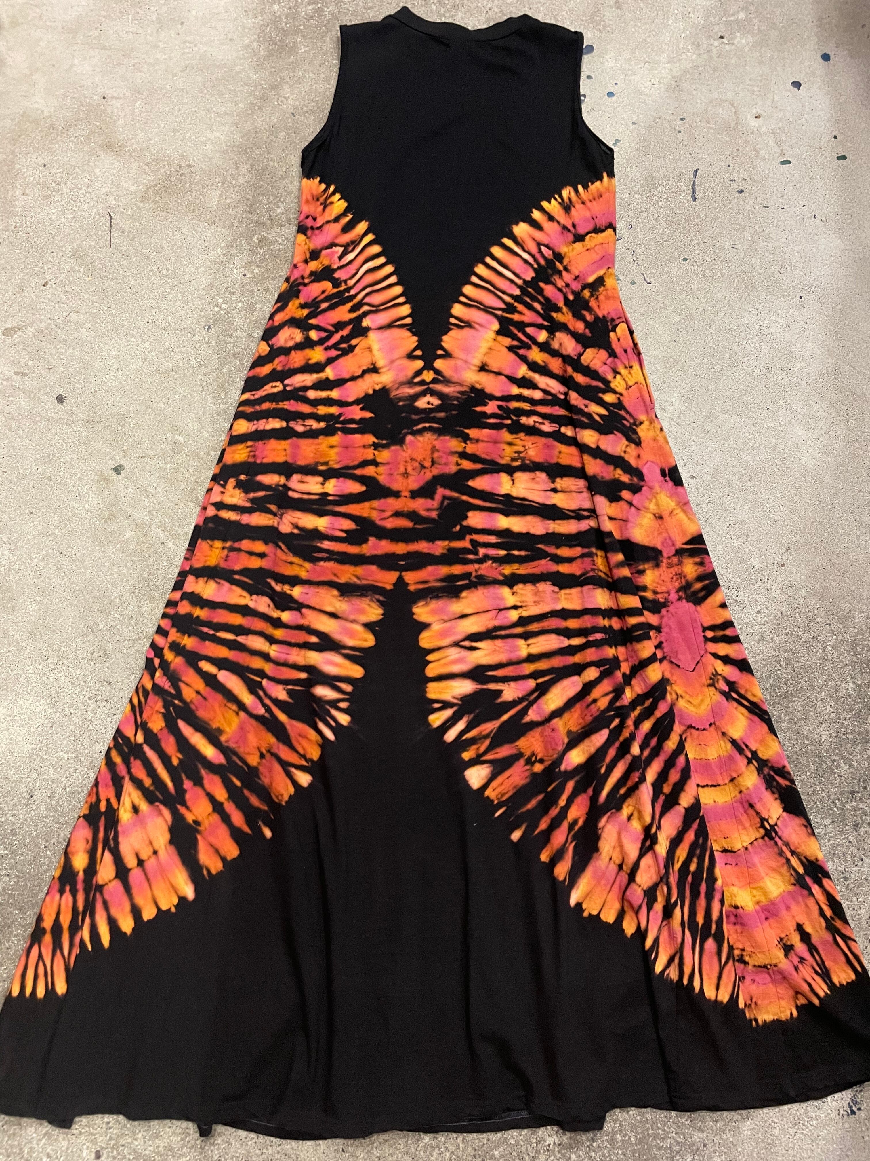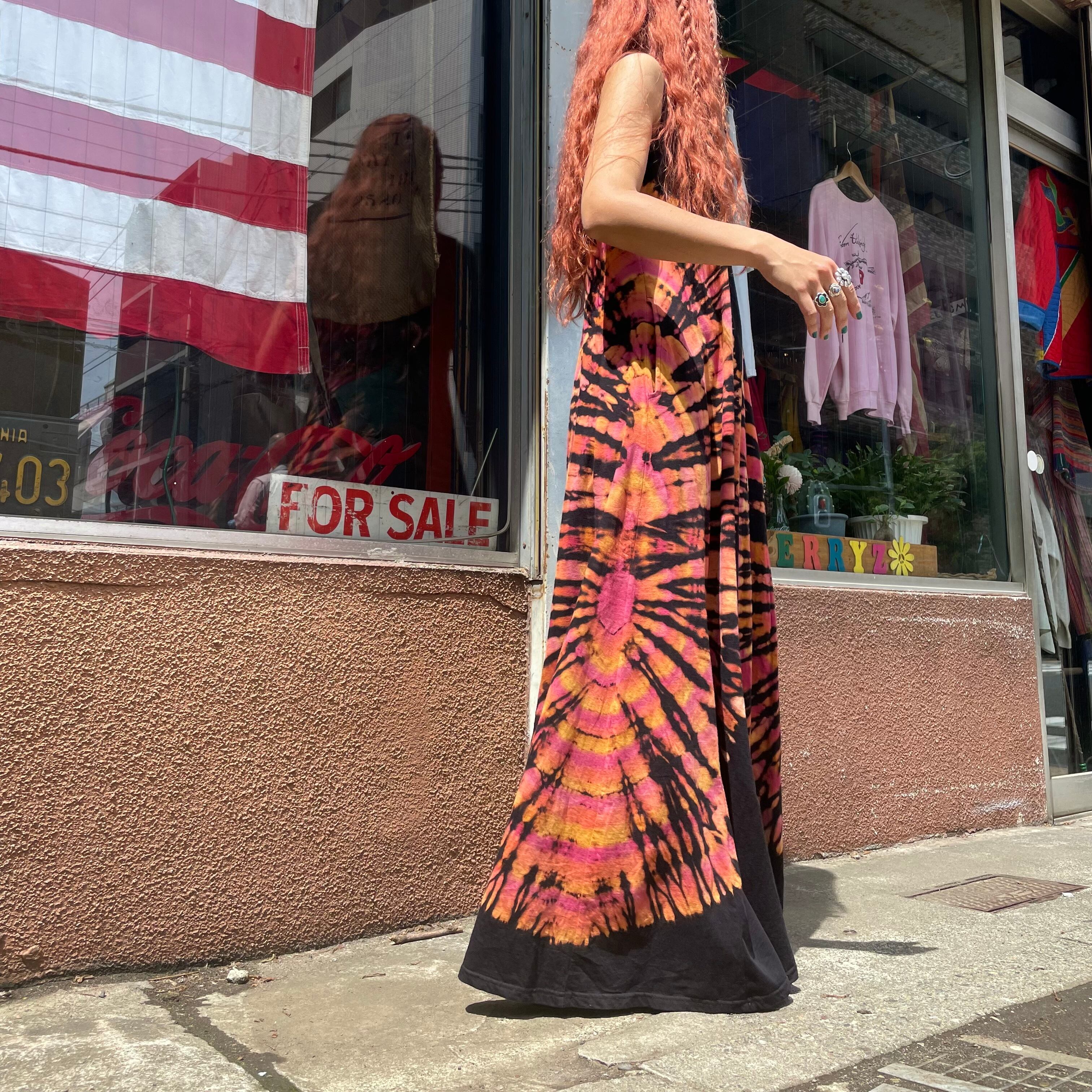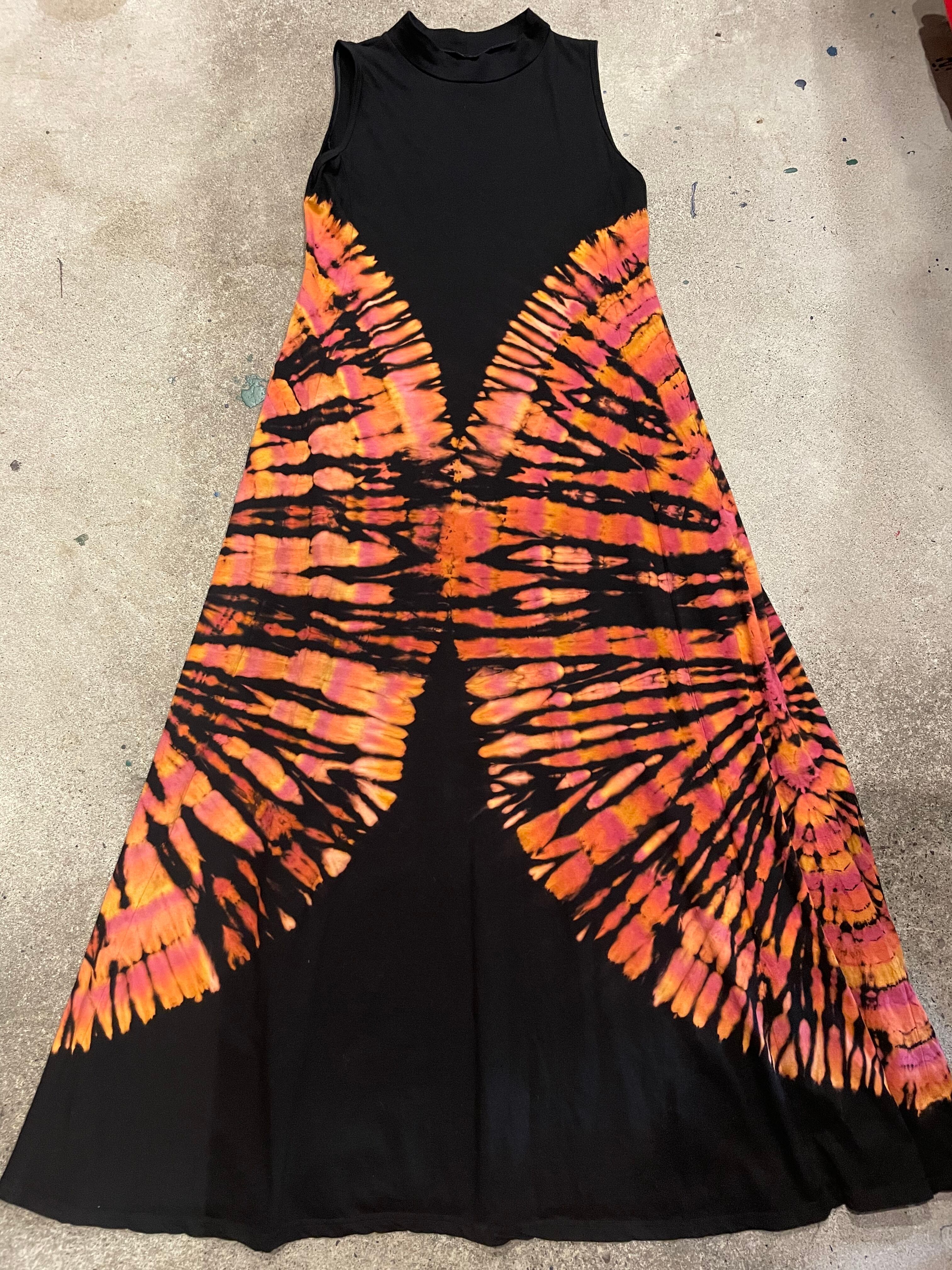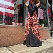黒地にピンク系の模様が万華鏡のようで素敵なワンピースです。