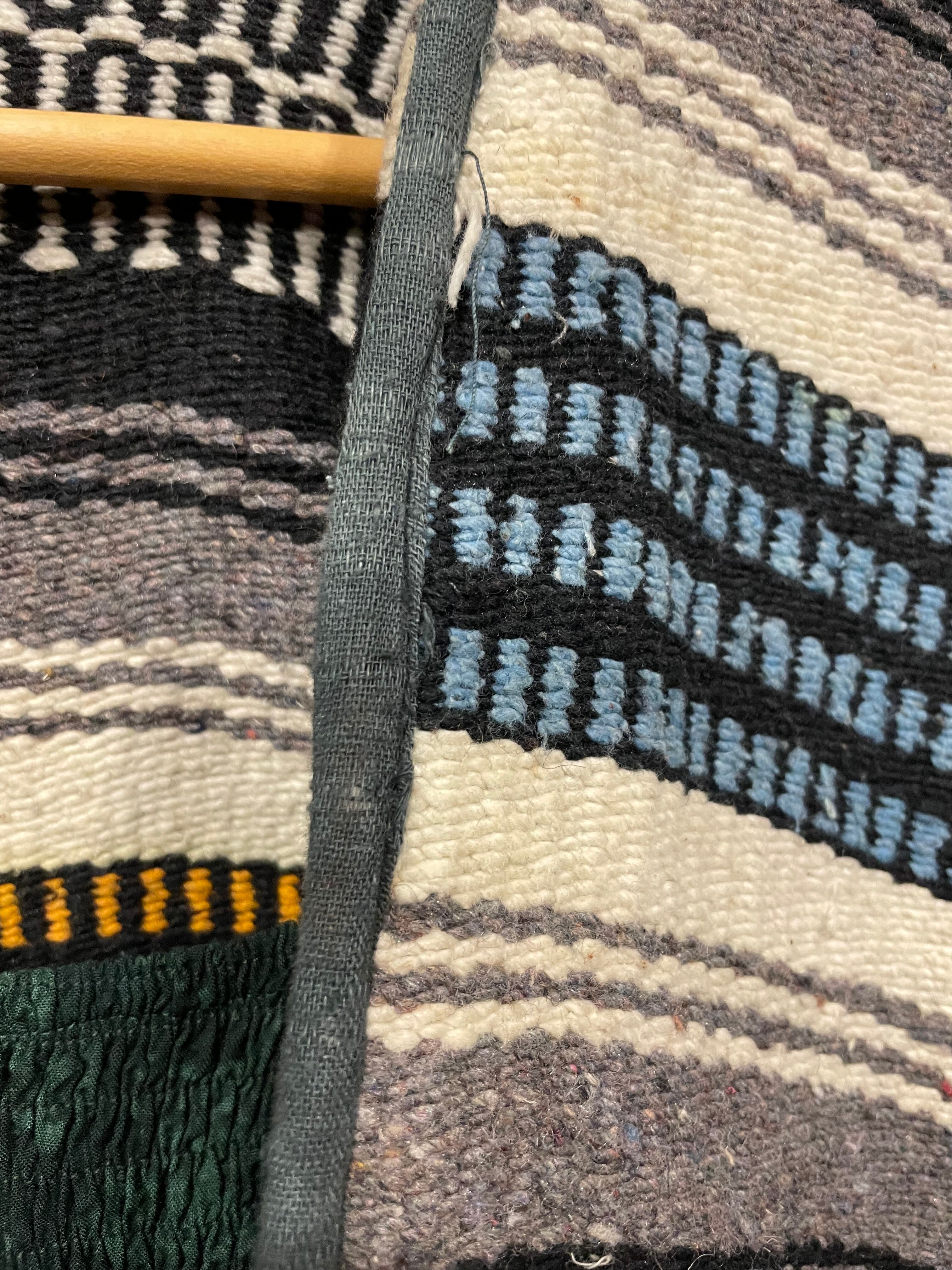 水色の色移りや全体的な毛羽立ち、パイピングの擦れ等全体的にかなりダメージのある商品ですので古着にご理解のある方のご購入をお願い致します。