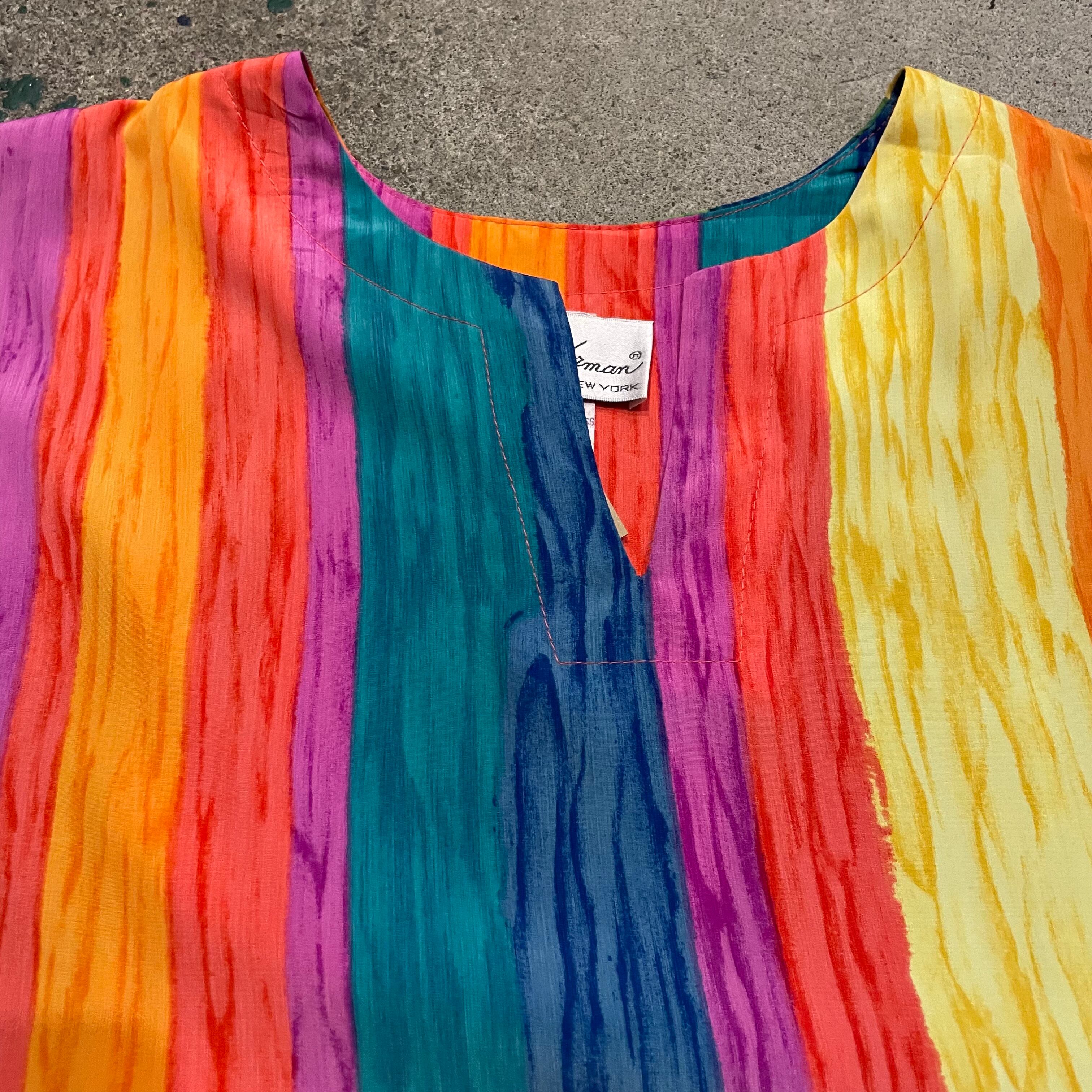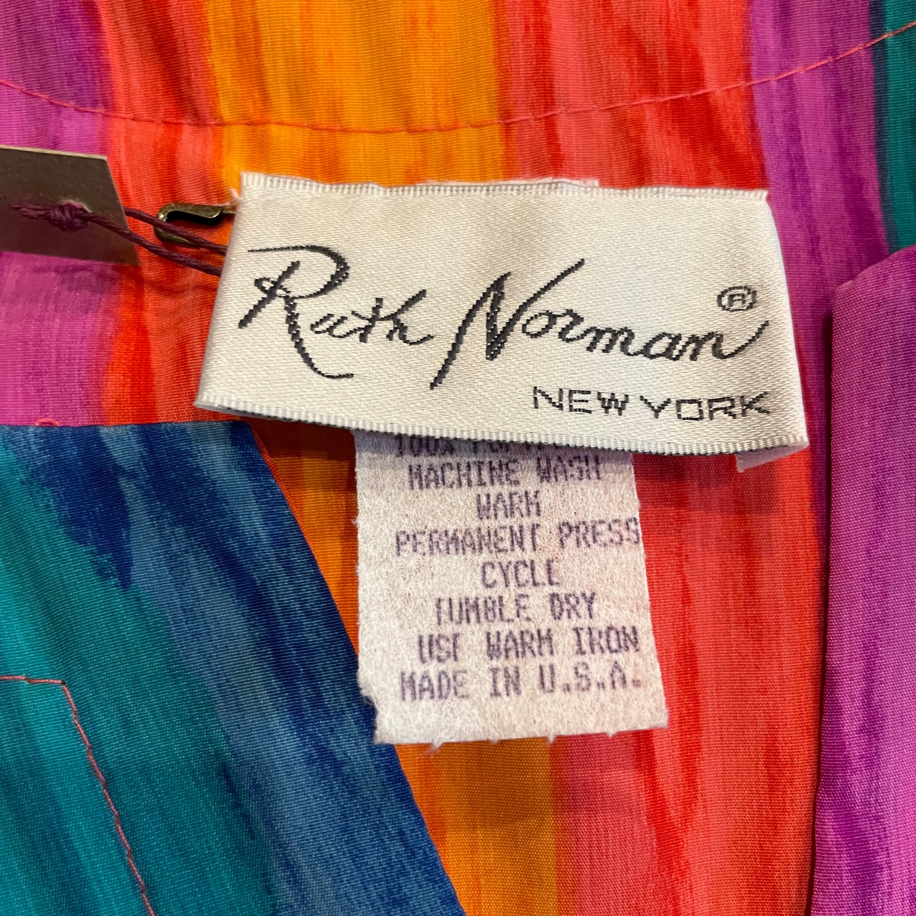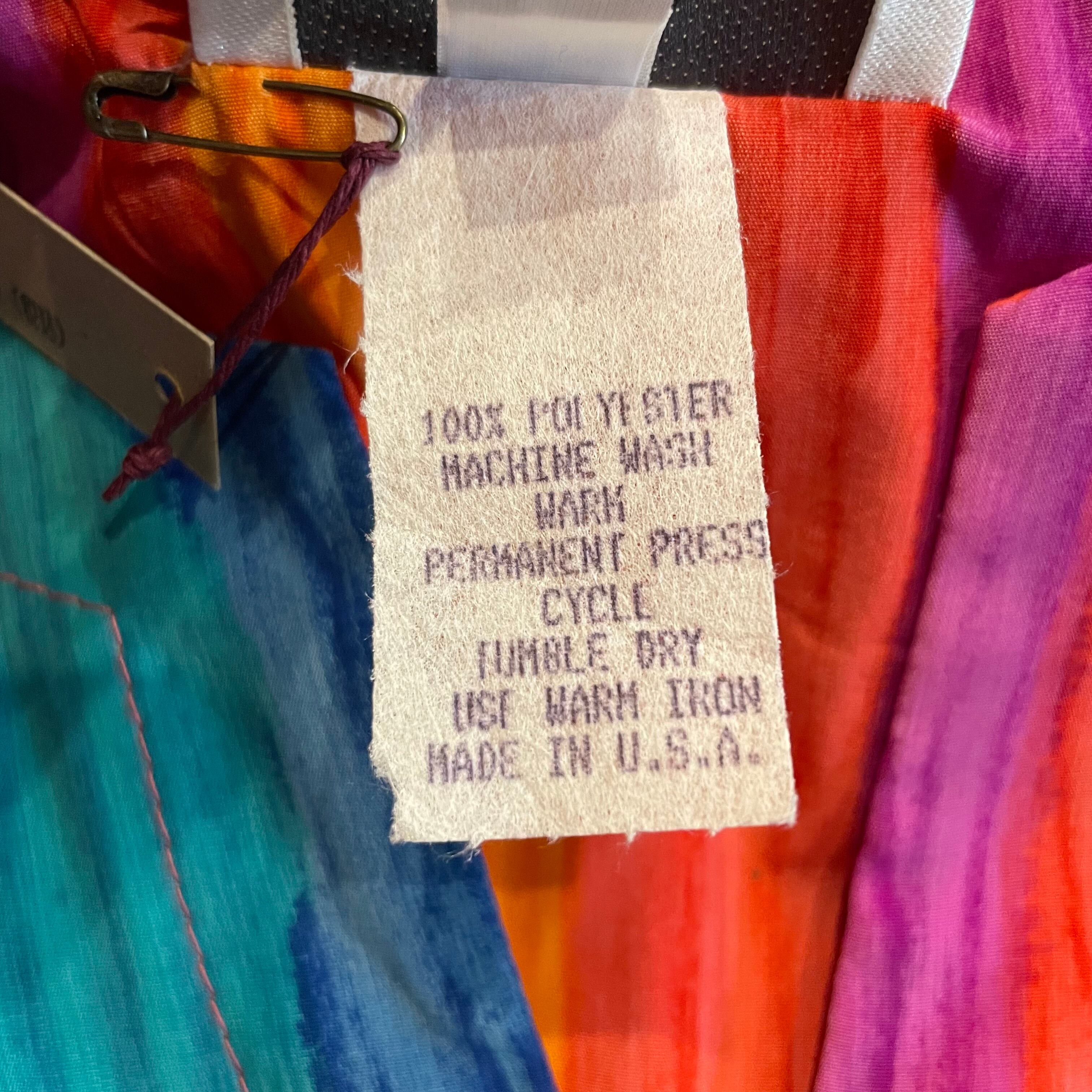 薄手のさらっとしたポリエステルの発色がきれいでインパクトがあります。ポップな印象になりそうですが、襟ぐりにスリットが入っていたり、シルエットが大人っぽいのですっきり着て頂けそうな一着です。