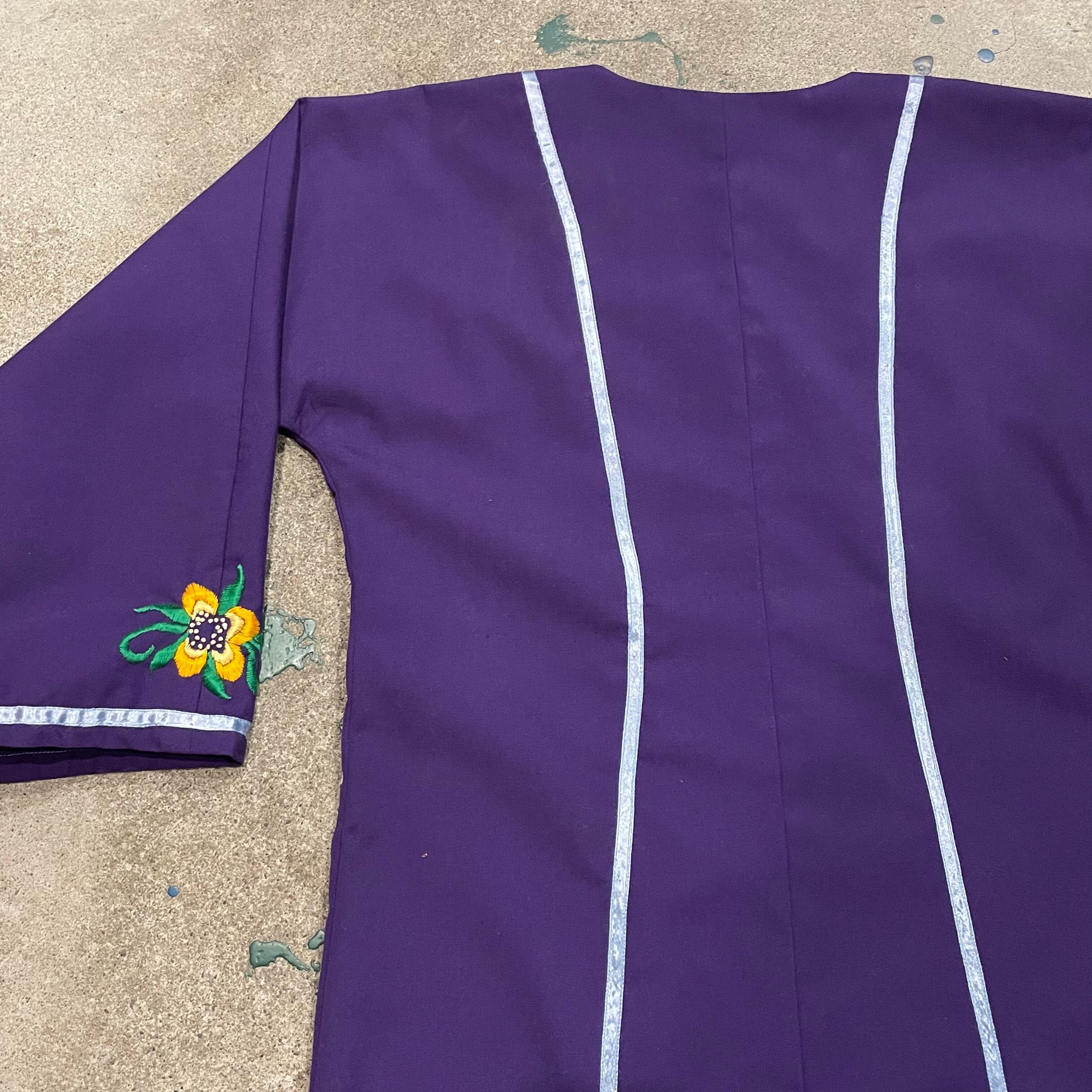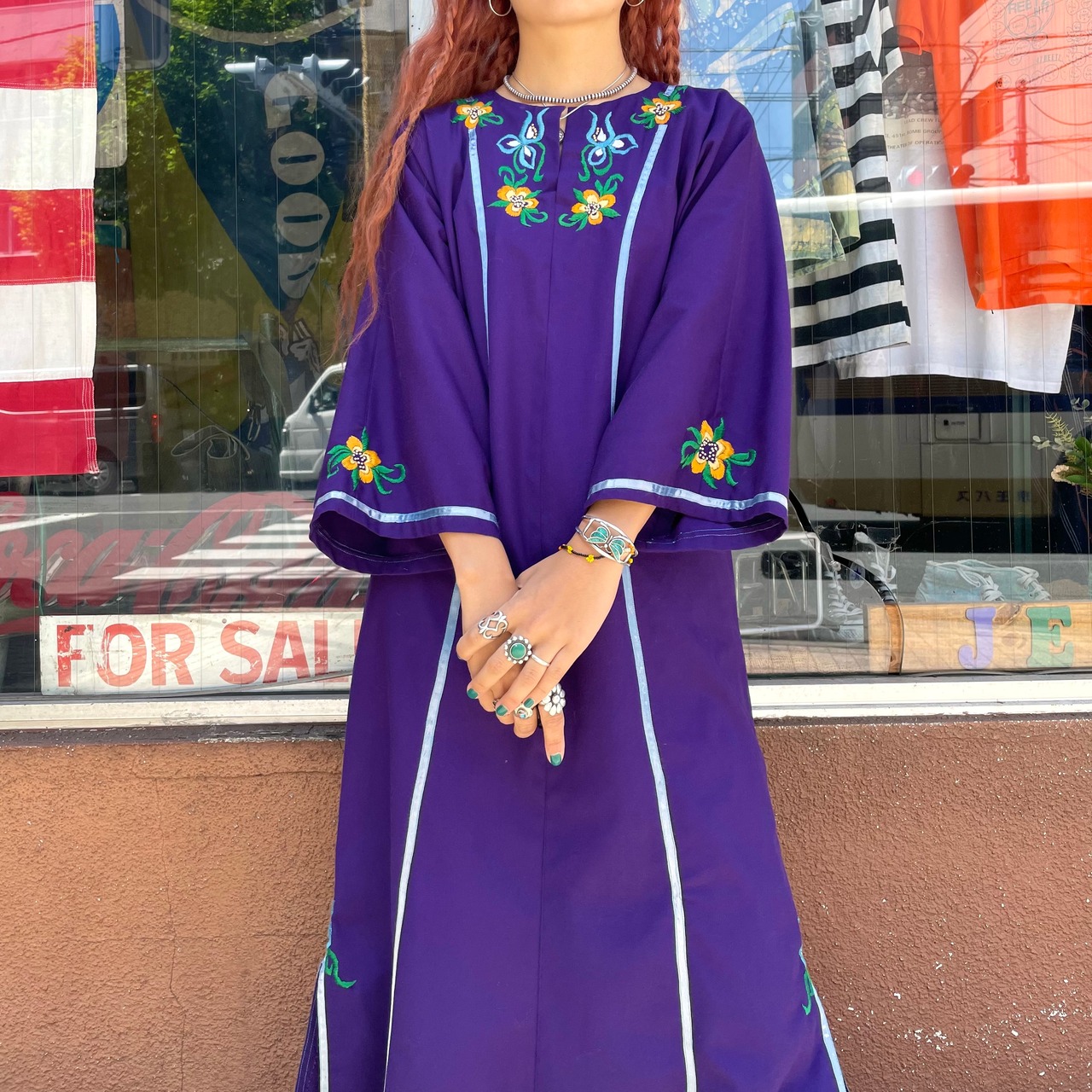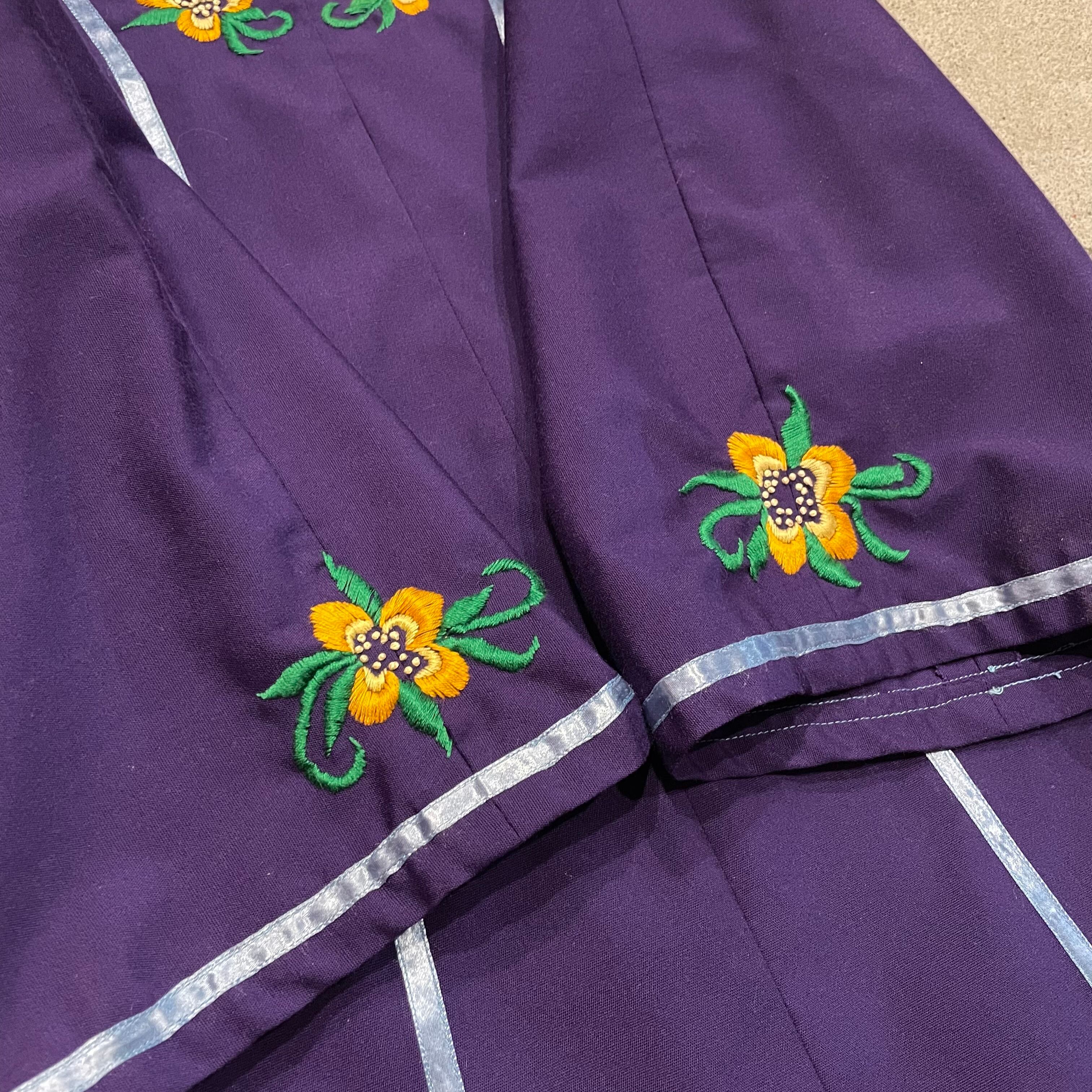 フレアスリーブで袖口にも刺繍が入っていたり、両サイドにスリットがあり水色のサテンリボンがポイントになっていて素敵です。