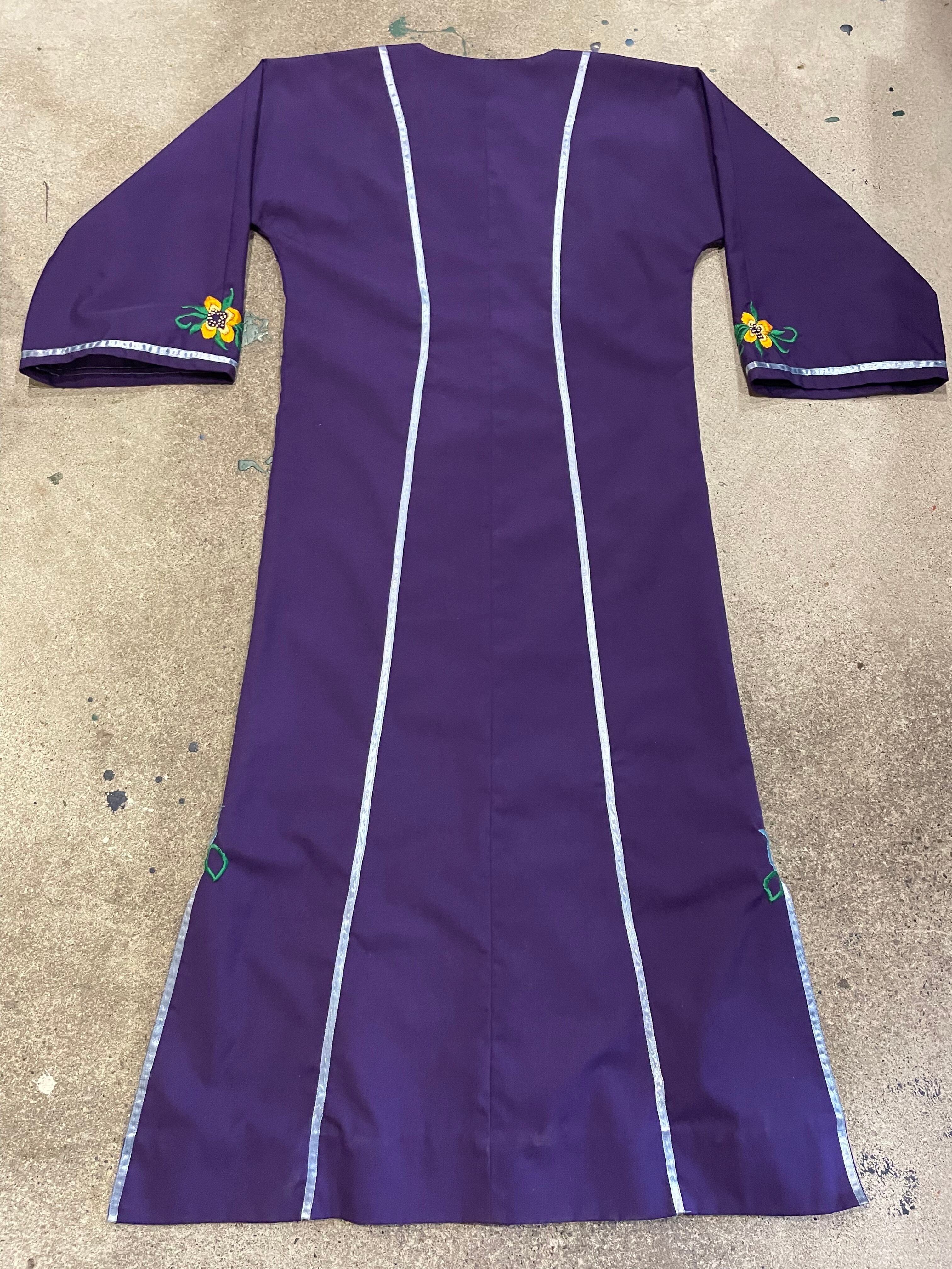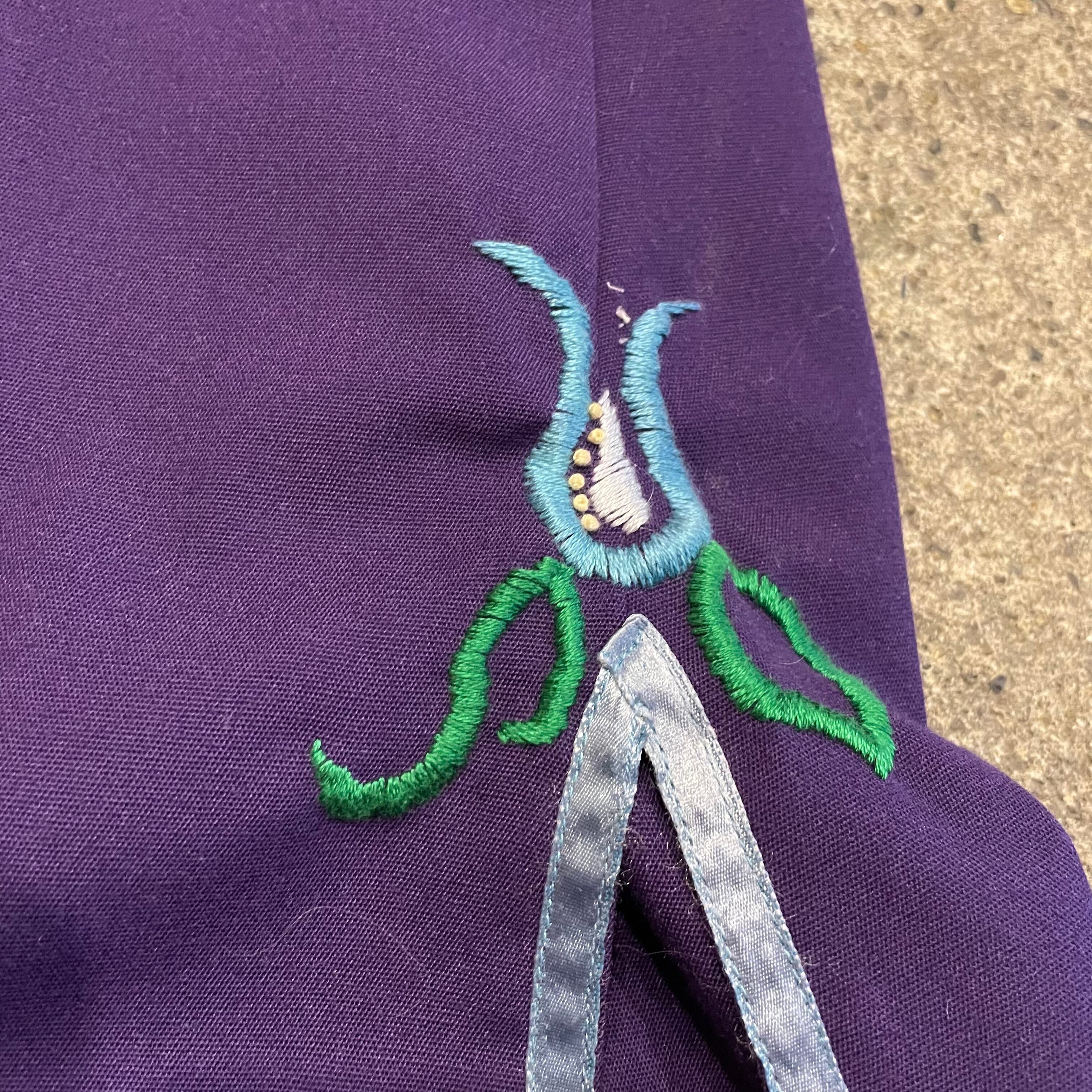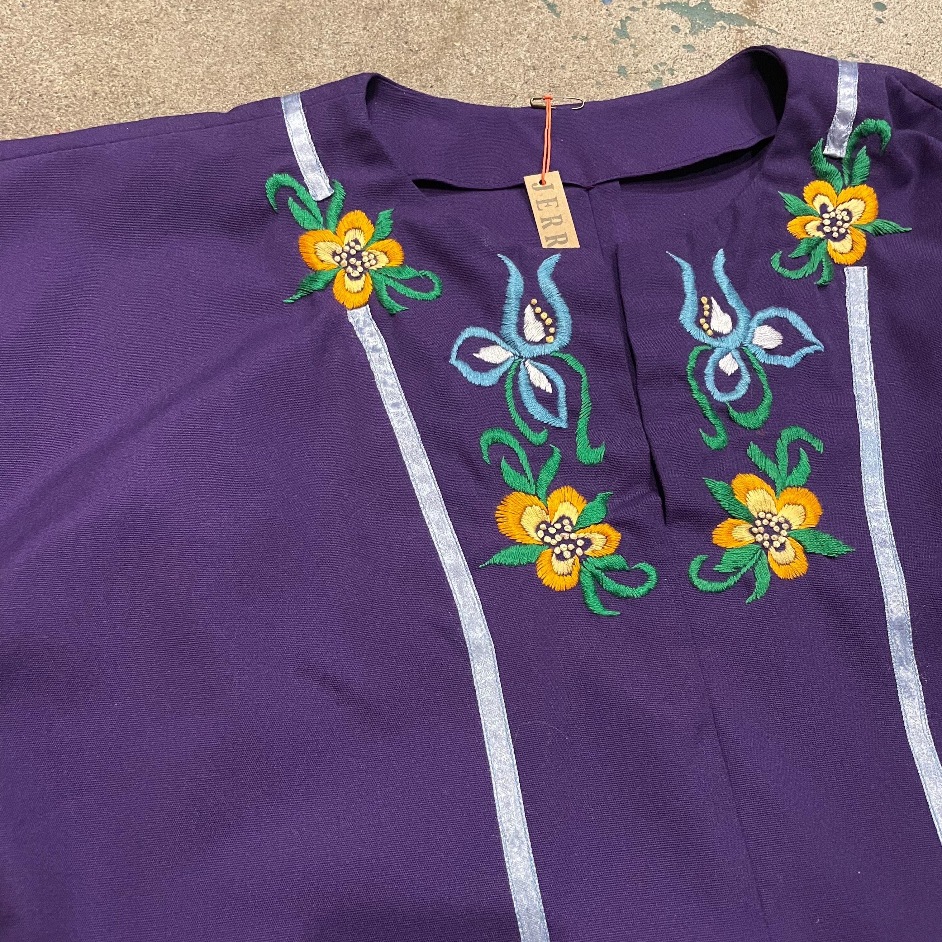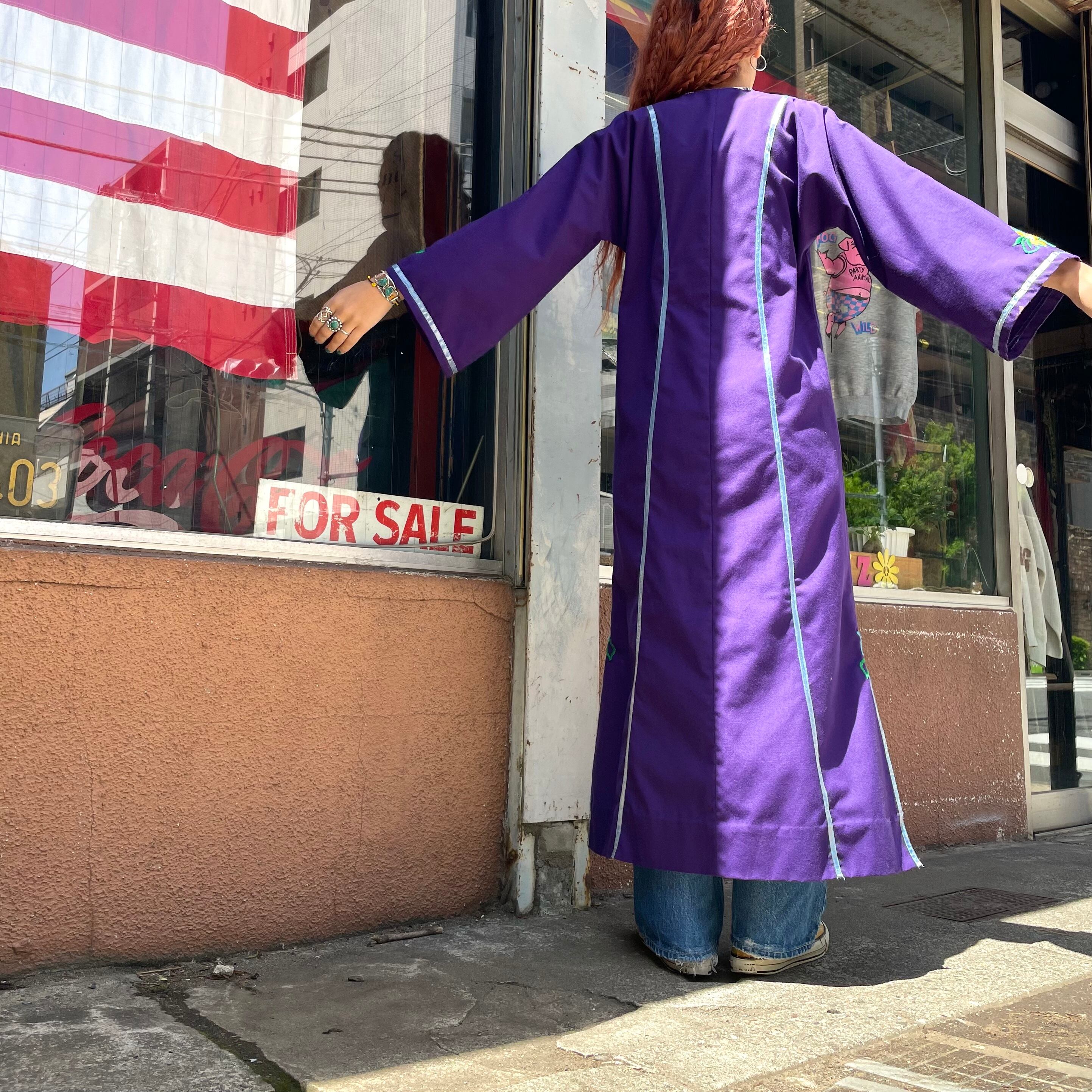 フレアスリーブで袖口にも刺繍が入っていたり、両サイドにスリットがあり水色のサテンリボンがポイントになっていて素敵です。