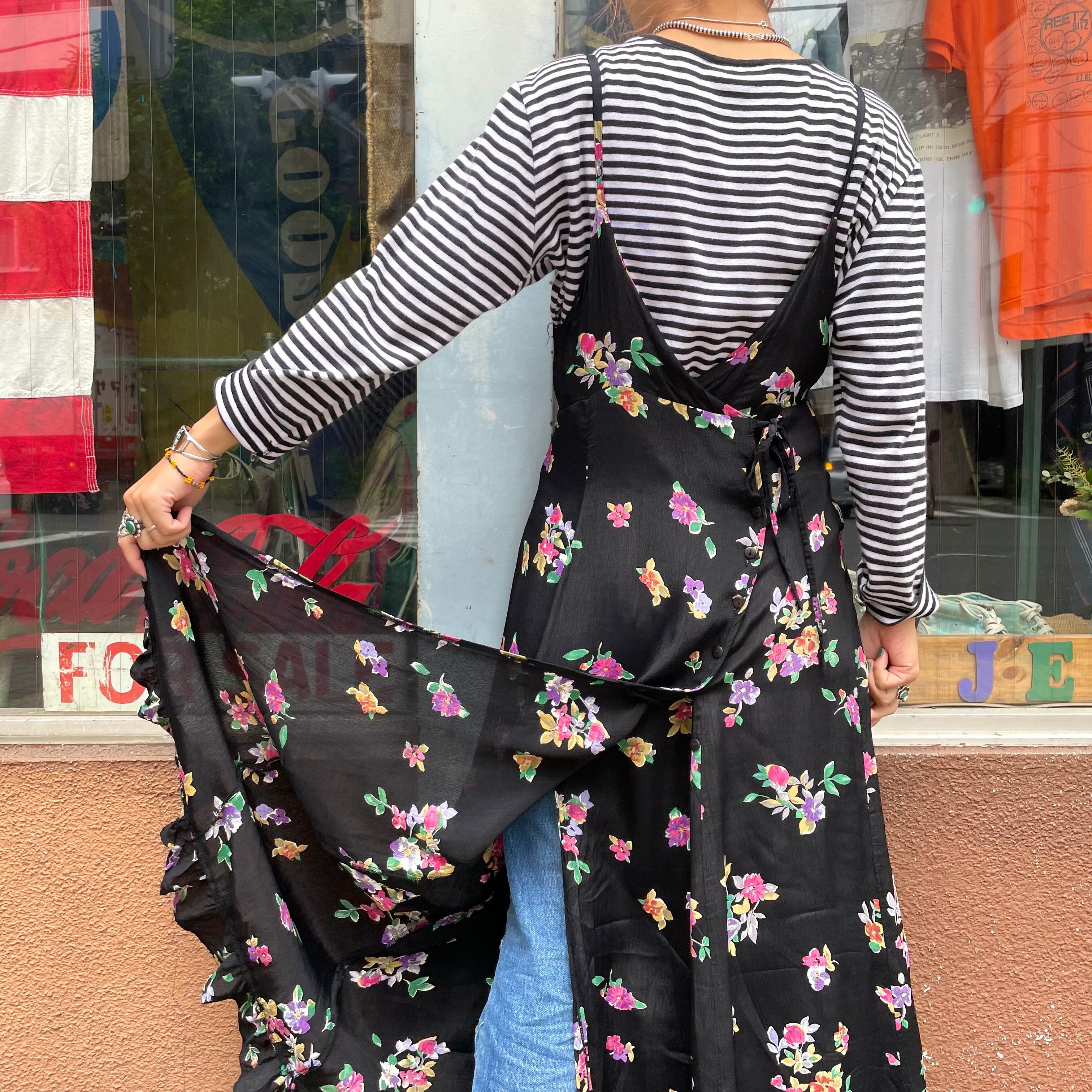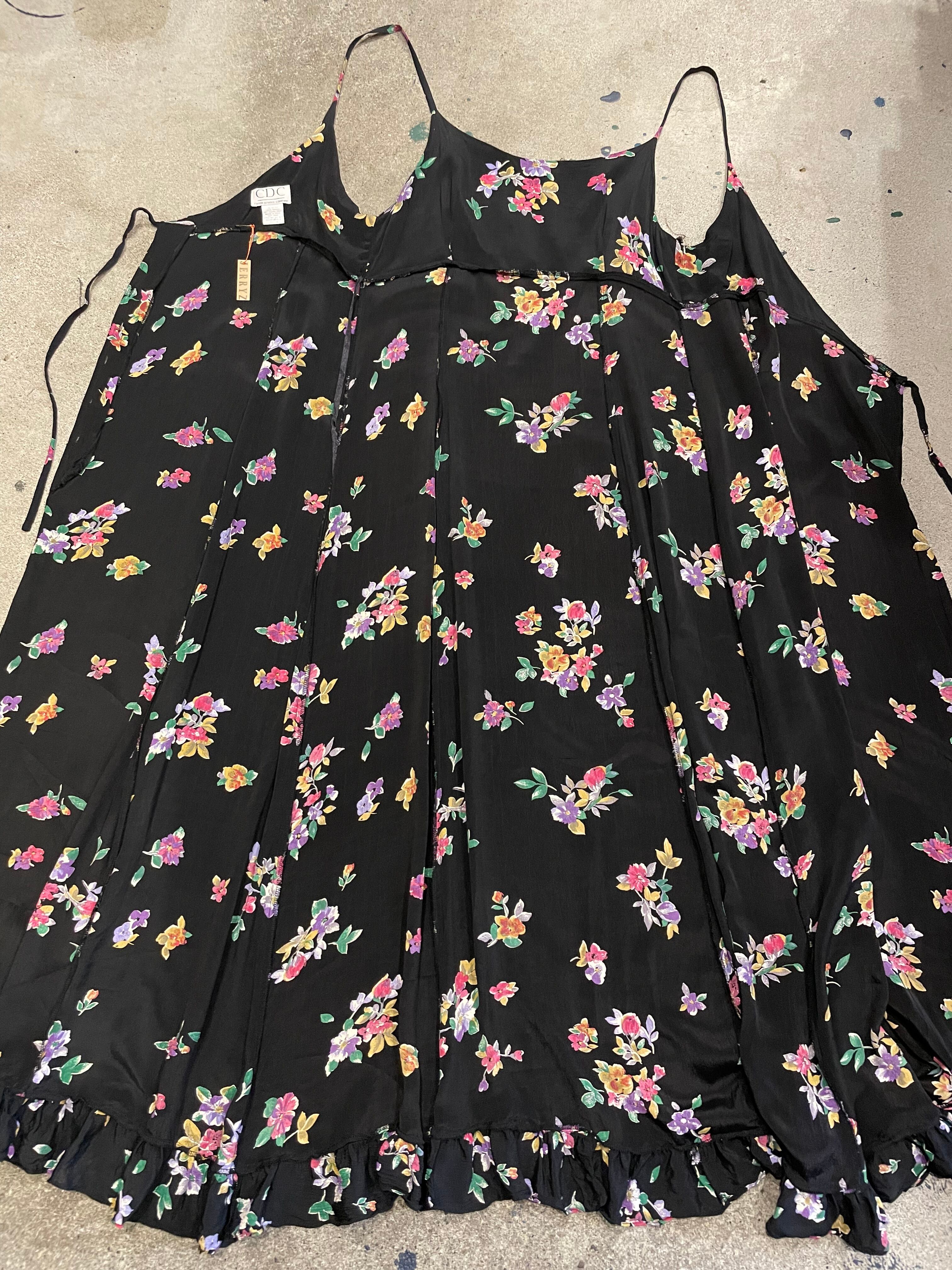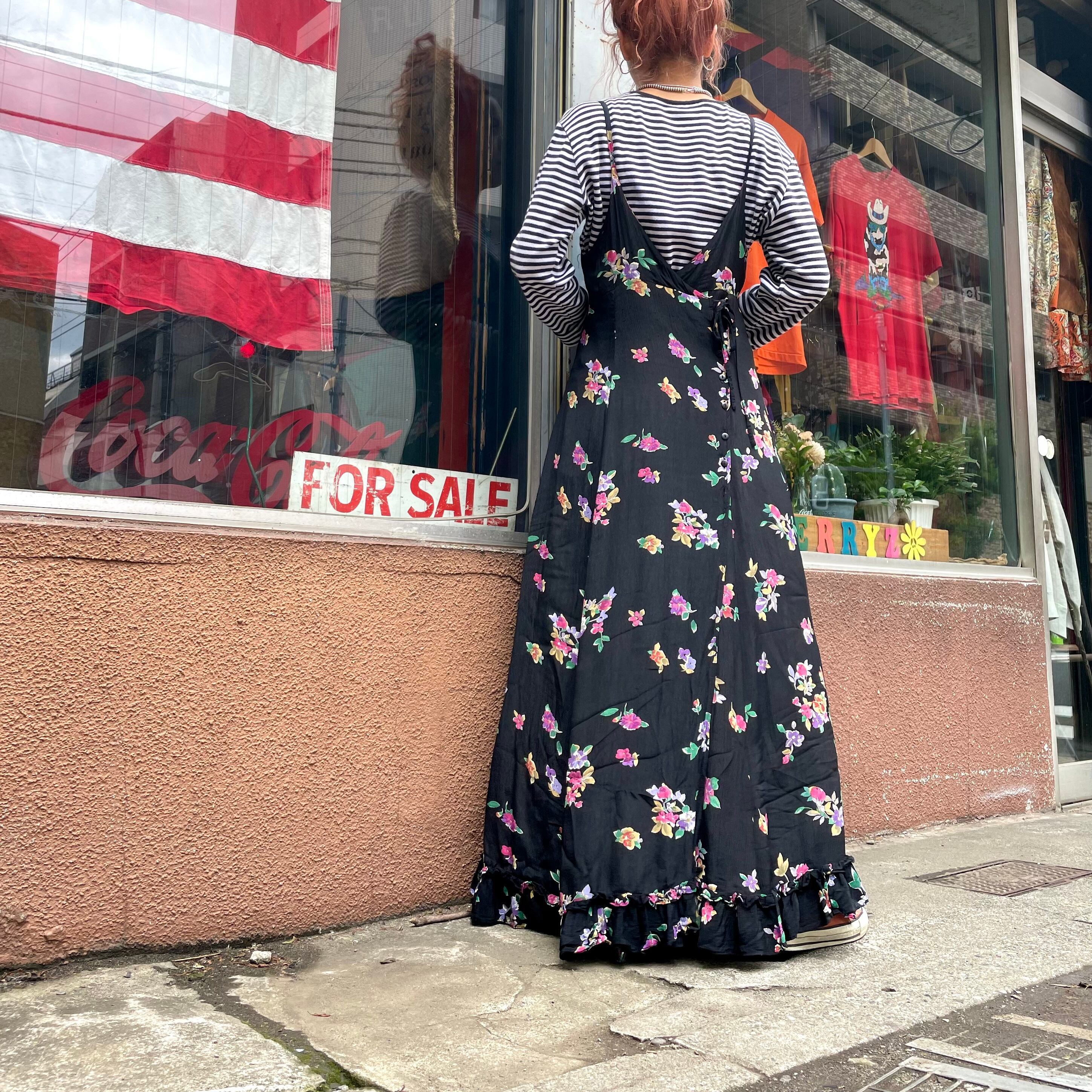 黒地に派手すぎない花柄がかわいいキャミソールワンピースです。