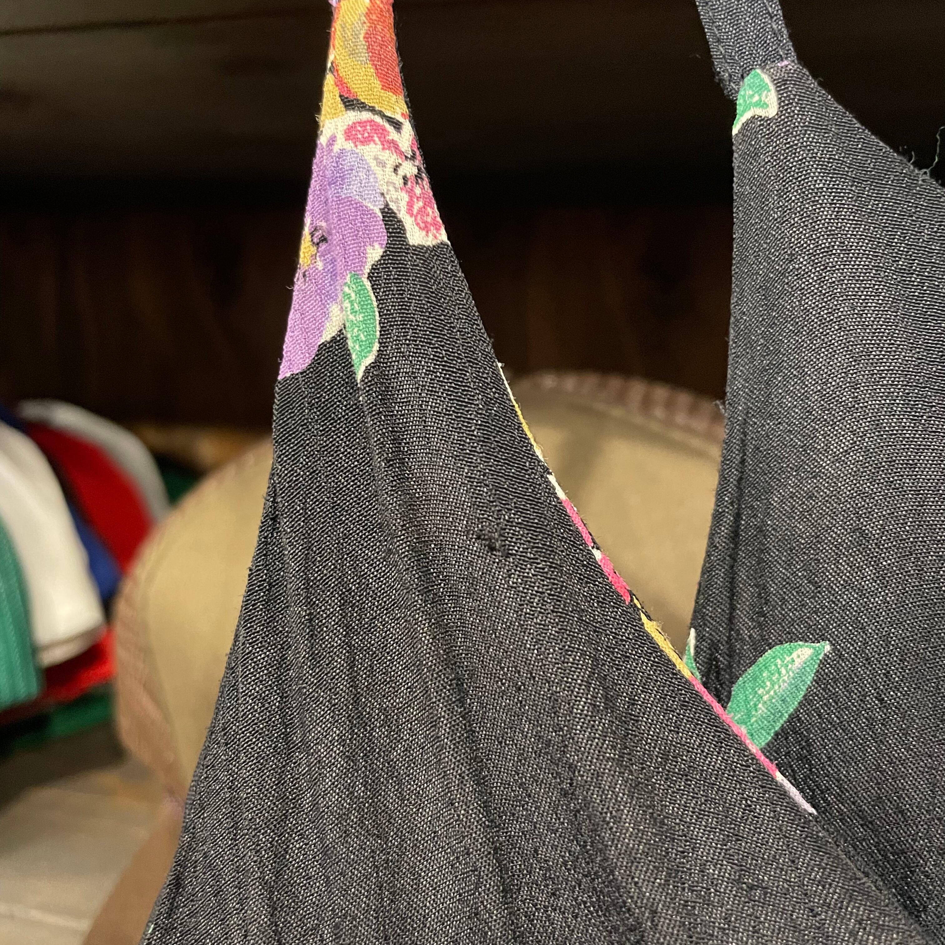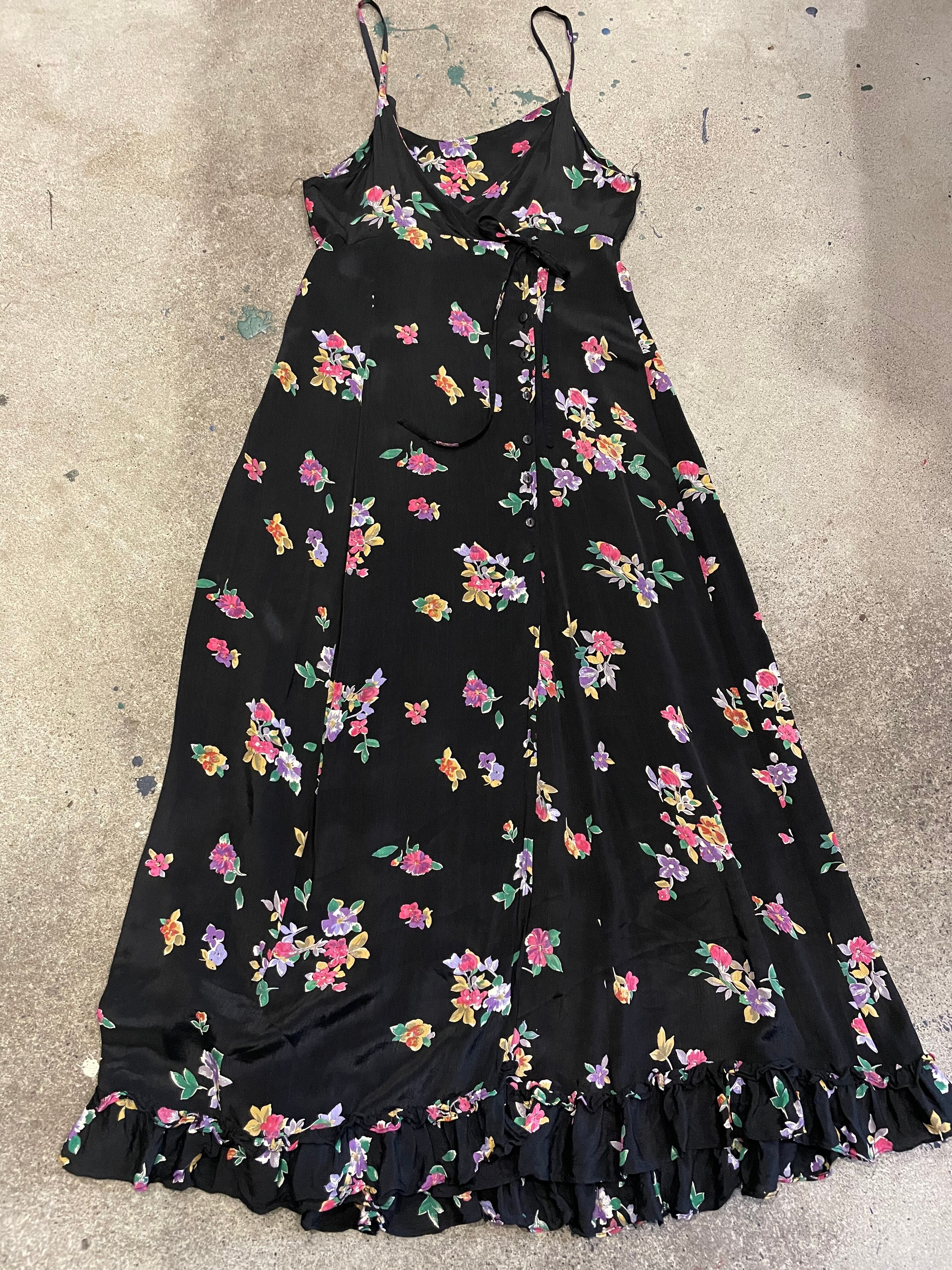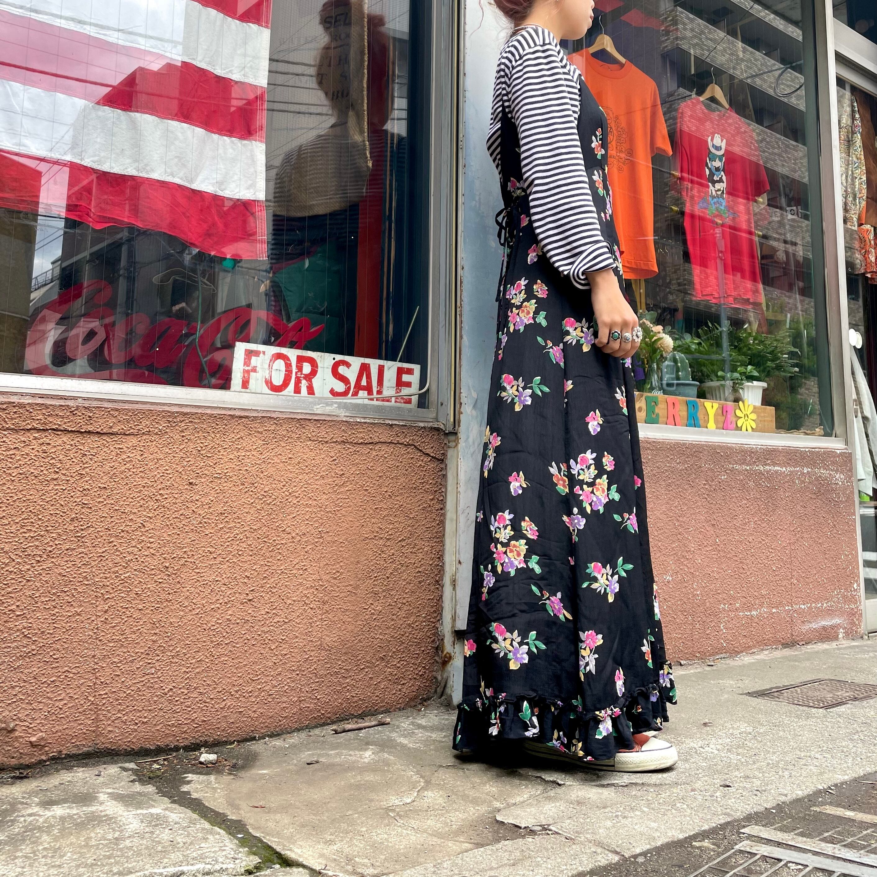 黒地に派手すぎない花柄がかわいいキャミソールワンピースです。
