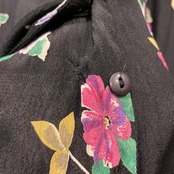 背中で合わせて着る仕組みで紐が2箇所、ボタンがお尻あたりまで付いていますので、ボタンを留めずに紐を緩めに結んでエプロンのように着てみたりいろいろな着方が楽しめそうな一着です。
