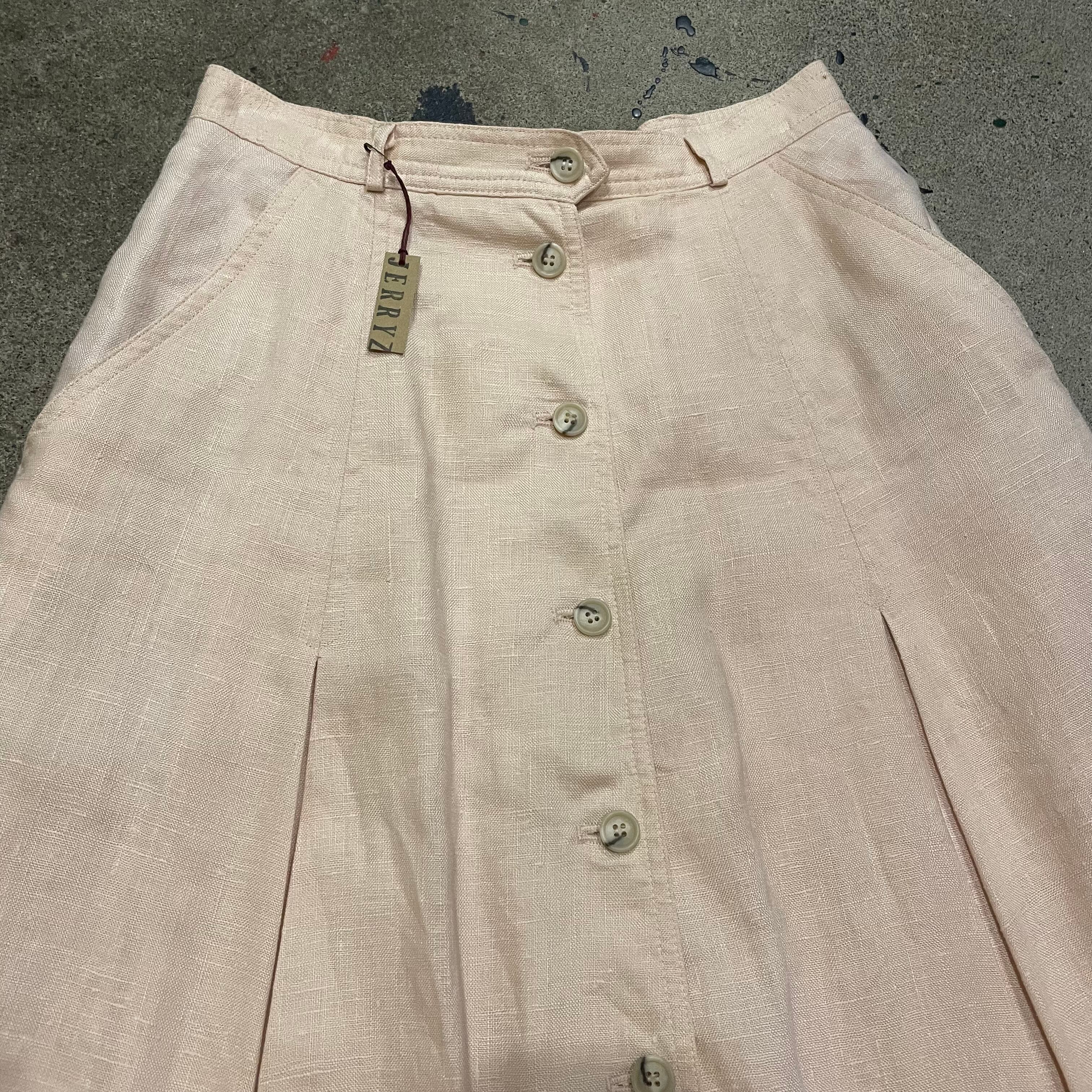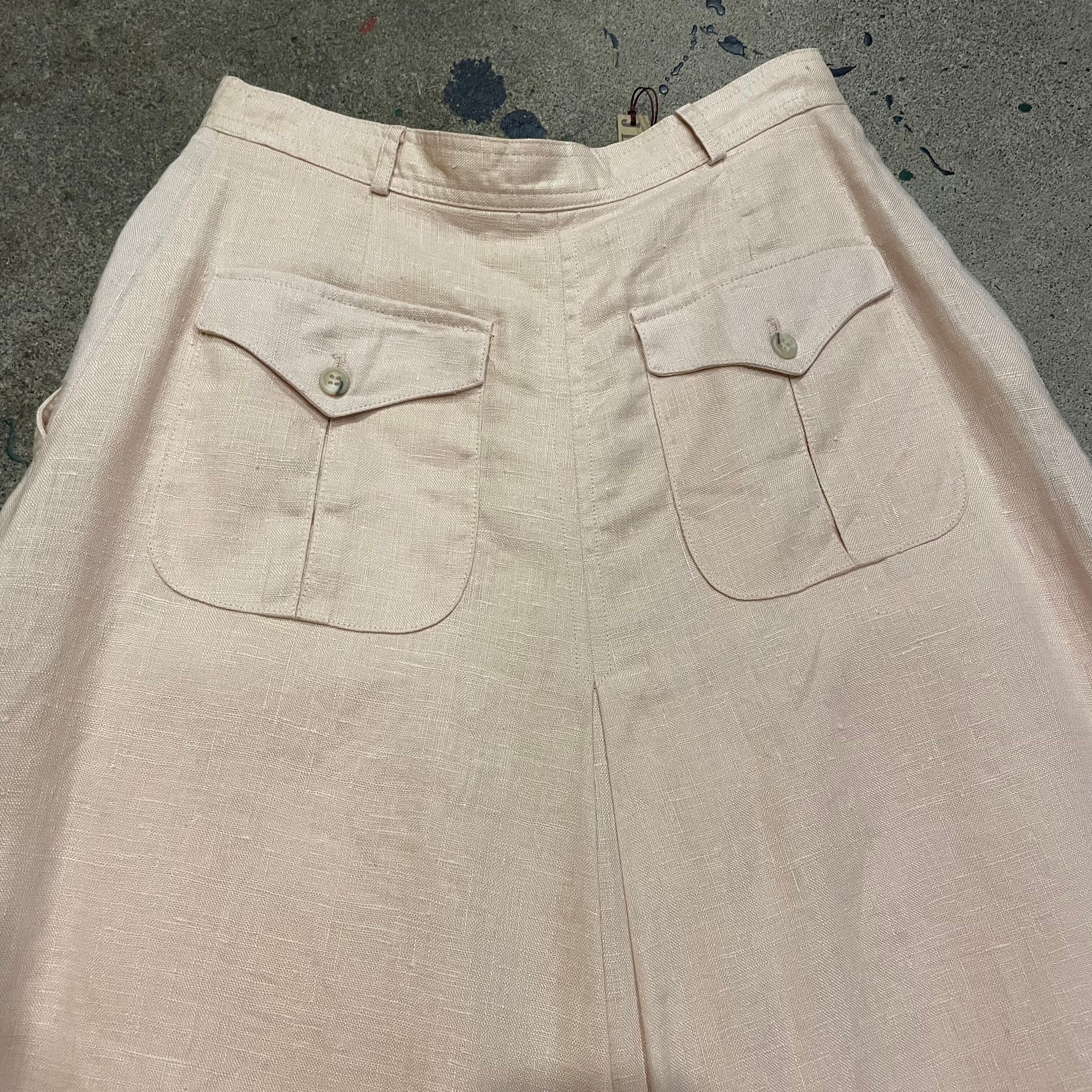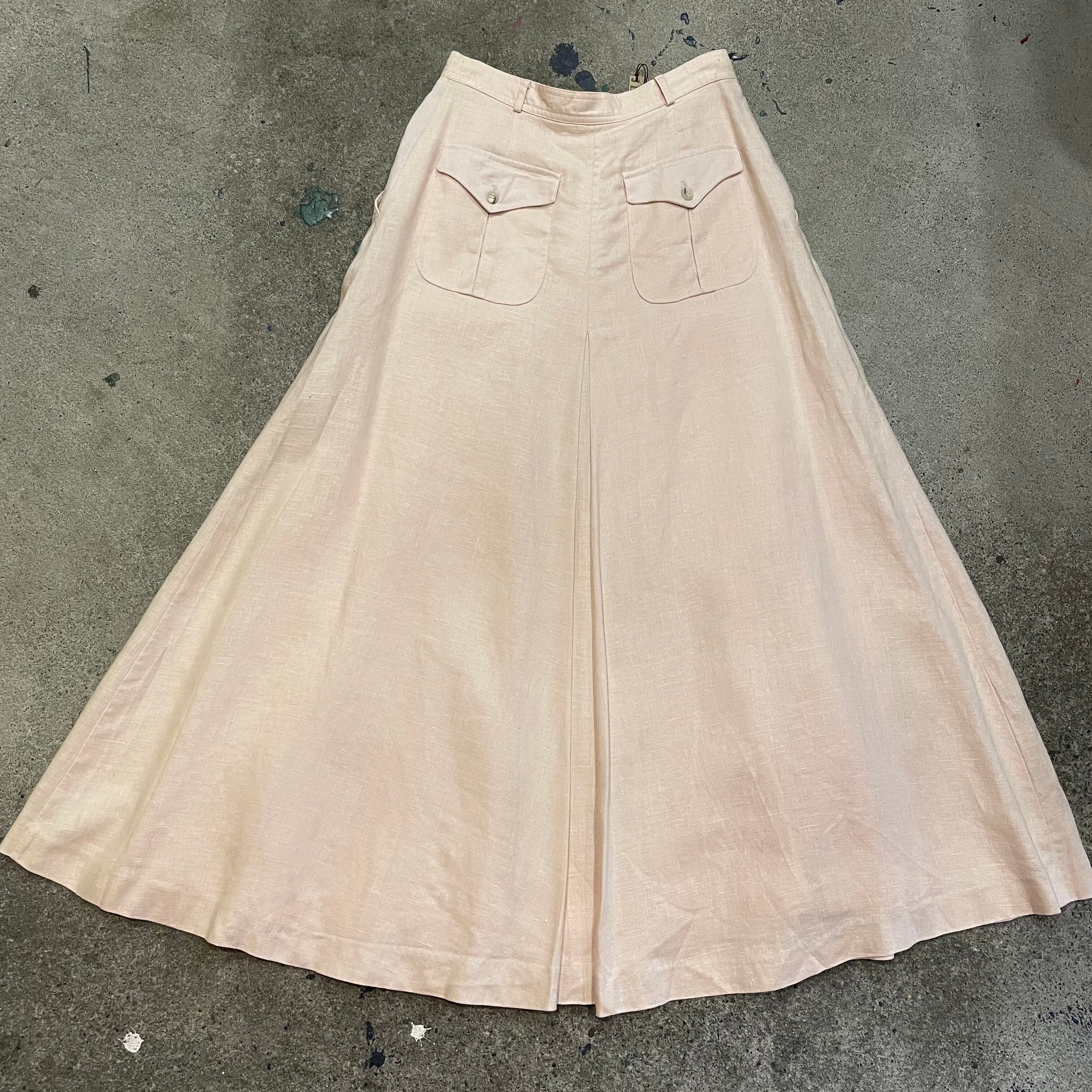 フロントにボタンが並んでおり、前も後ろもプリーツで、フラップ付きのポケットが付いていたり、上品なデザインだと思います。