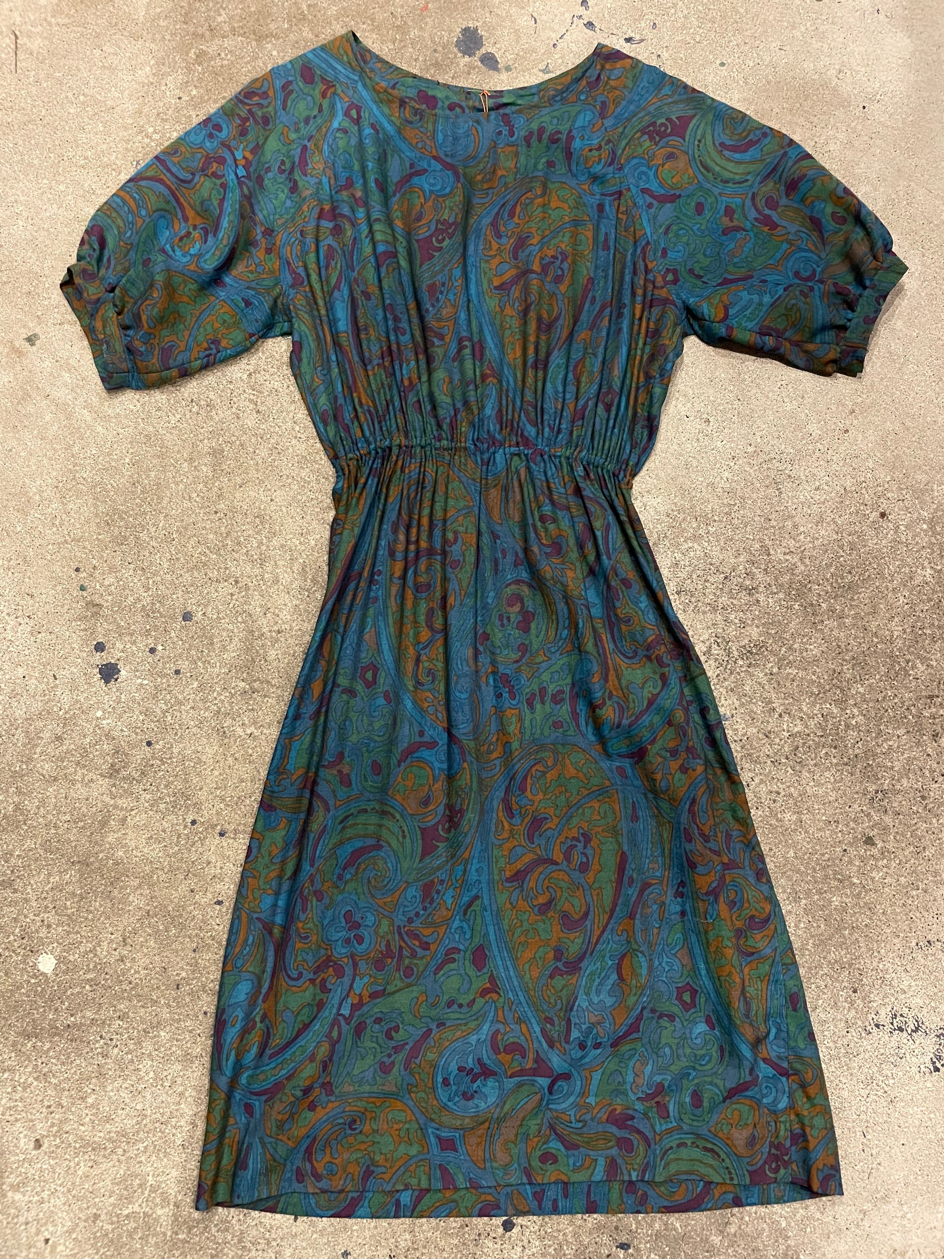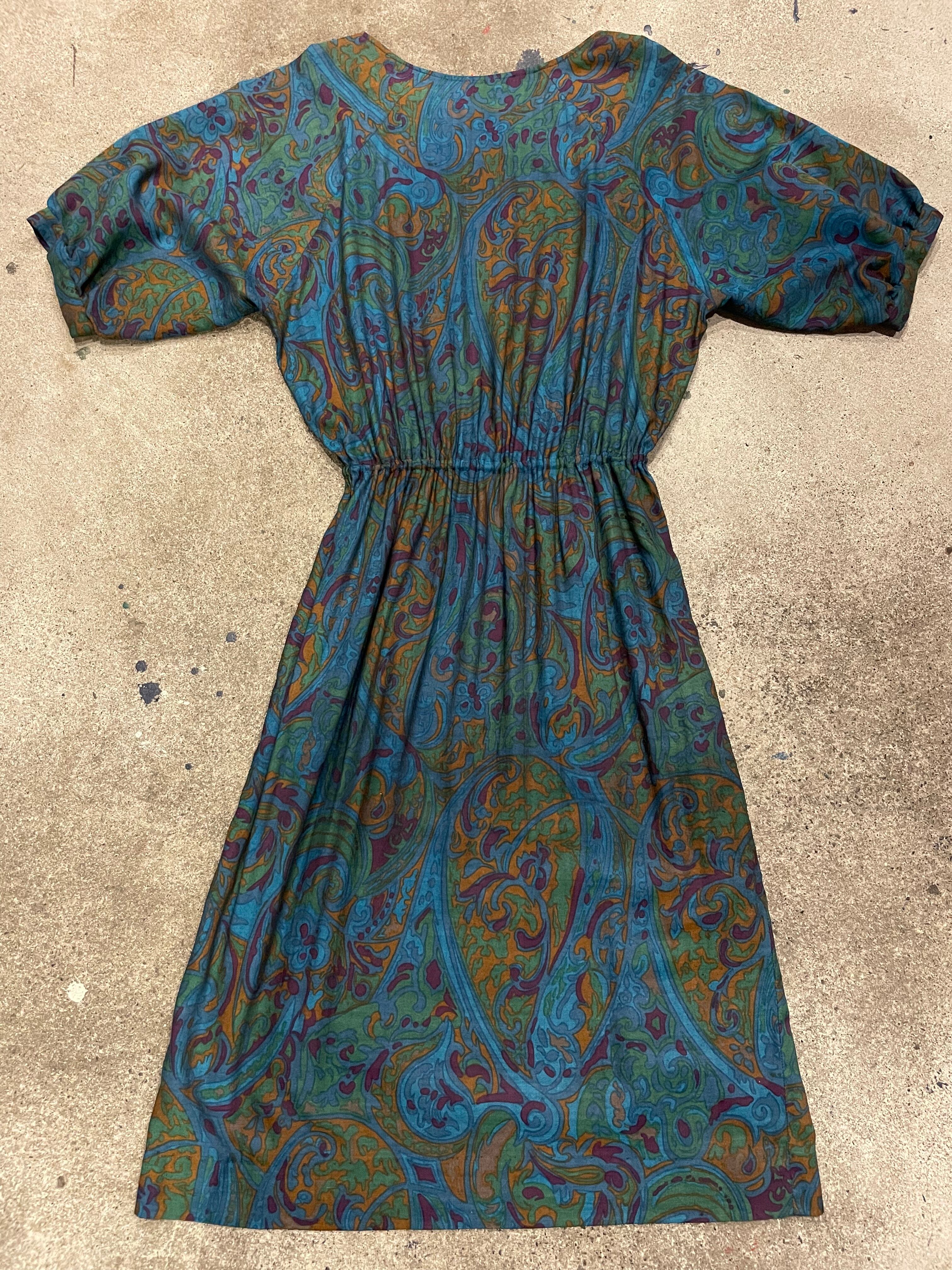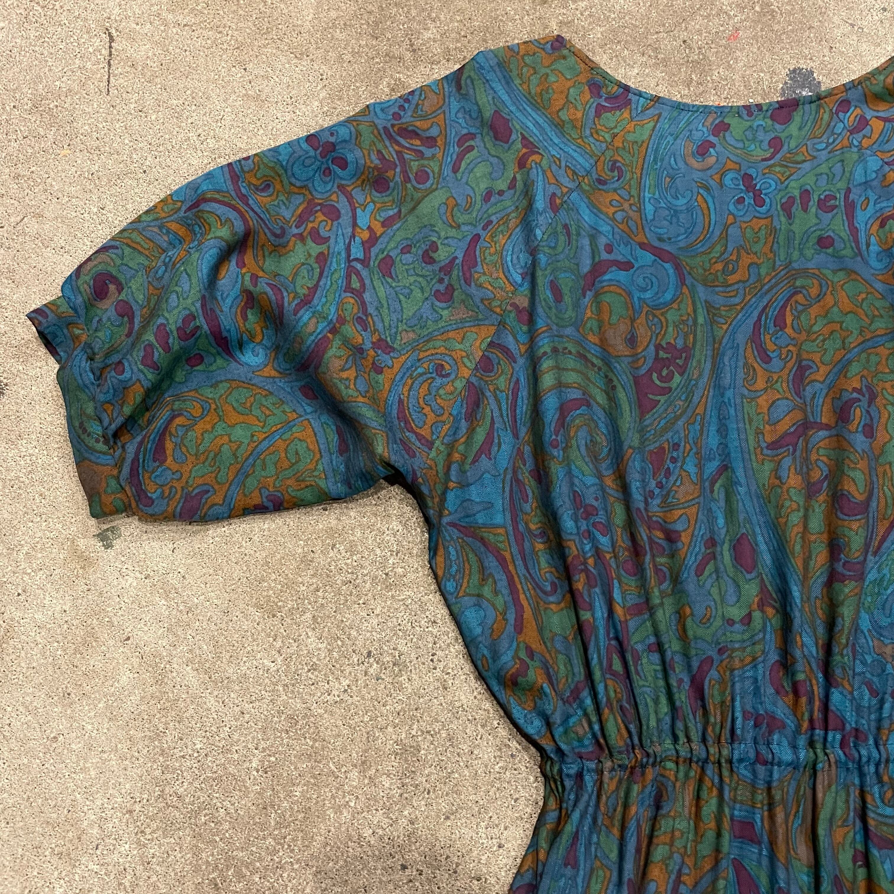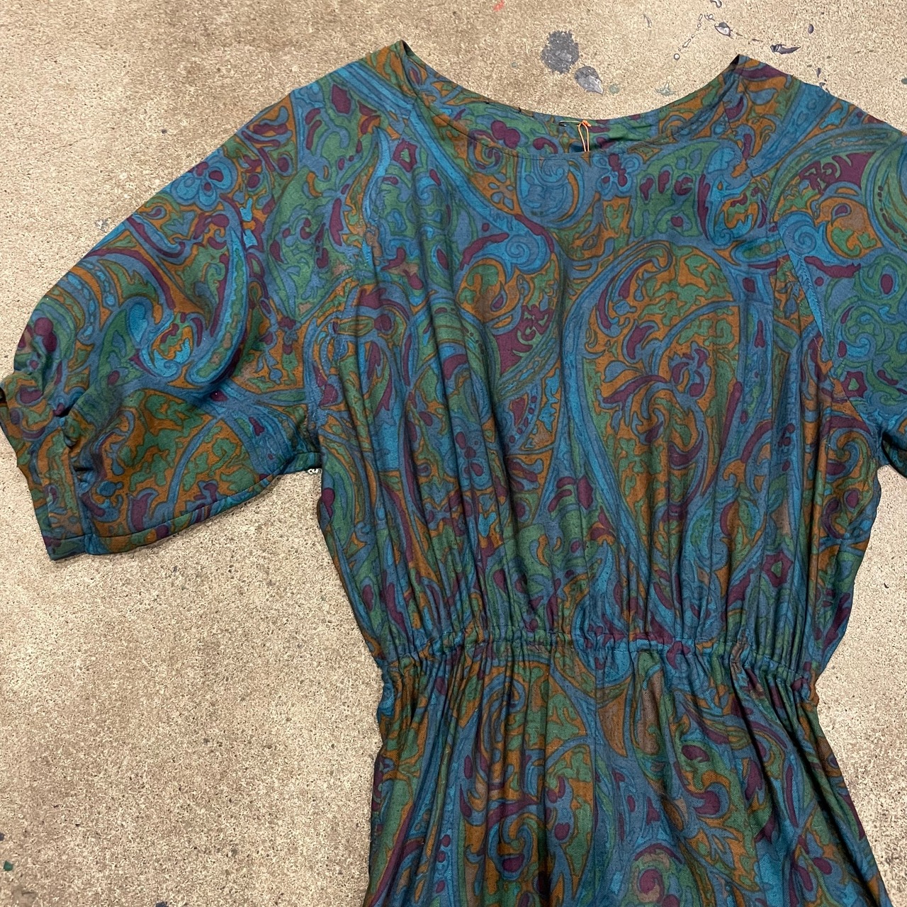 おそらくハンドメイドのもので、ラグランスリーブでパフスリーブで五分丈の感じや襟ぐりの広さもこの独特の色味や柄に合っていて素敵です。