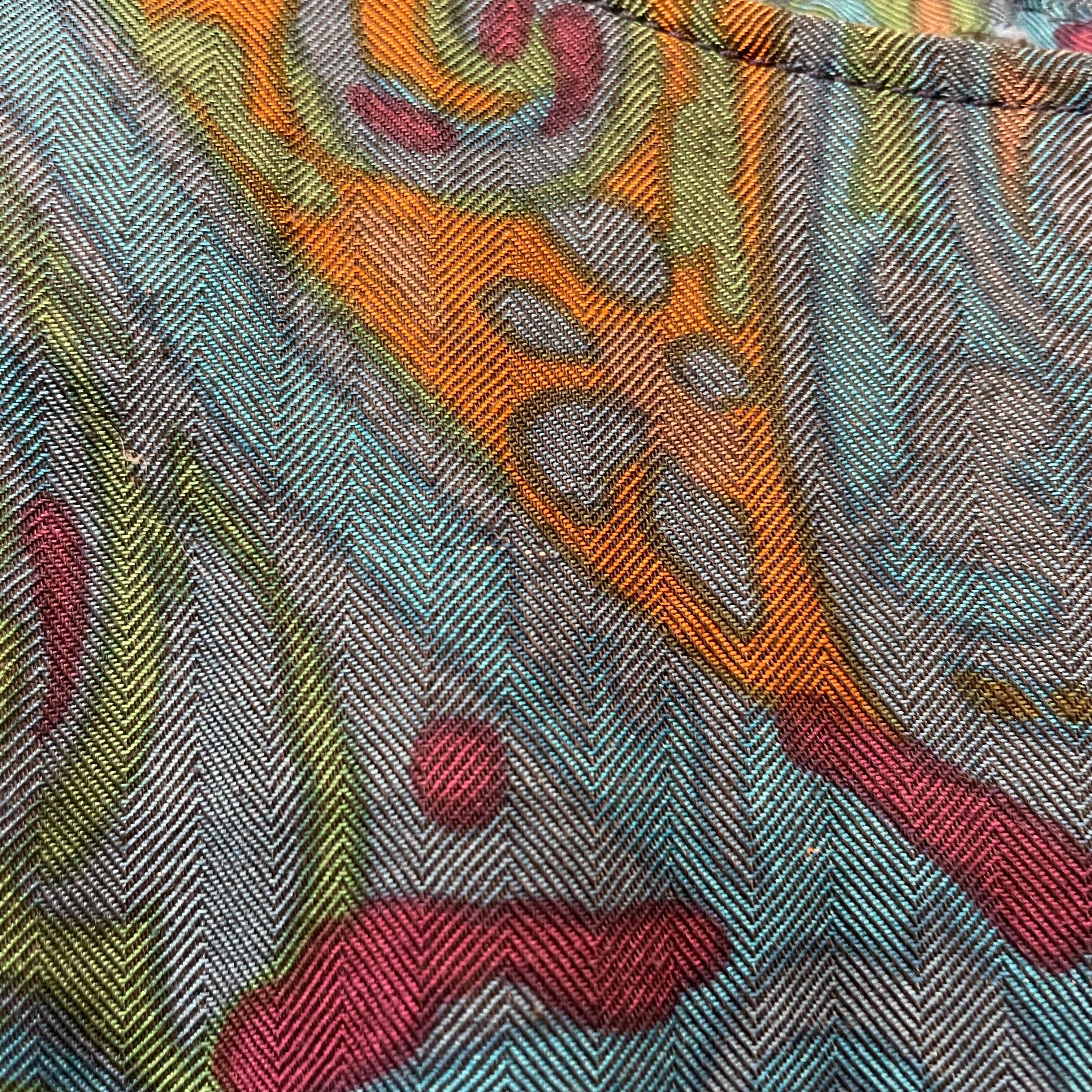 暗めなトーンの激しめな柄がなんとも魅力的で、ムードのある一着だと思います。