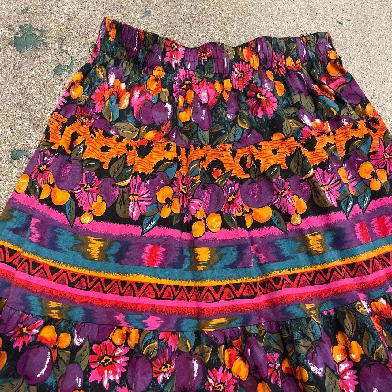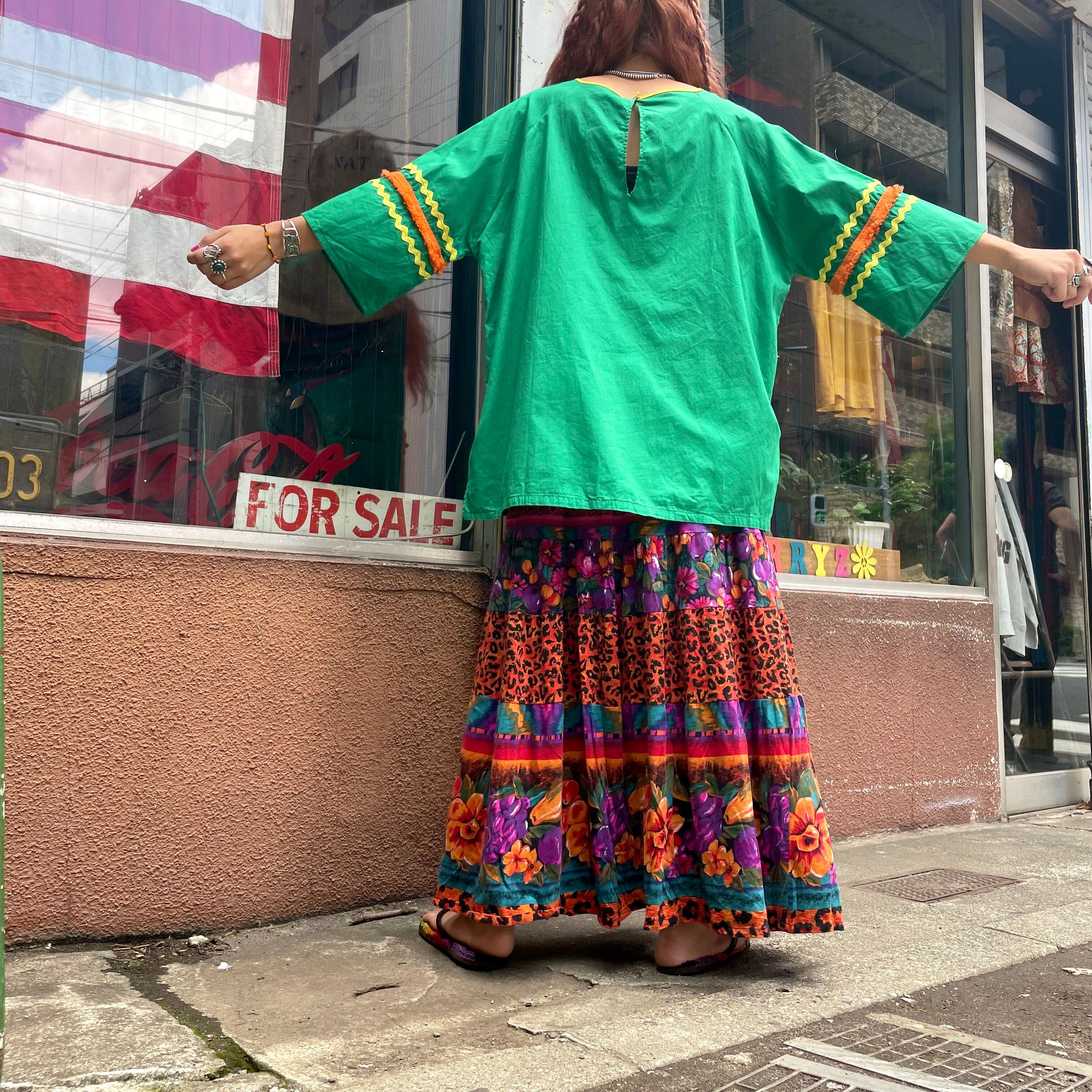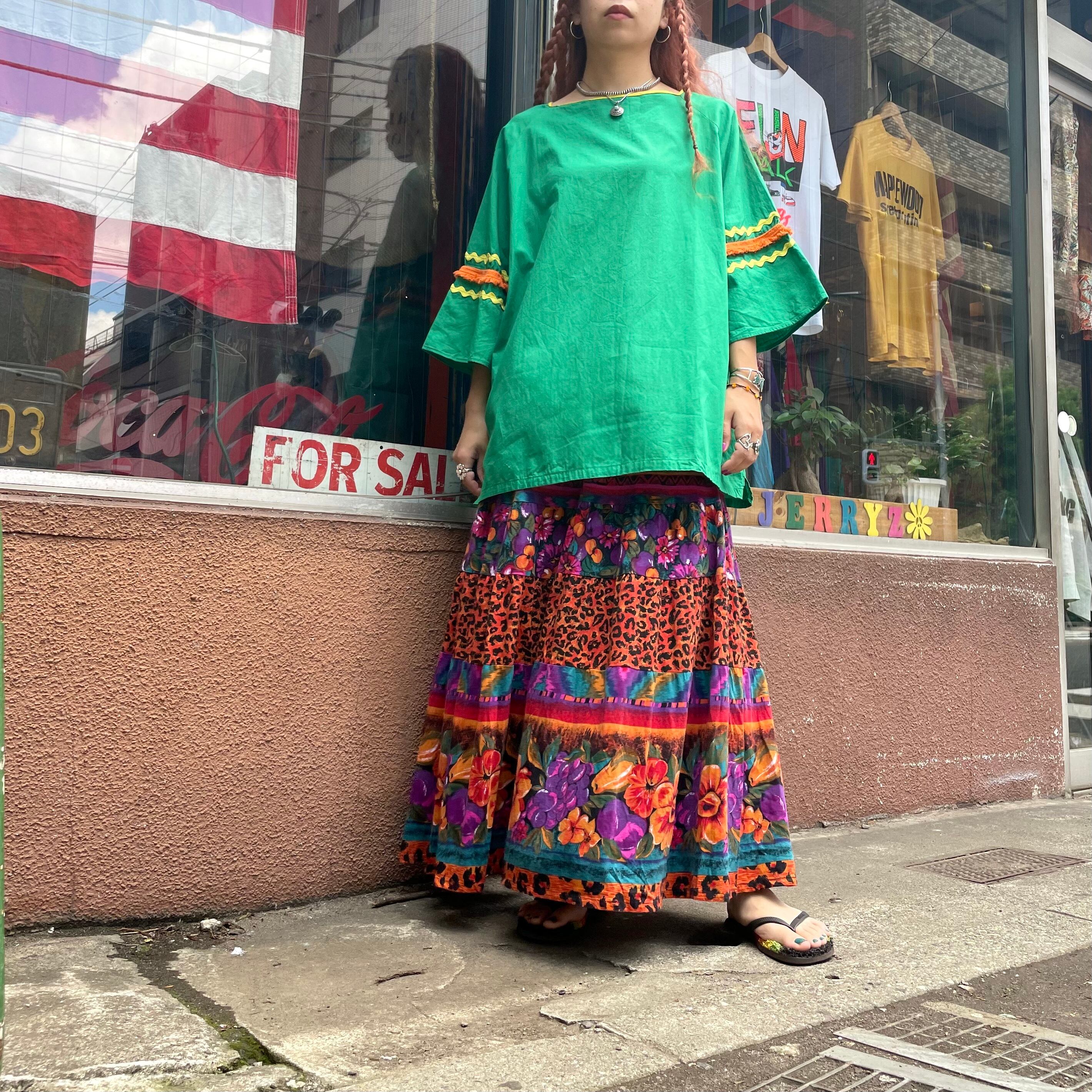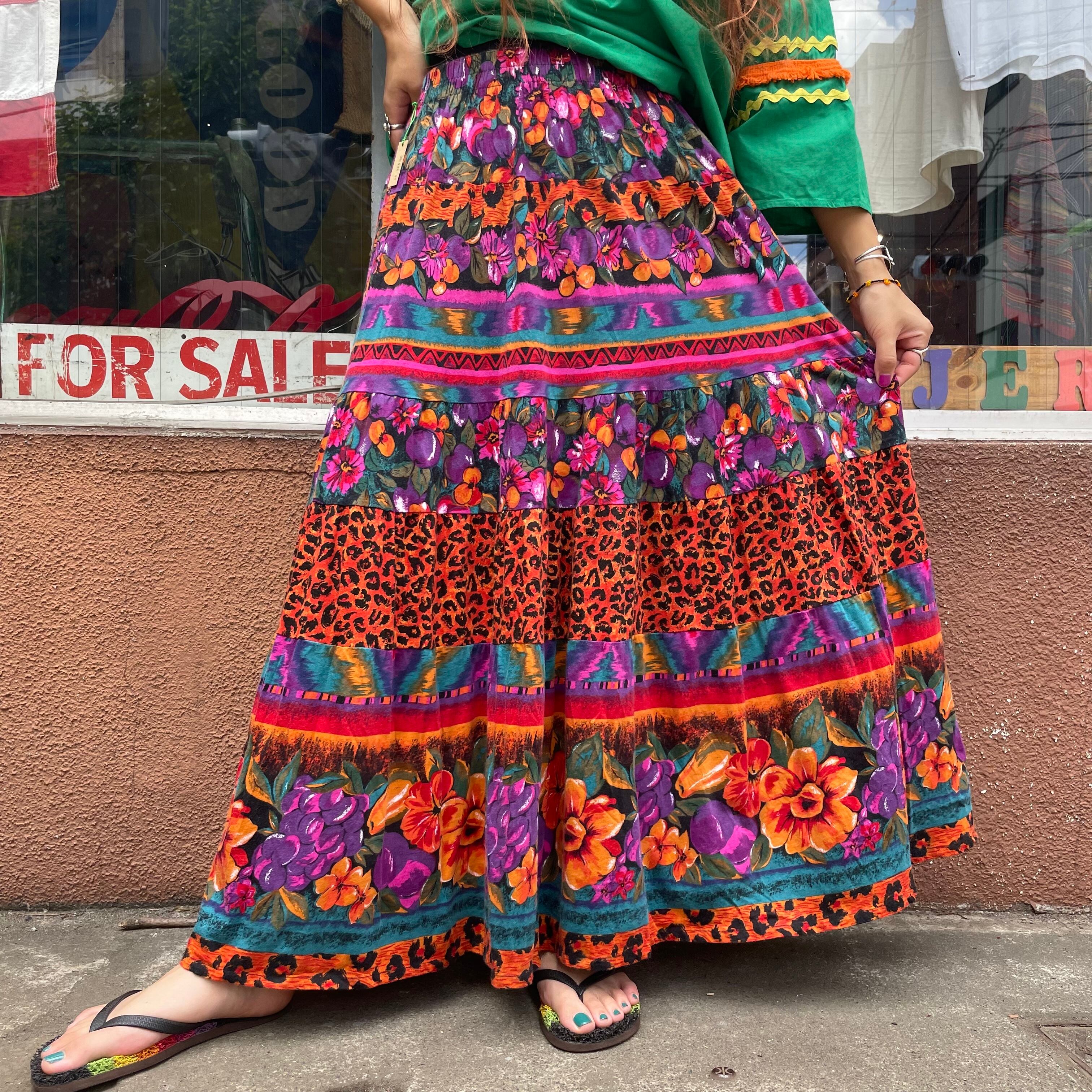 花柄とヒョウ柄のティアードスカートです。