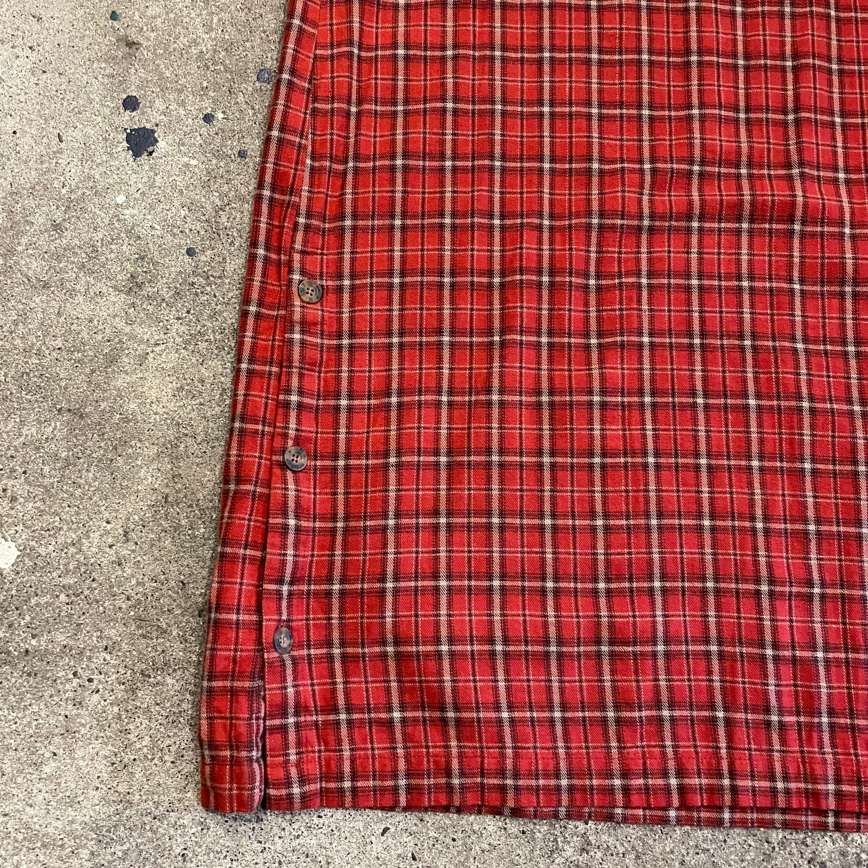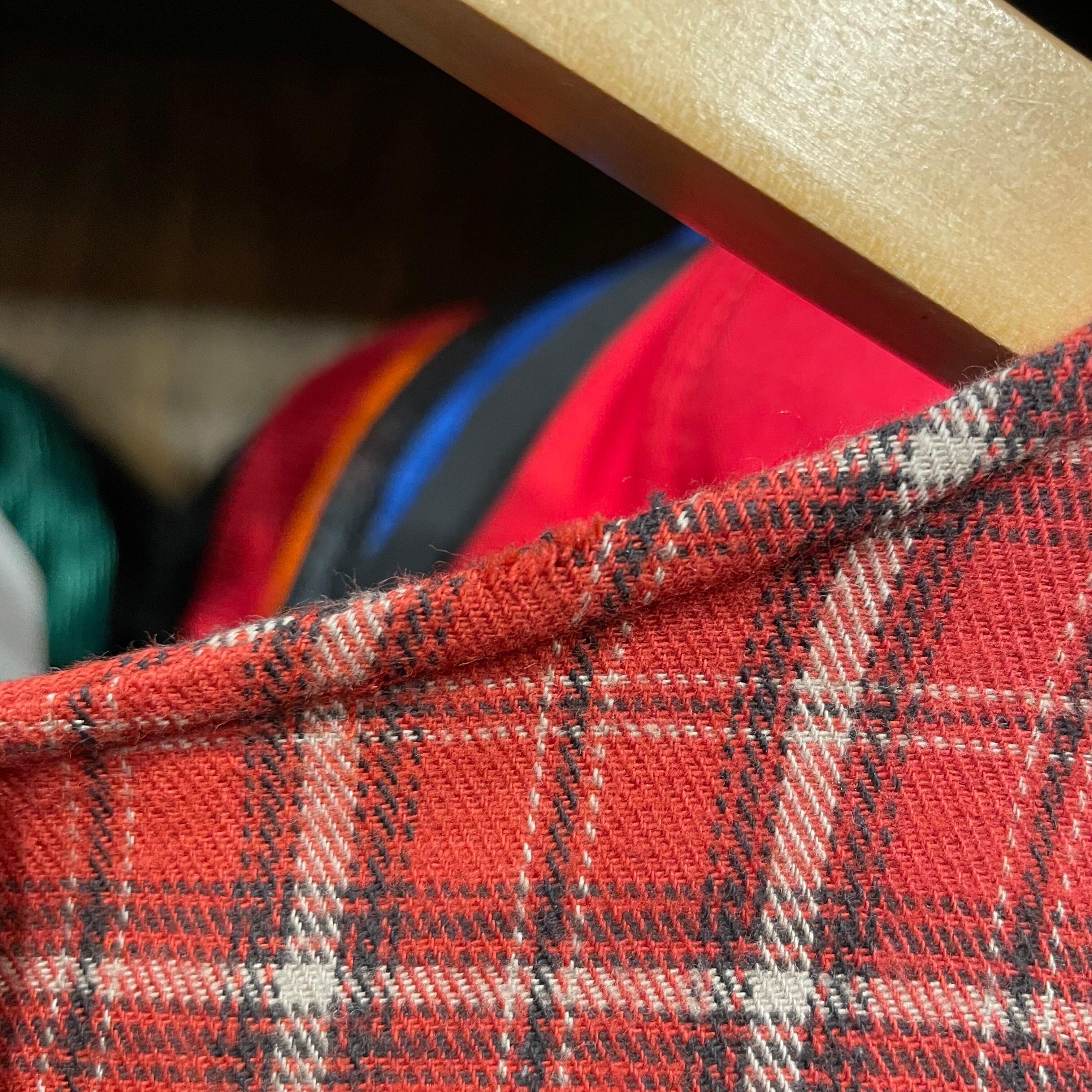 裾両サイドにボタン、左脇にはジップ、大きなパッチポケットも付いていてしっかりした作りです。ネルシャツのようなコットン素材で中に大きめのTシャツやスウェットを重ねて着ても一枚でもかわいい楽ちんな一枚です。
